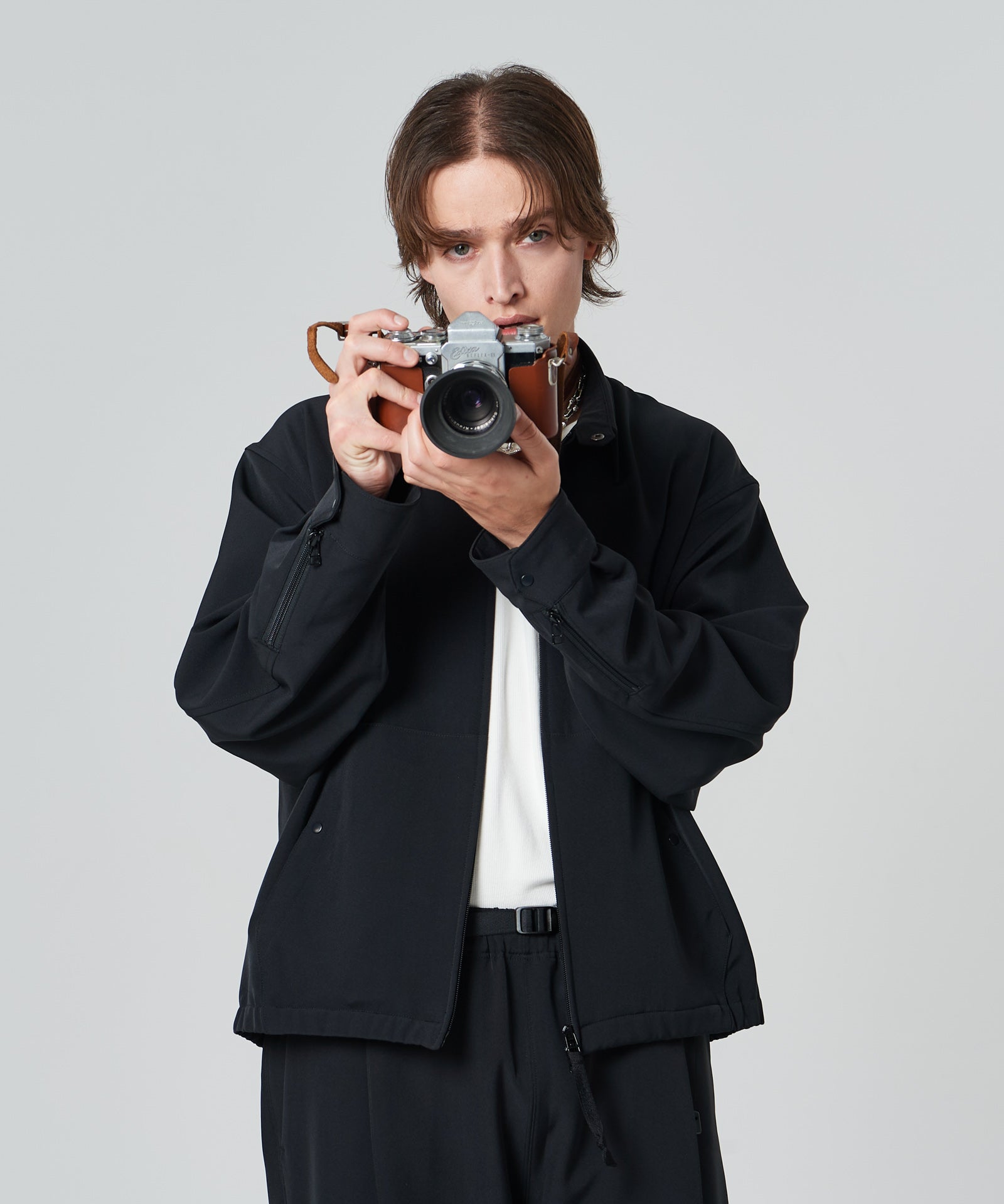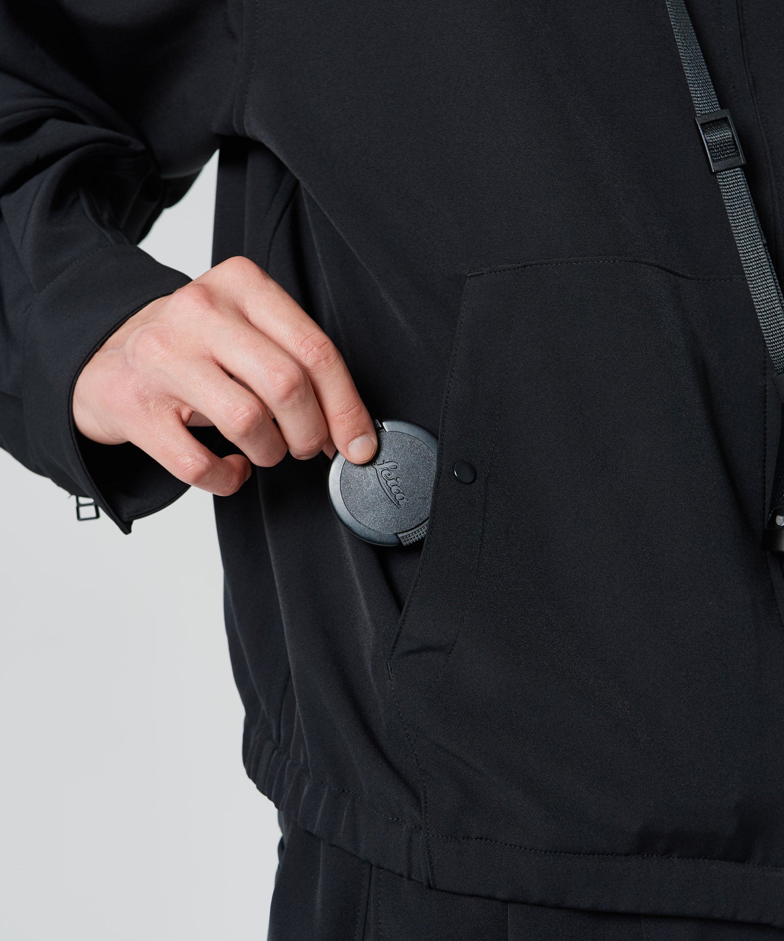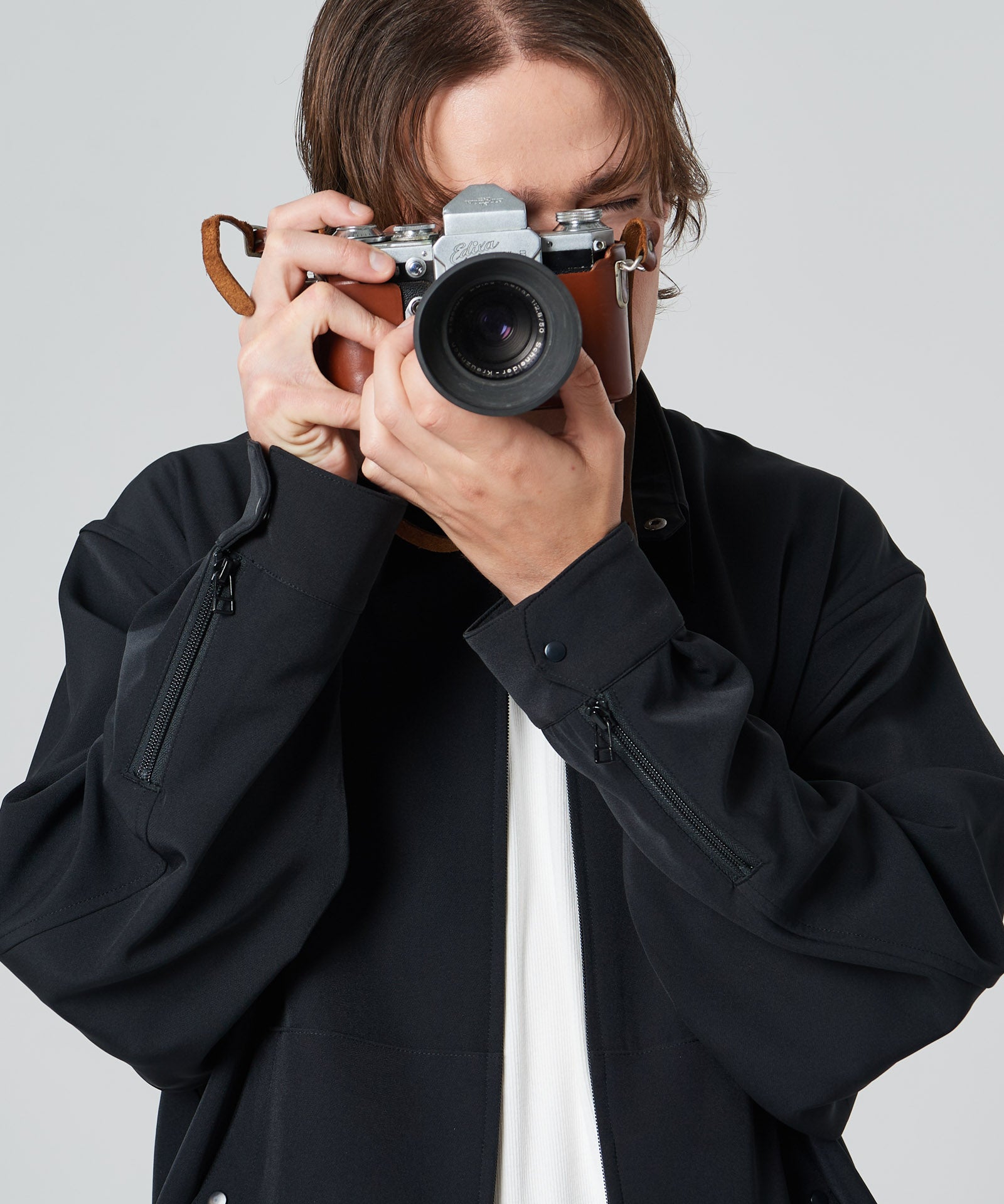 シャツライクな上品なディテールがスマートなフォトグラファースタイルを叶えるPhotographer's Noble Blouson。テキスタイルに用いたのは表情豊かなドレープ性と洗練されたマットな質感を備えたエステルコットン生地。ナローショートカラーと、スライダーに付属するナイロンテープを用いた引き手と相まってエレガントな印象を生み出しています。デザインに溶け込むよう配されたサイドポケットは撮影小物を安全に収納するジップポケットを内蔵。さらには右ポケットには77mm径まで収納できるレンズフィルターポケットを備えており、タウンユースなブルゾンながら撮影に必要なユーティリティを持たせました。