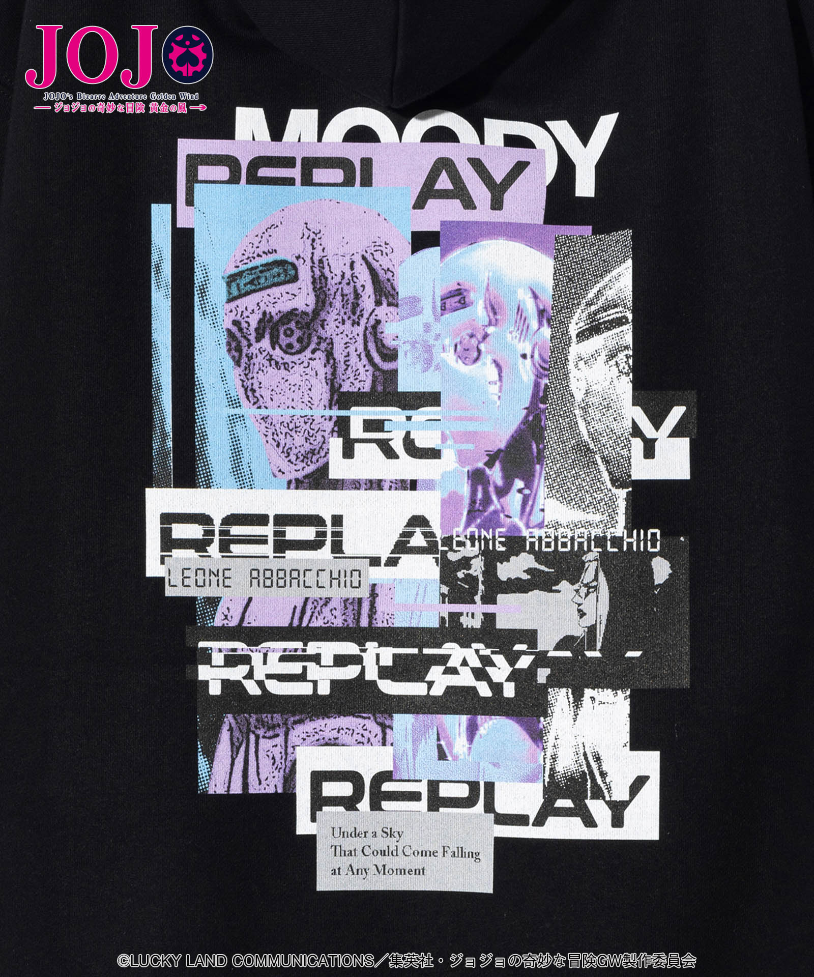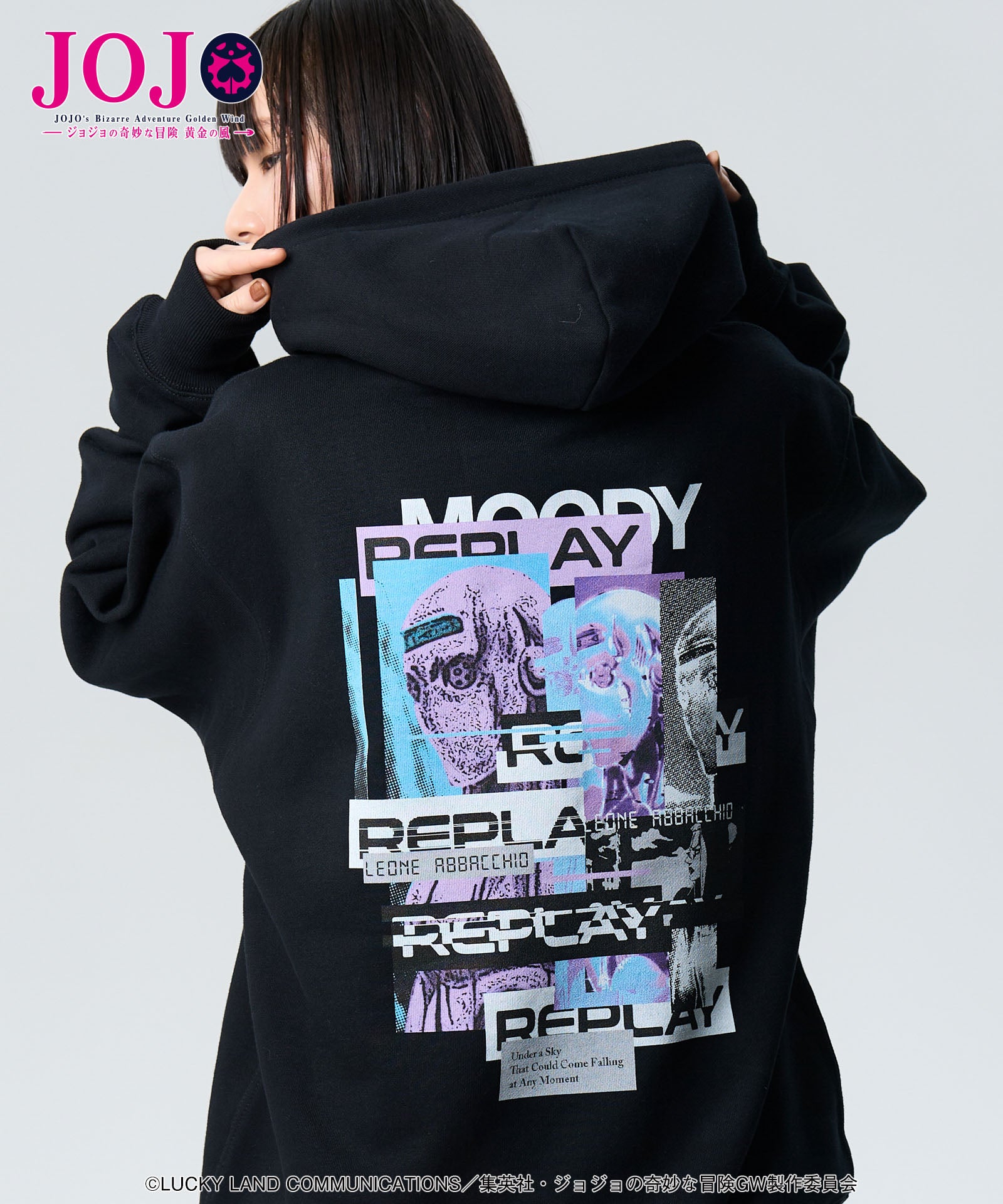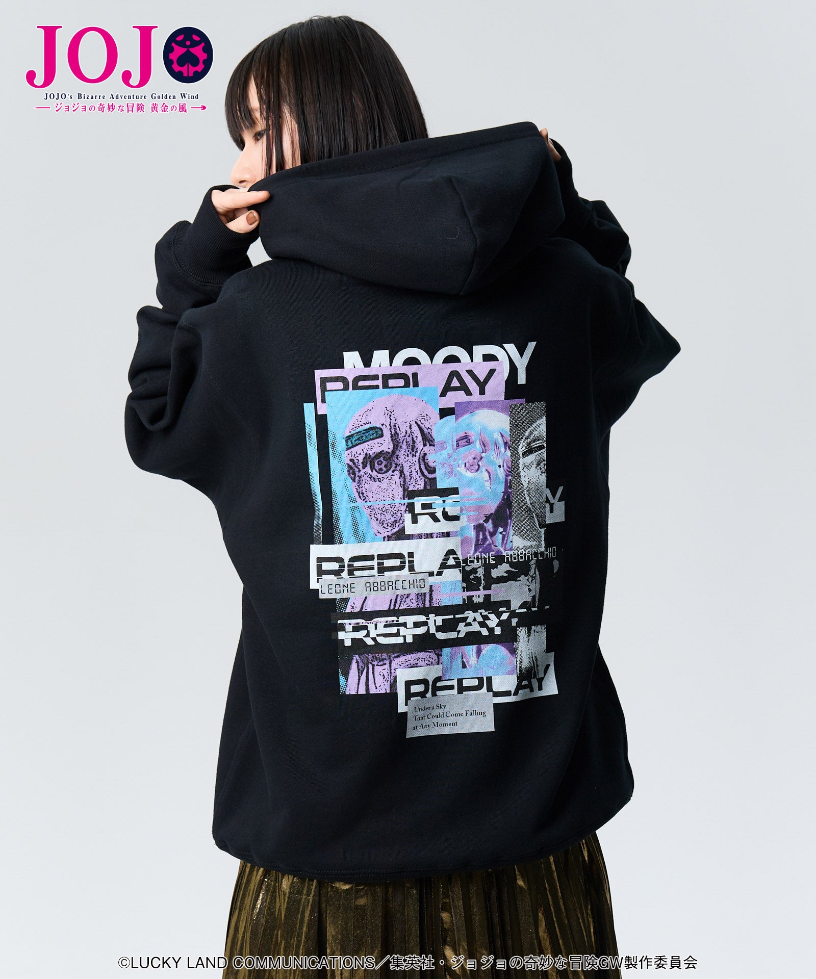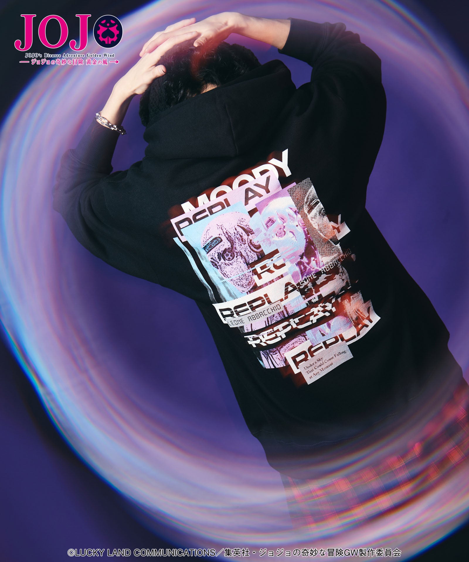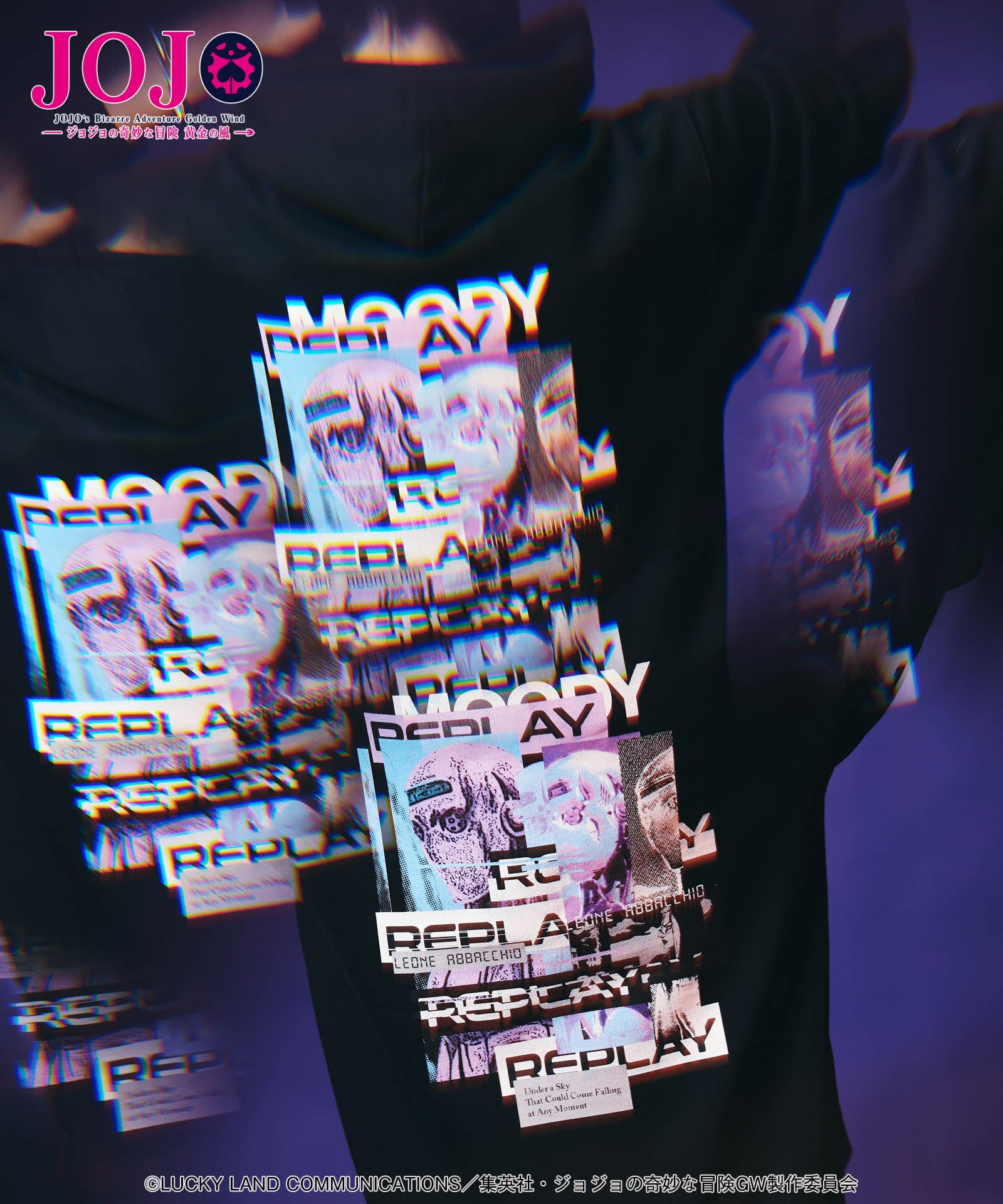 アニメ『ジョジョの奇妙な冒険 黄金の風』とglambがコラボレーション。レオーネ・アバッキオのスタンド「ムーディ・ブルース」のイメージをストリートトップスに構築したLeone Abbacchio’s Stand Hoodie。