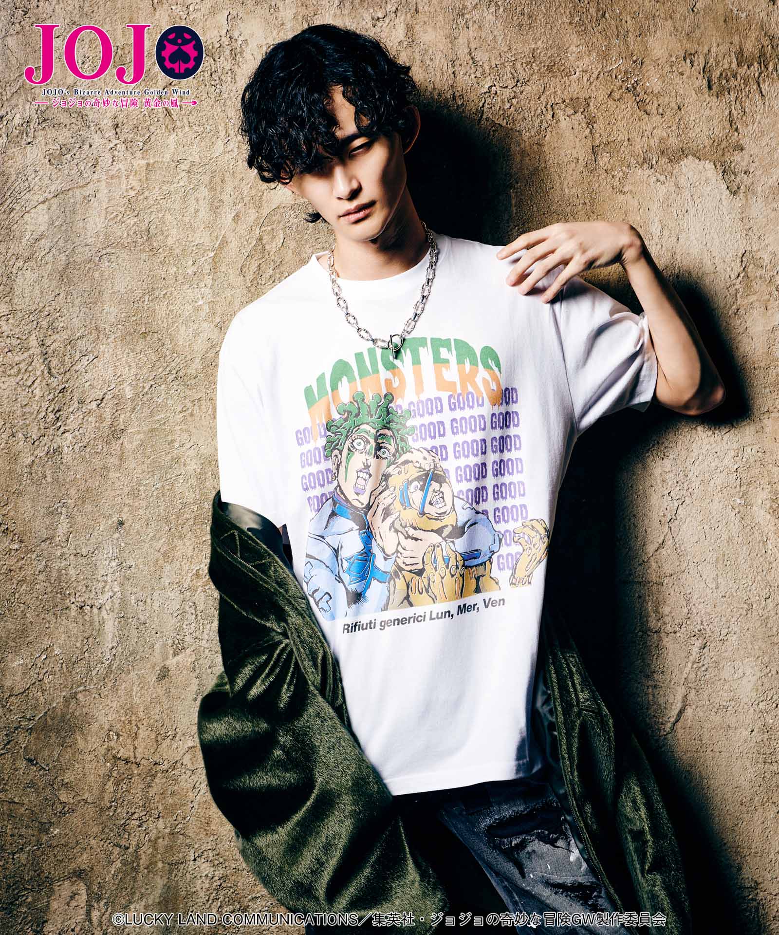 アニメ『ジョジョの奇妙な冒険 黄金の風』とglambがコラボレーション。宿敵ディアボロの切り札として登場したチョコラータとセッコの歪んだ絆を乗せたCioccolata & Secco T-shirt。