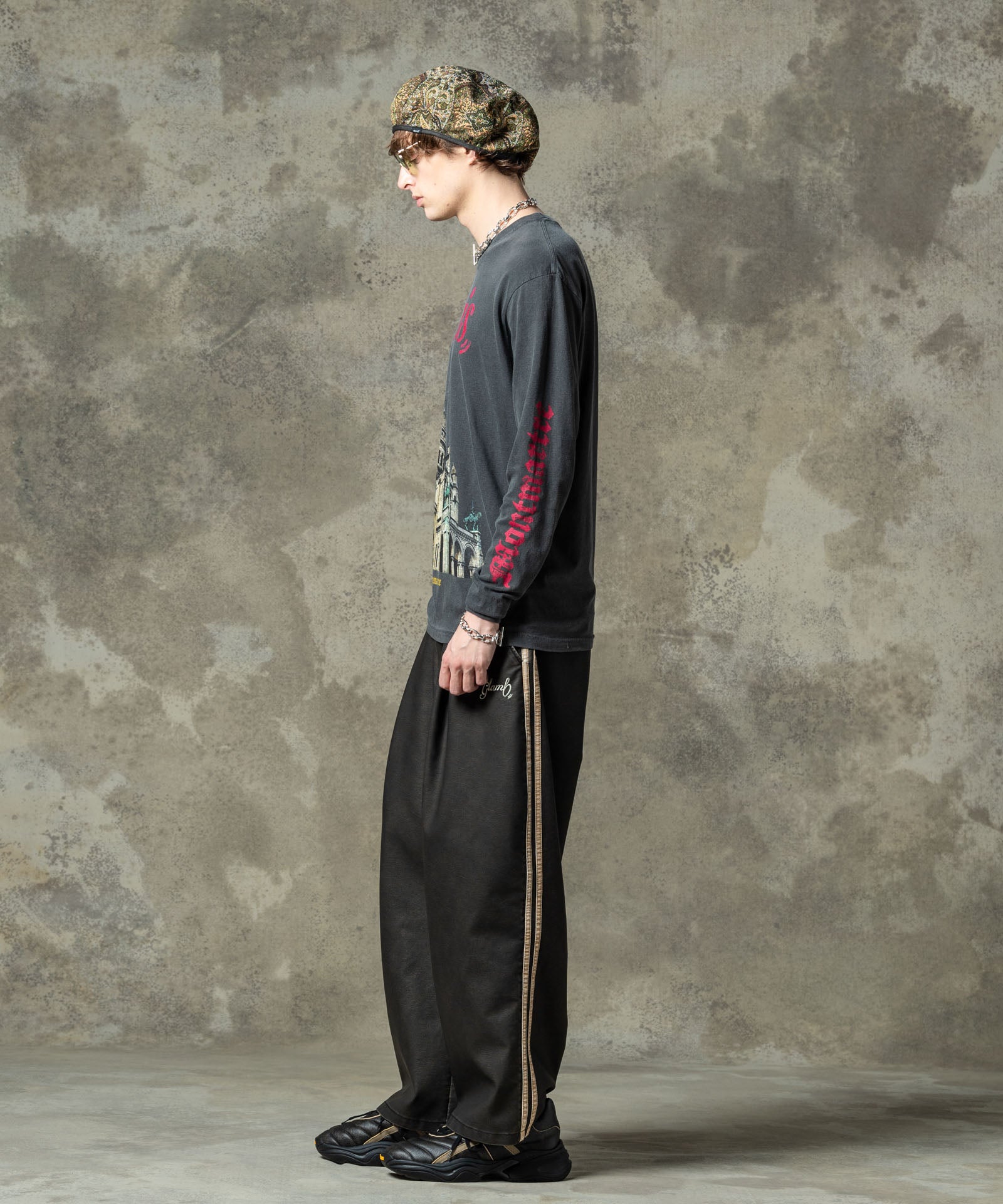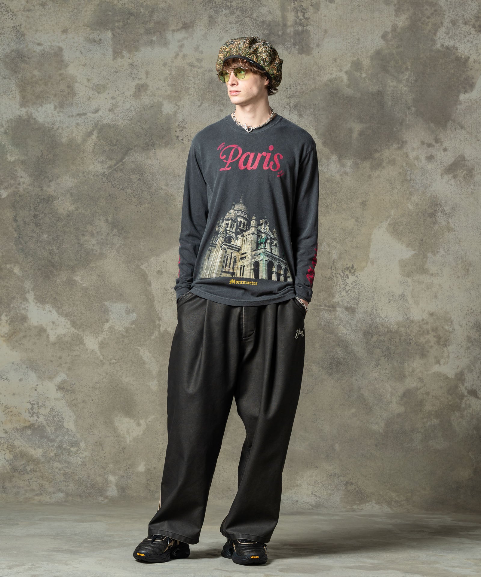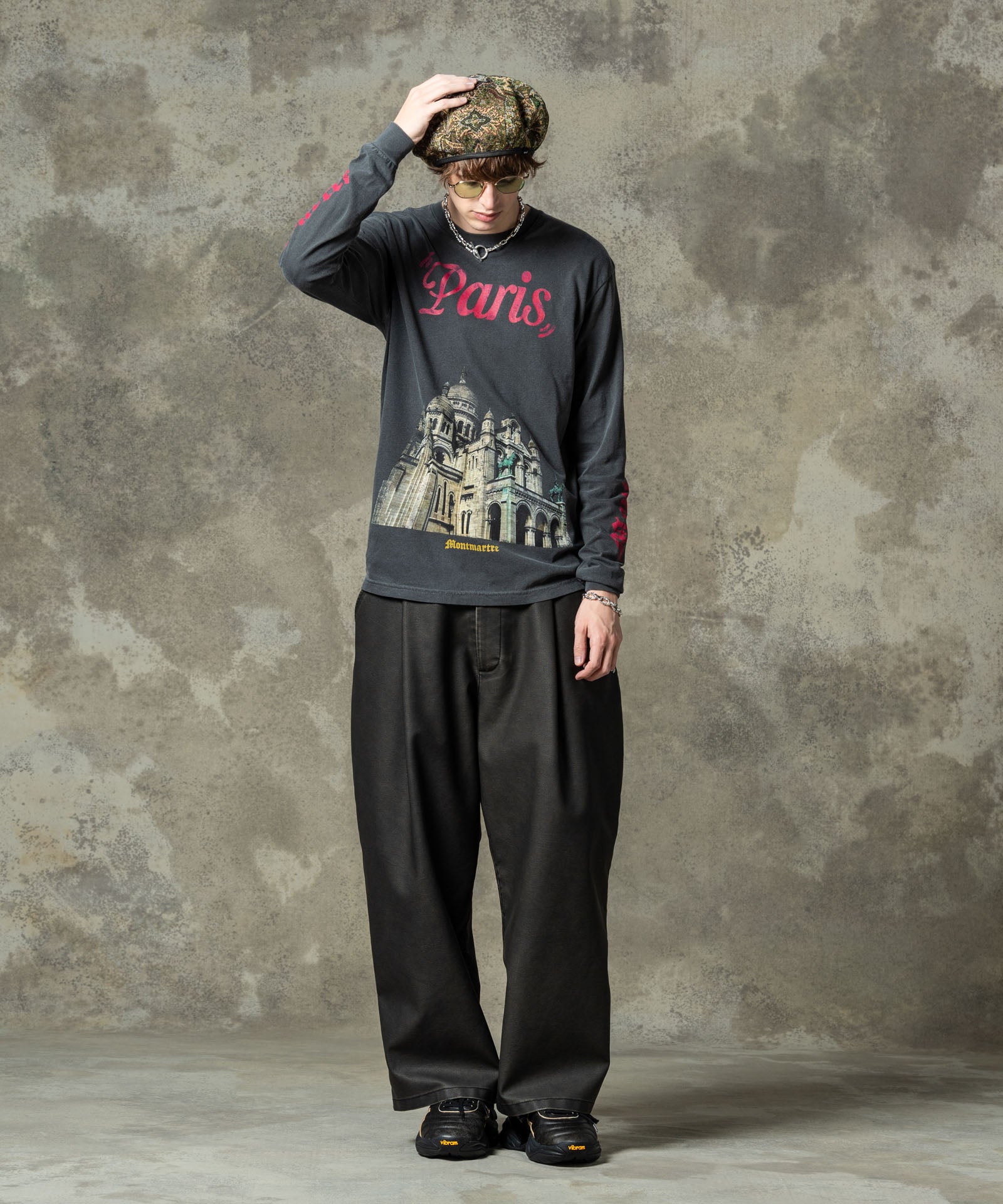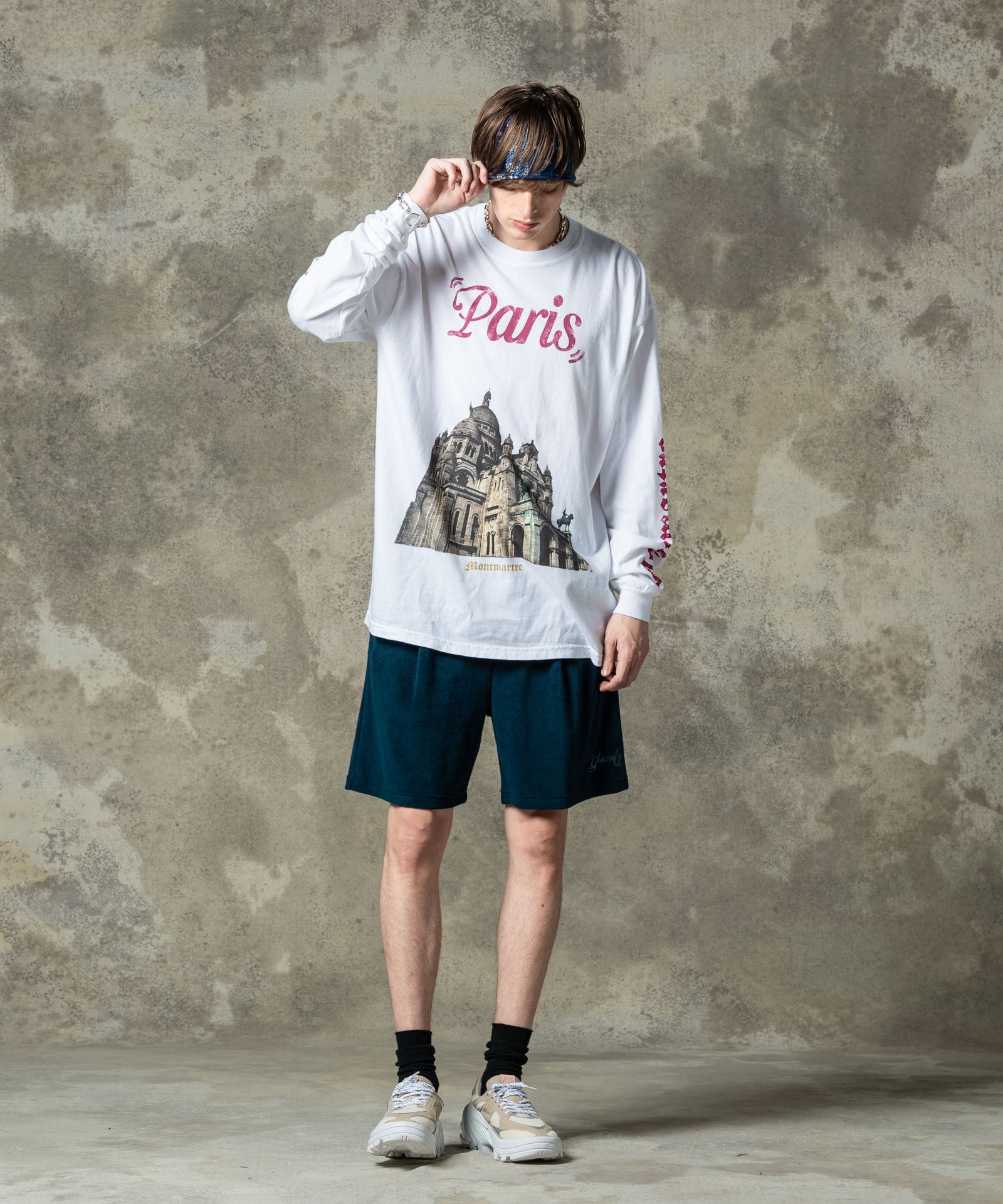 デザイナーがインスピレーションを求めて訪れたパリで撮影した写真を用いたフォトロンT、Montmartre Long Sleeves T-Shirt。フロントに大胆に配したのはパリの街を見下ろすロケーションにある荘厳な寺院。グラフィックと胸元のロゴ、左右アームのプリントにはかすれの表現を加えて、時の流れを感じさせるテクスチャを乗せました。ボディに用いたのは6.1オンスミディアムウェイトのコットン100%生地。着丈を長めに、身幅を広めに設けたルーズフィットが今らしい着こなしを叶えます。