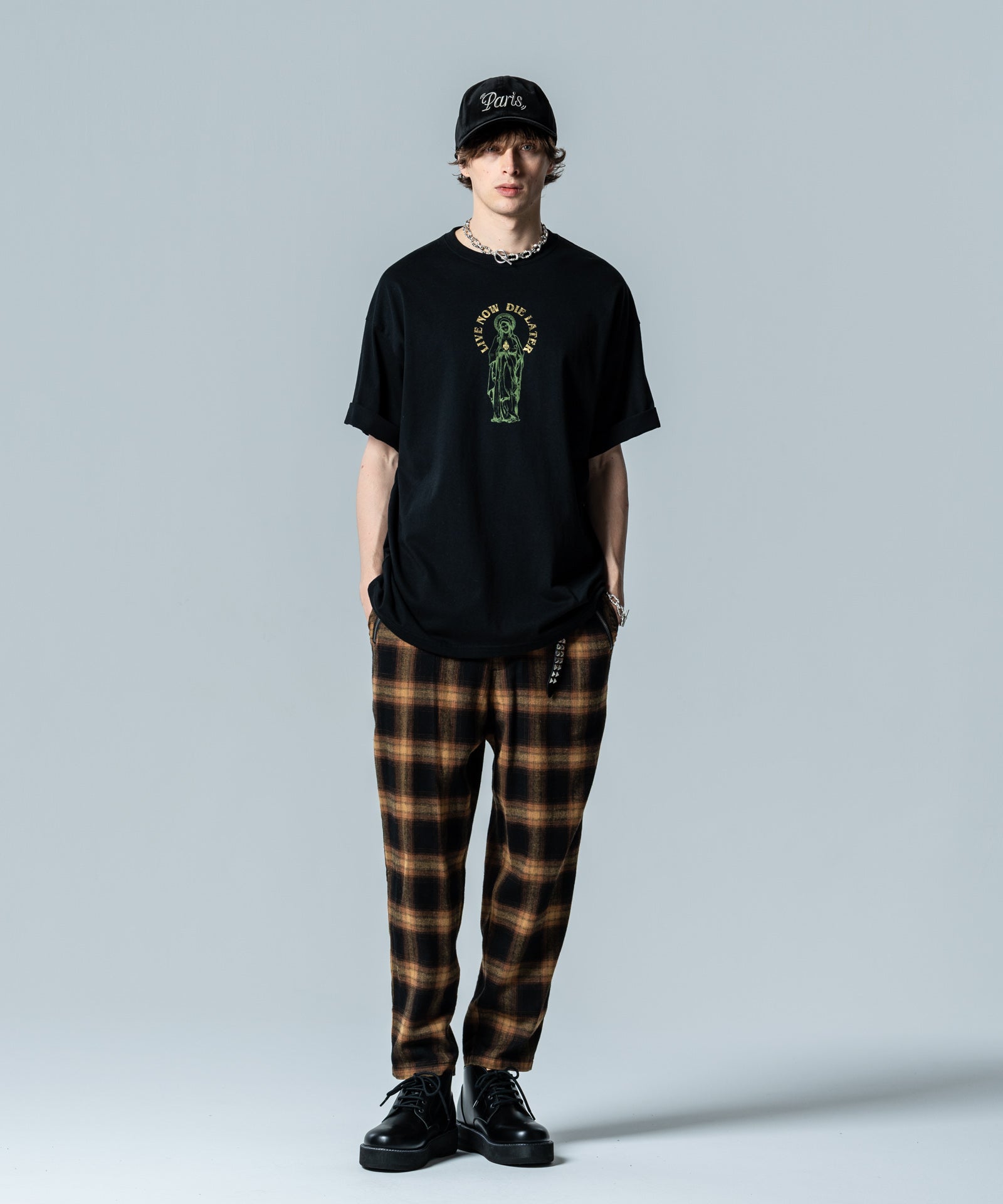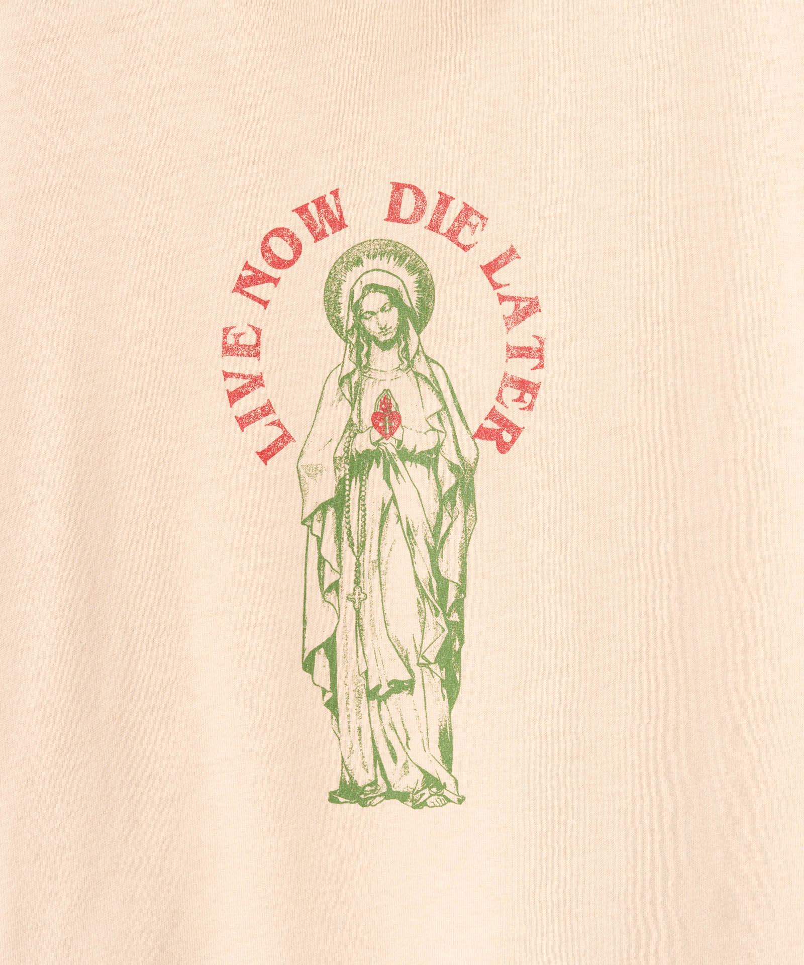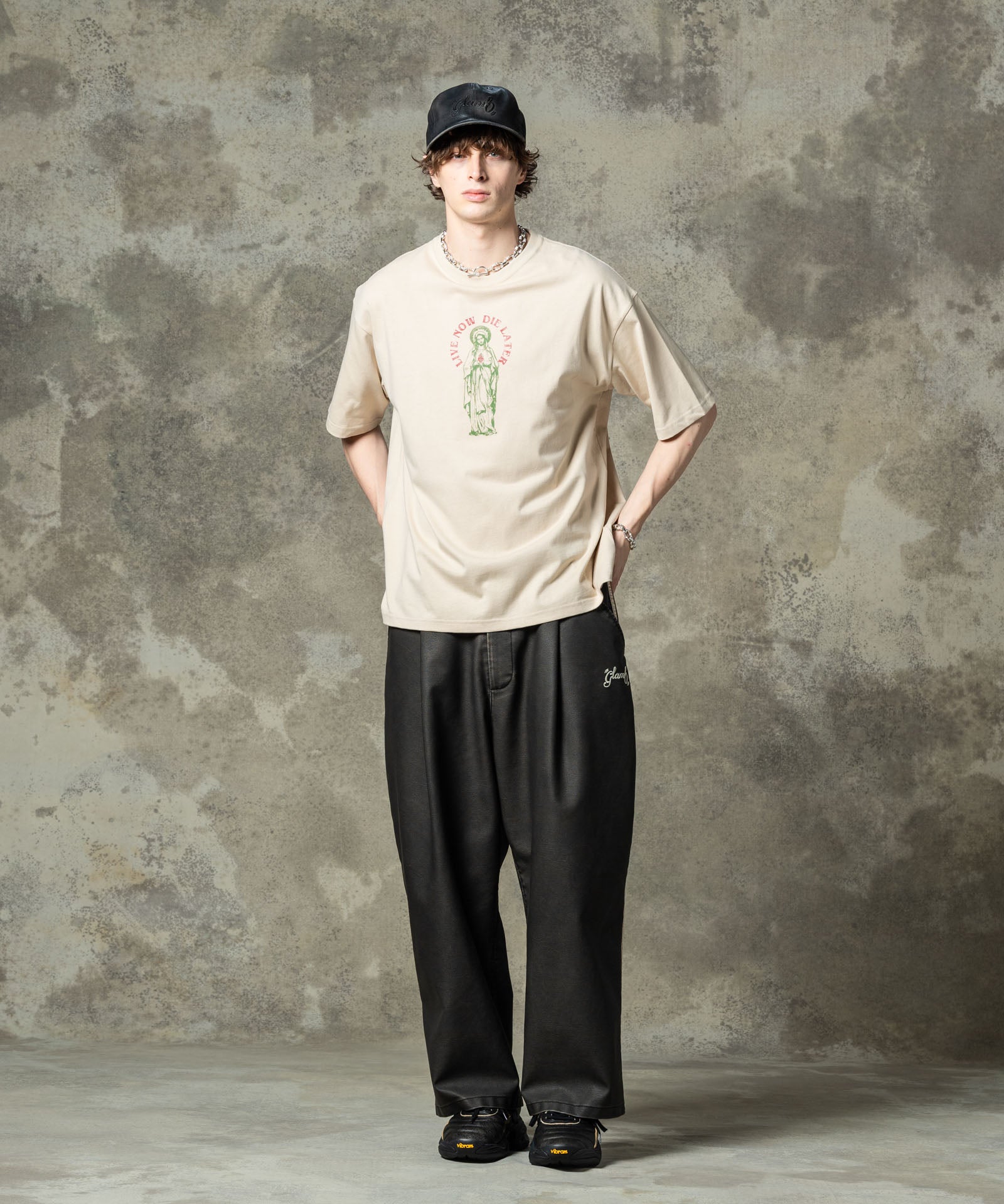 今季のデザインにあたってブランドのデザイナーが訪れたパリの礼拝堂を着想にしたMaria Coin T-Shirt。モチーフとなったのはパリの教会で配られるマリアコイン。そこに刻印されたモチーフを身頃の前後に散りばめた1枚です。フィッティングは現代的なスタイリングを叶えるビッグシルエット。コットン100%の5.6オンスミディアムウェイト天竺はシーズンを問わず長くご着用いただけます。