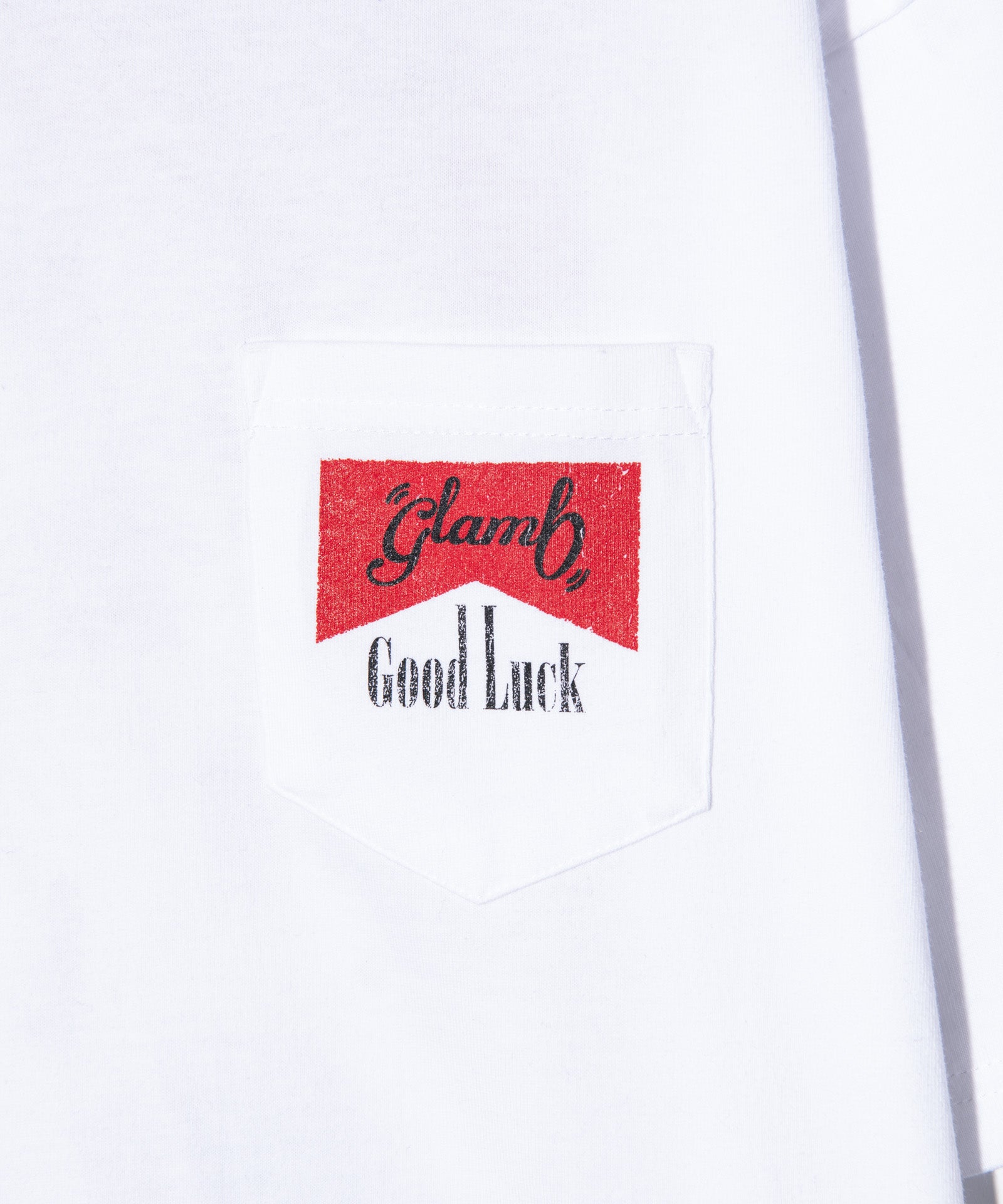 レトロカルチャーへのリスペクトを込めたGood Luck T-Shirtが春コレクションに続いて再登場。フロントポケットをシガレットボックスに見立てた意匠は前作を踏襲。バックスタイルでは通常のインクとゴールドインクを用いて様々なモチーフを重ね合わせ、ポップアートのようなビジュアルを作り出しています。テキスタイルは品のある光沢としなやかさを備えた5.6オンスセミコーマ天竺。身幅を広く着丈を長く設けたビッグシルエットはストリートスタイルに絶好です。