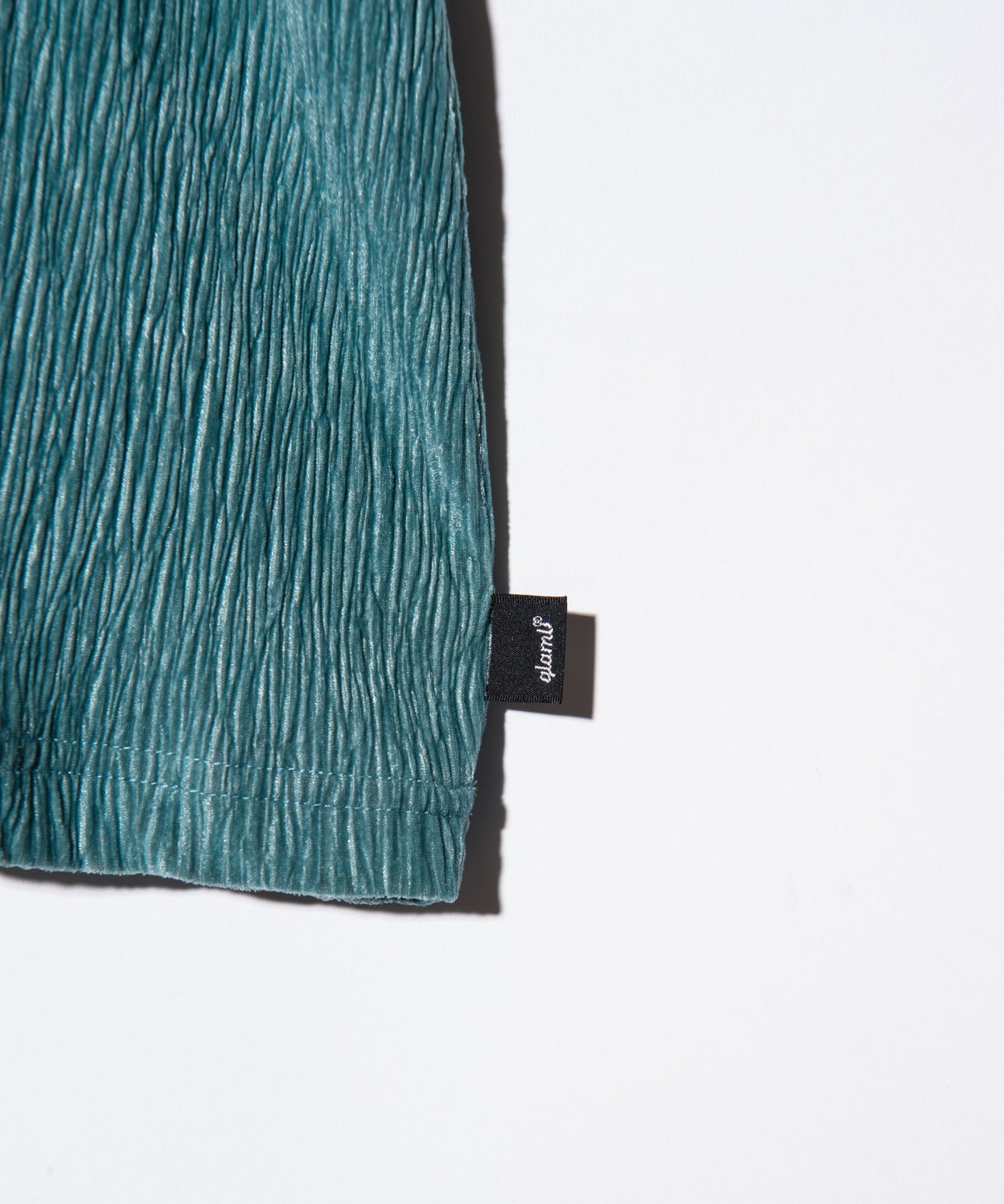 リュクスなテキスタイル使いが優雅なサマールックを提案するGlamour Crepe T-Shirt。エレガントな縦畝を見せるテキスタイルは、柔らかな風合いと生地の凹凸が生み出す艶やかな陰影が特徴。畝の一つ一つを摘まみ上げては熱を加え、生地の縮みで凸を固定させるという丹念な製法で仕上げられた生地となっています。ボディはオーバーサイズの身幅にドロップショルダーを組み合わせたルーズなフィッティング。今季はセットアップ着用可能なGlamour Crepe Pants、Glamour Crepe Cropped Pantsも展開。ブランドが特におすすめするGlamour Crepe Pantsとは、合わせて購入することでディスカウントとなるセットアップ展開もご用意しています。