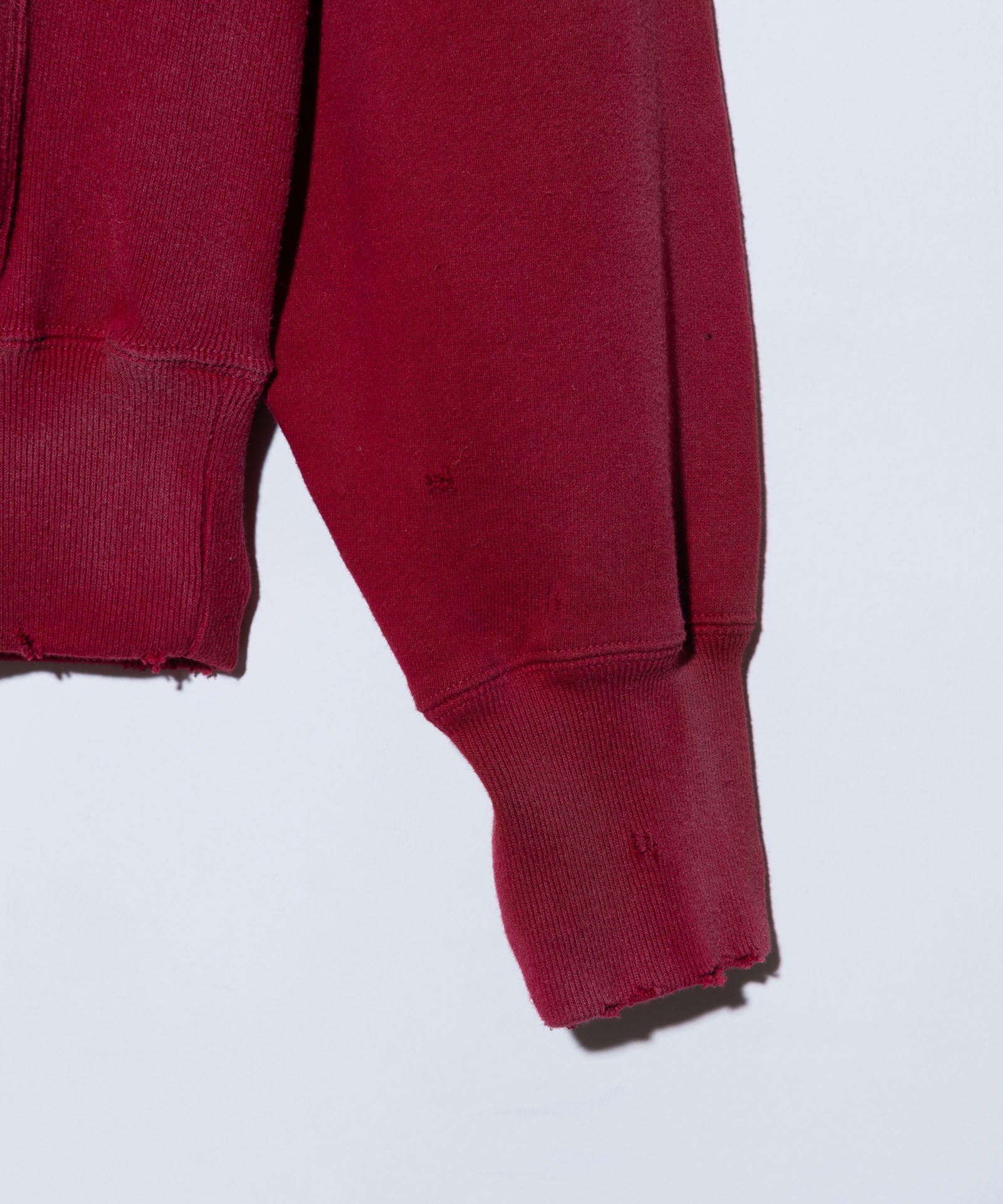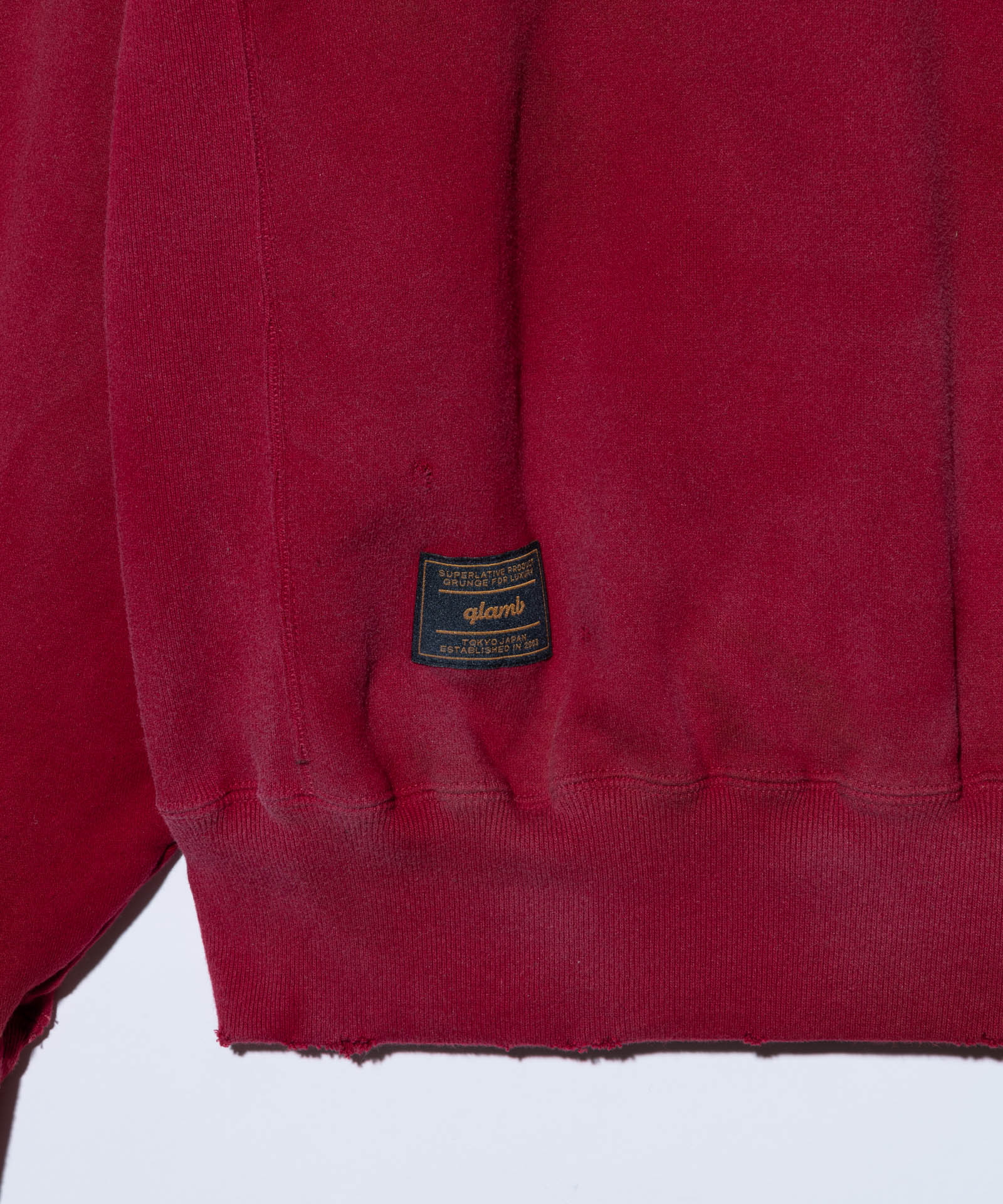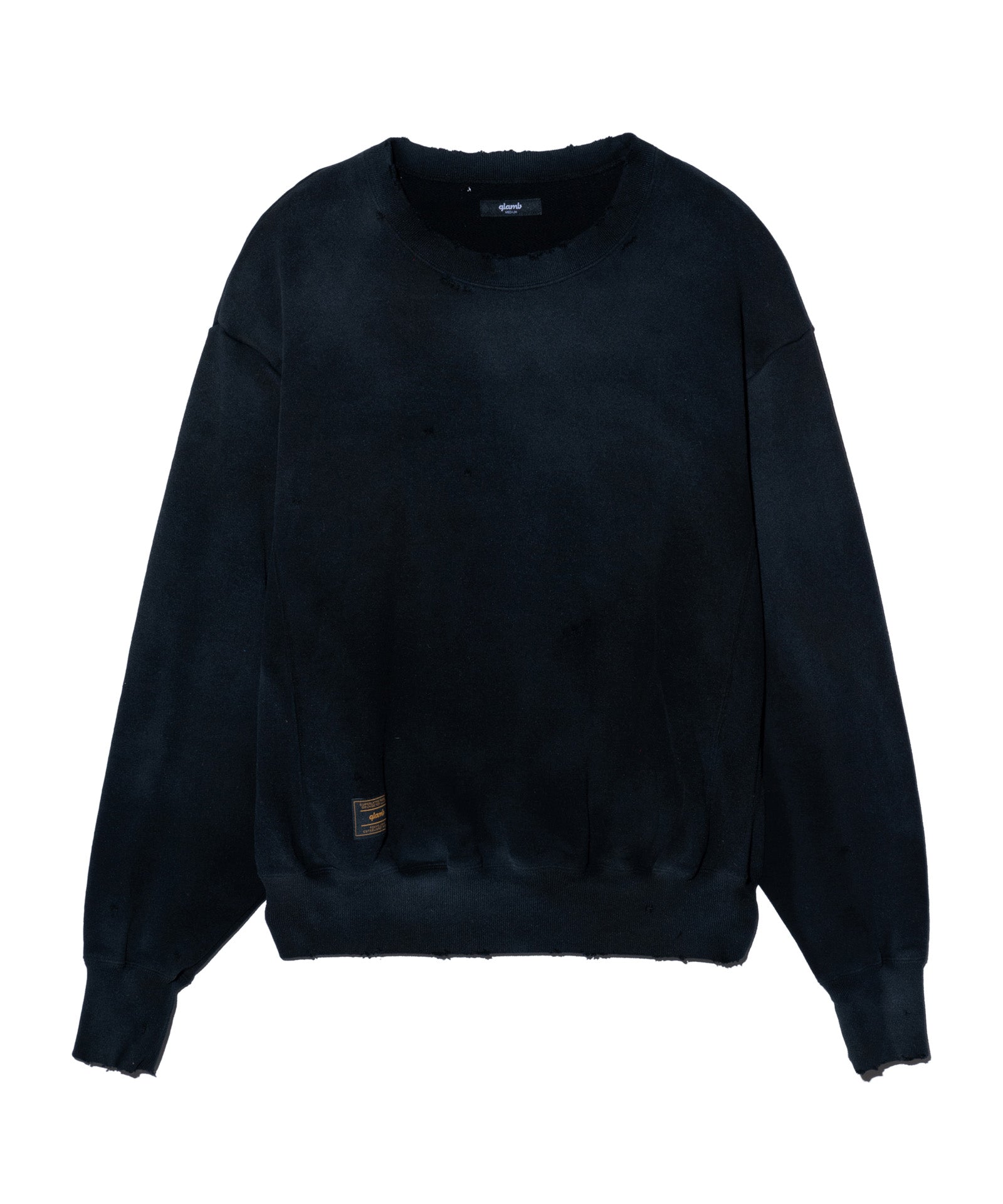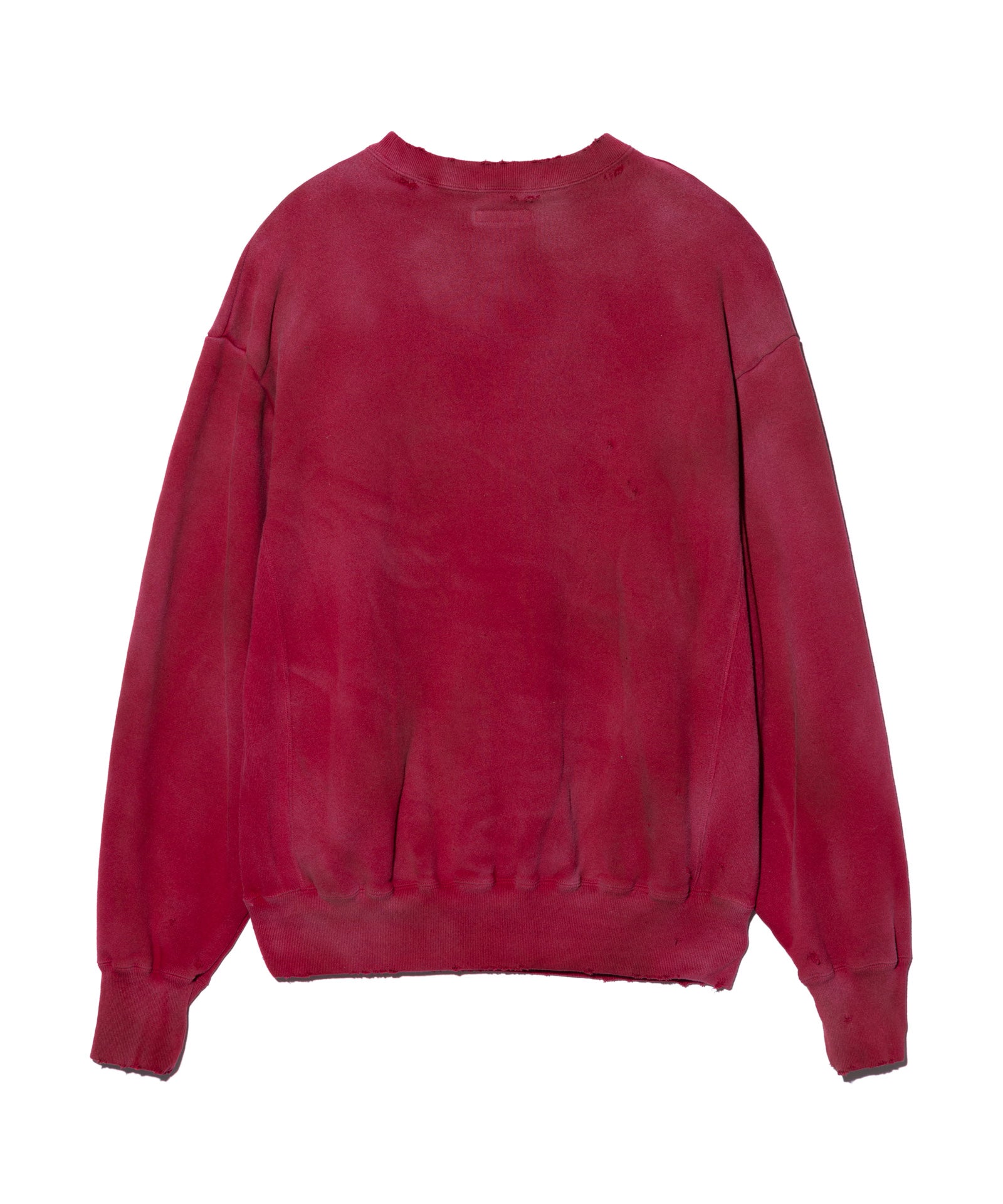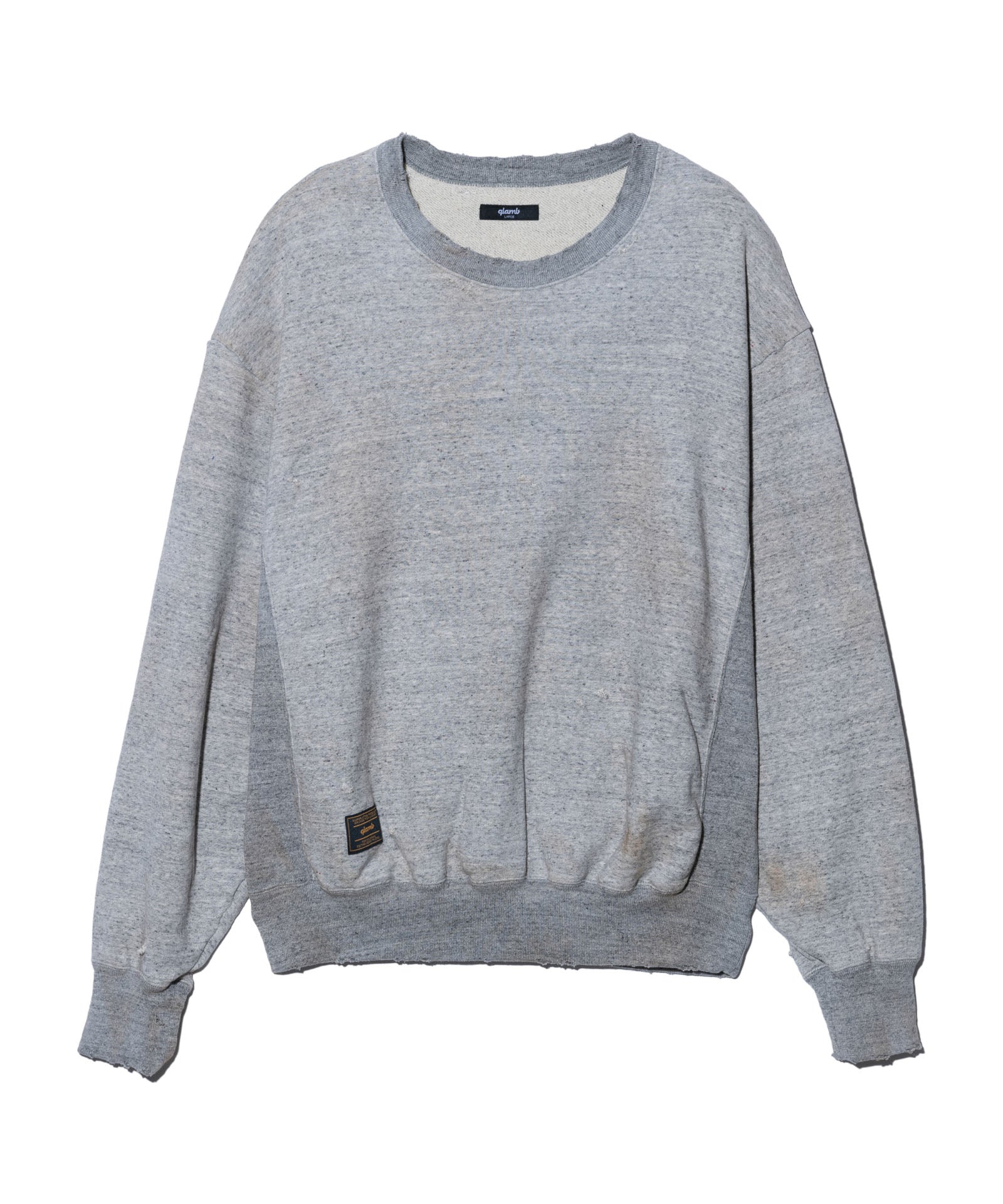ヴィンテージウェアへの憧憬を加工で表現、タフなスウェットスタイルを作り上げるAcid Sweat。裾を絞り上げた緩急あるシルエットのボディはテキスタイルにコットン100%の30/7裏毛を用いて国内のファクトリーで縫製。フライスを用いたサイドの切り替えは往年の仕様をリスペクトしたものとなっています。グラインダーでダメージを、スプレーで白茶けたテクスチャや汚しを乗せて古き良き時代のムードをいっそう演出。全ての工程に日本の職人が誇る熟練のクラフトマンシップが息づく、重厚な存在感の1枚となっています。