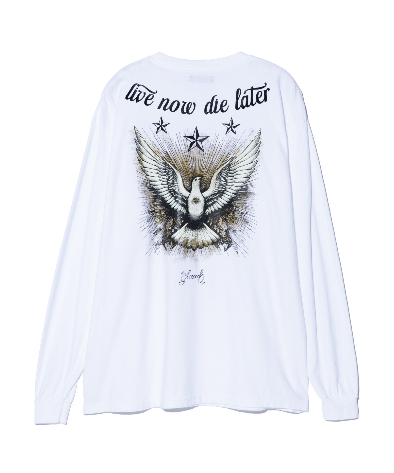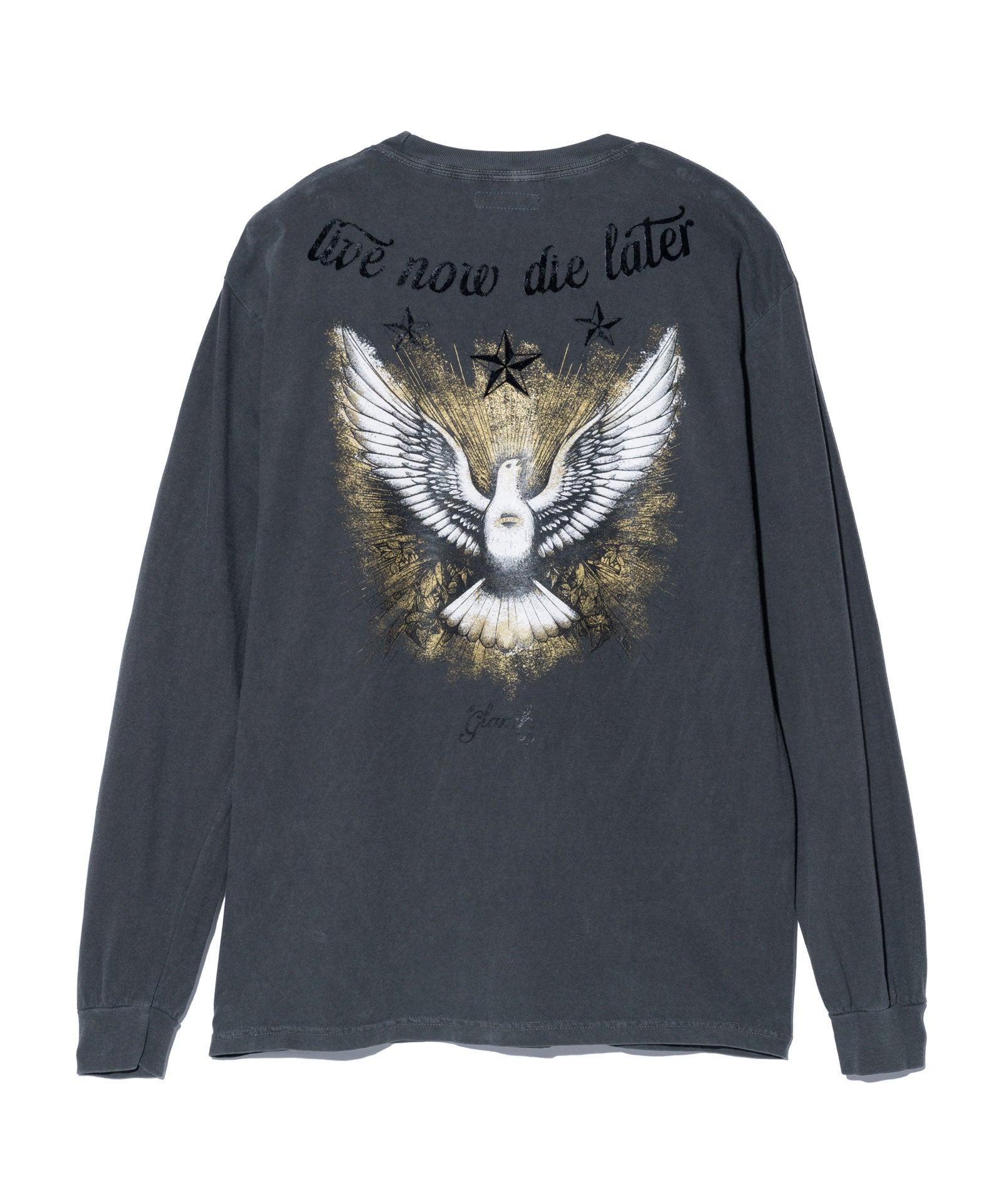 タフなモーターサイクルの構図にブランドからのメッセージを忍ばせたDove Cutsew。バックスタイルに大胆に配されたのは定番の鷲ではなく鳩。金泥プリントを用いて重厚でリュクスなテクスチャに仕上げました。コットン100%のボディは着丈をやや長めに設けたレギュラーフィット。クリーンな印象のWhite、ピグメント染めによるヴィンテージライクなカラーに仕上げたBlackとカラバリごとに異なる魅力を持たせています。