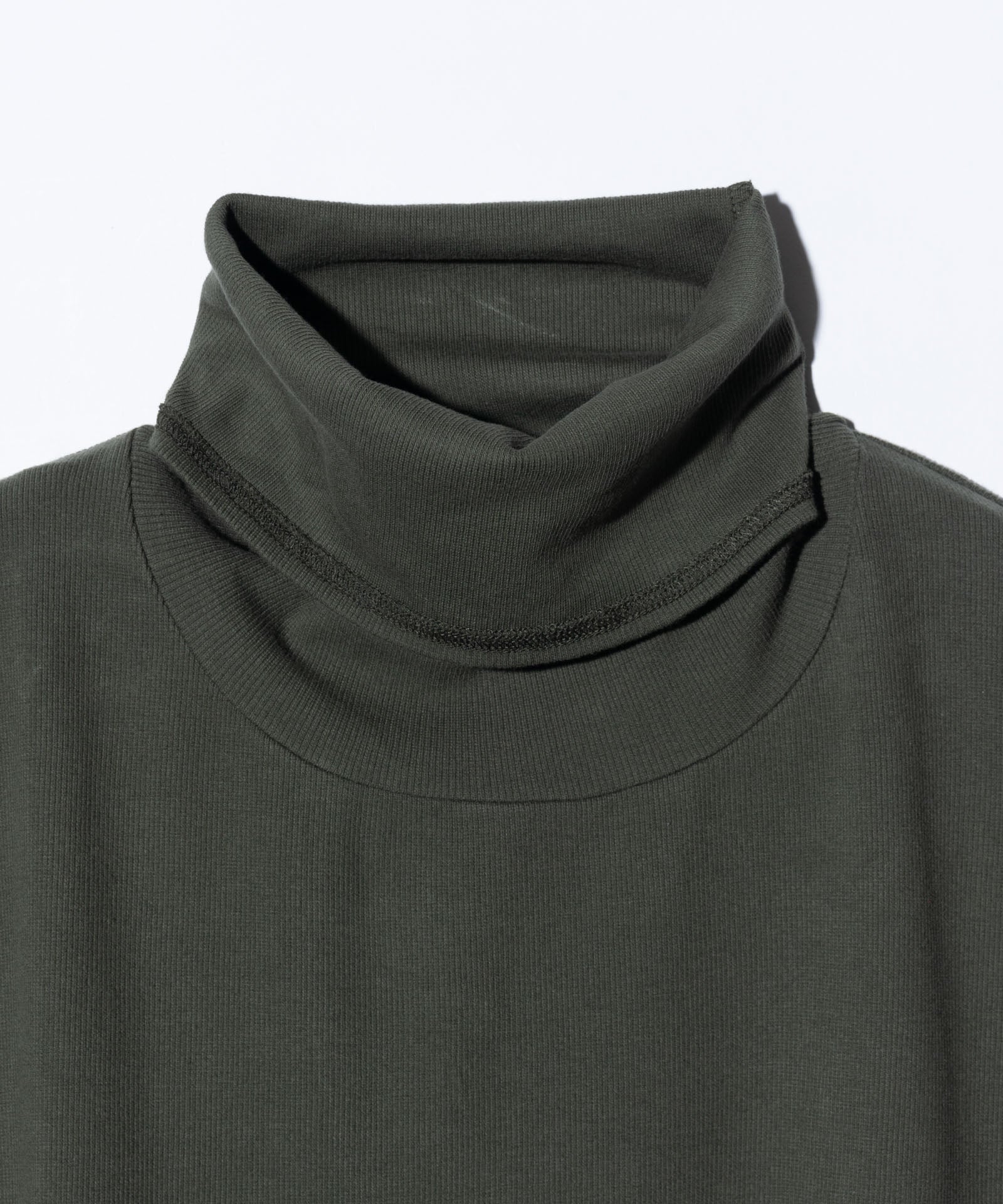 タートルネックとタンクトップを融合、秋冬に構築的なレイヤードスタイルを演出するTurtle Neck Tank Top。アームホールを広めに設けたスリーブレスのパターンはスウェットやシャツのインナー使いをする際にかさばらないよう配慮したもの。ハイネックのパーツはそのままたるませて知的なアクセントとしたり、伸ばして顔をカバーしたりと自在にアレンジしていただけます。ラウンドヘムのボディはストレッチ素材をテレコ編みして優れた伸縮性とフィット感を持たせたハイゲージの仕立て。国内生産の贅沢な生地が身体の保温とストレスフリーな着用感を両立しました。
