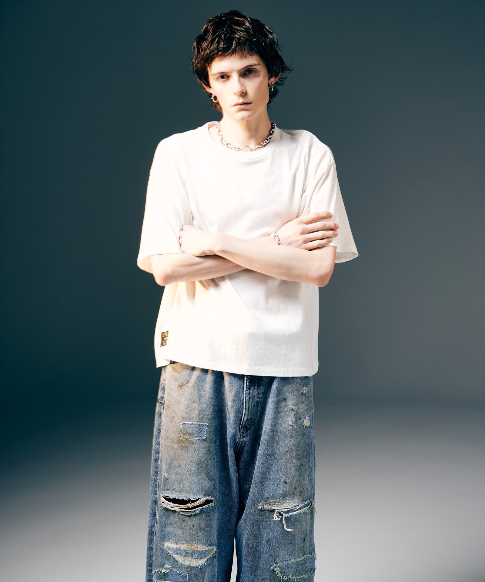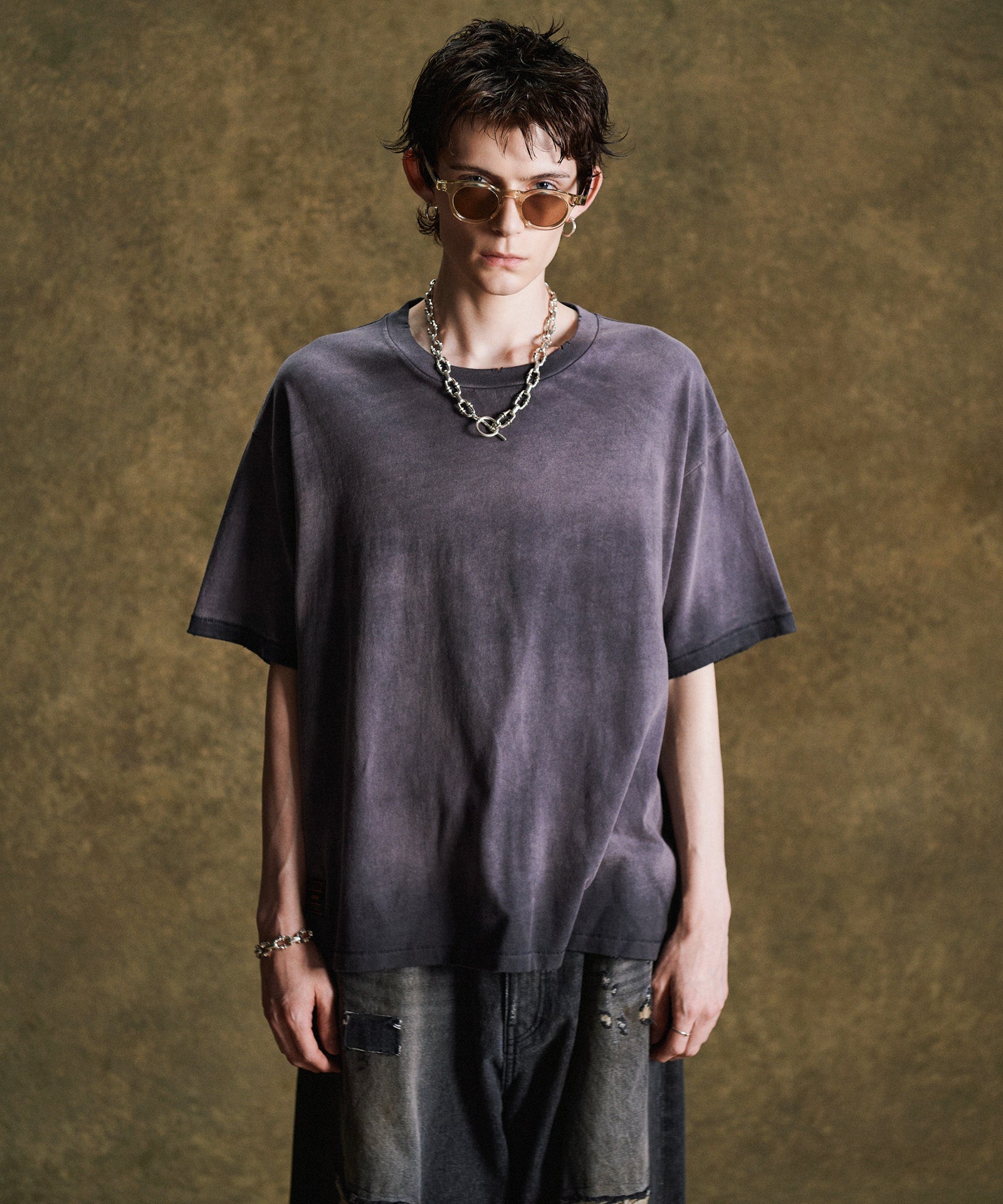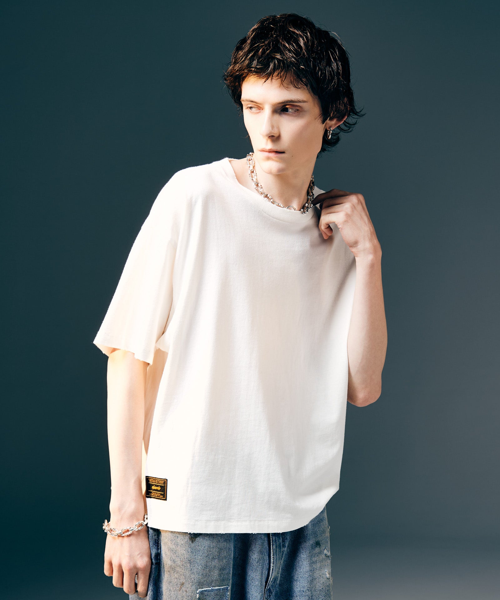 工程を惜しまないクラフトマンシップによりプレーンTシャツにグランジのムードを与えたのがVintage Fade T-Shirt。経年変化のテクスチャは特殊なウォッシュ加工によって表現したもの。仕上げに1点1点、手作業によるダメージを施すことでエイジングのテクスチャをさらに生み出しています。袖口と裾は90年代以前のTシャツに見られるシングルステッチ仕上げ。テキスタイルにはタフでドライな質感を持ったコットン生地を使用。ヴィンテージ的なディテールを数多く取り入れながら着丈はコンパクトにまとめて今季ならではのシルエット提案を込めました。