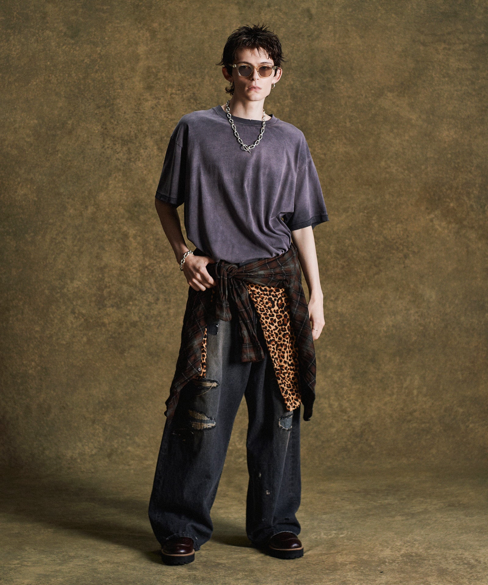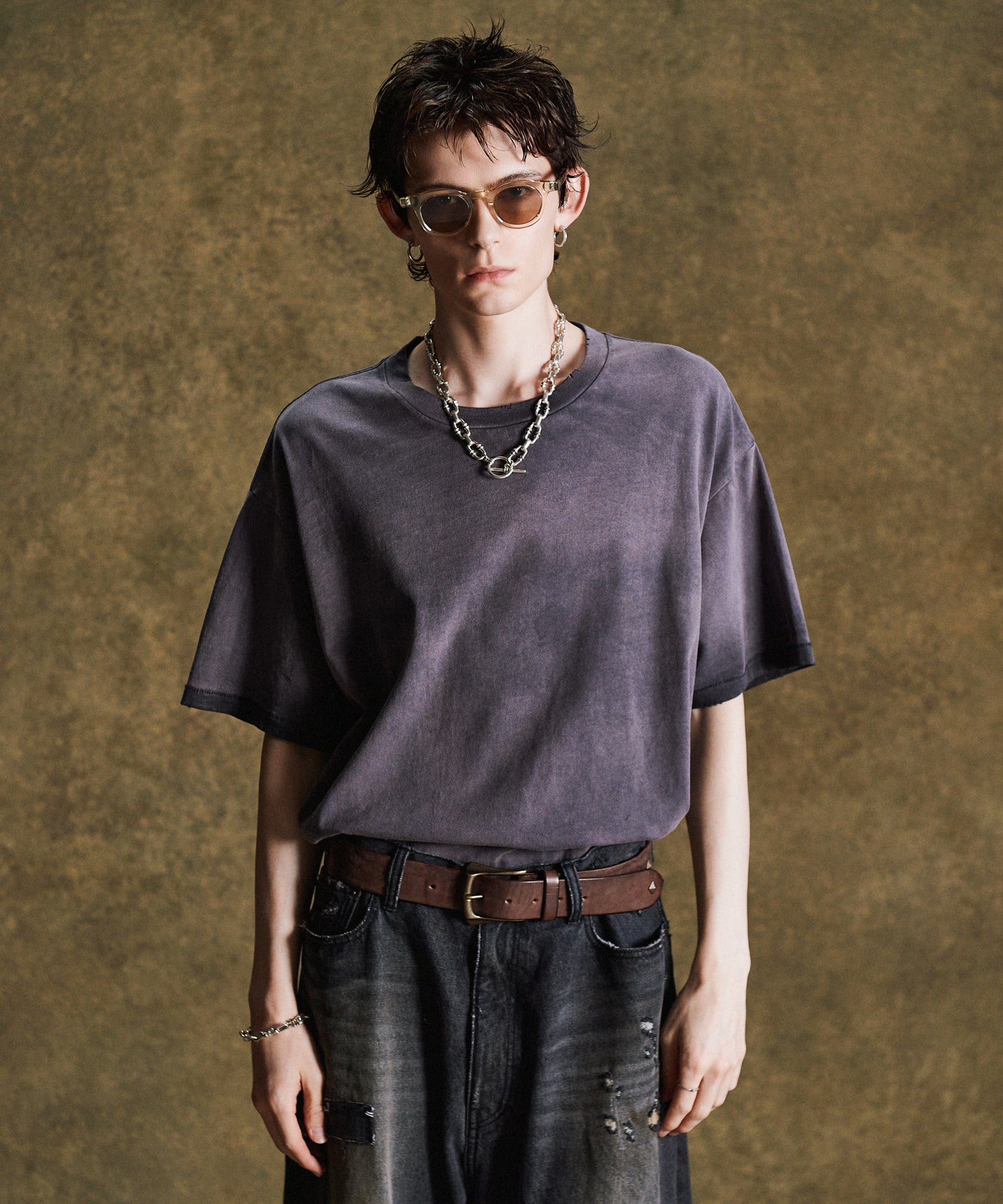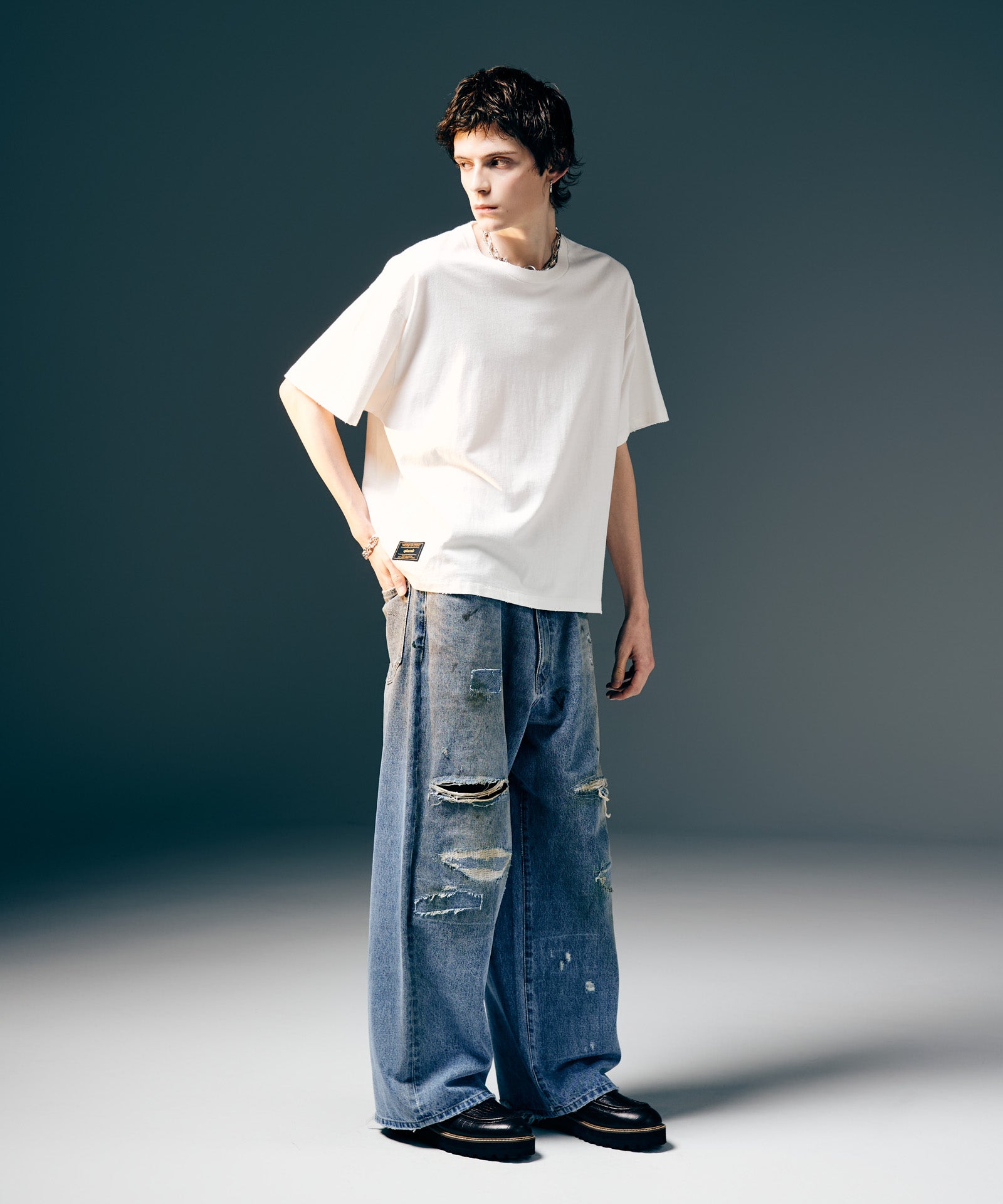 工程を惜しまないクラフトマンシップによりプレーンTシャツにグランジのムードを与えたのがVintage Fade T-Shirt。経年変化のテクスチャは特殊なウォッシュ加工によって表現したもの。仕上げに1点1点、手作業によるダメージを施すことでエイジングのテクスチャをさらに生み出しています。袖口と裾は90年代以前のTシャツに見られるシングルステッチ仕上げ。テキスタイルにはタフでドライな質感を持ったコットン生地を使用。ヴィンテージ的なディテールを数多く取り入れながら着丈はコンパクトにまとめて今季ならではのシルエット提案を込めました。