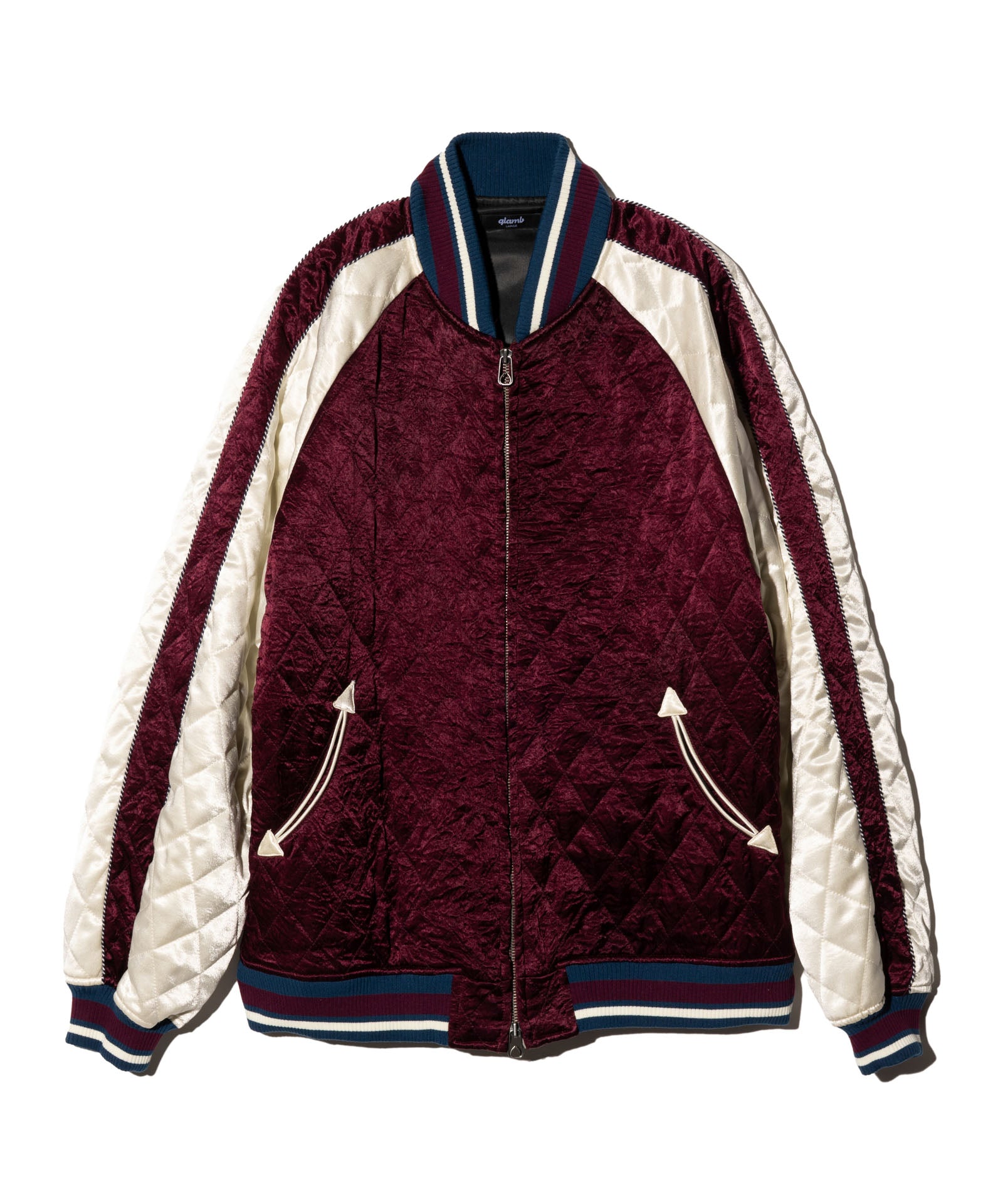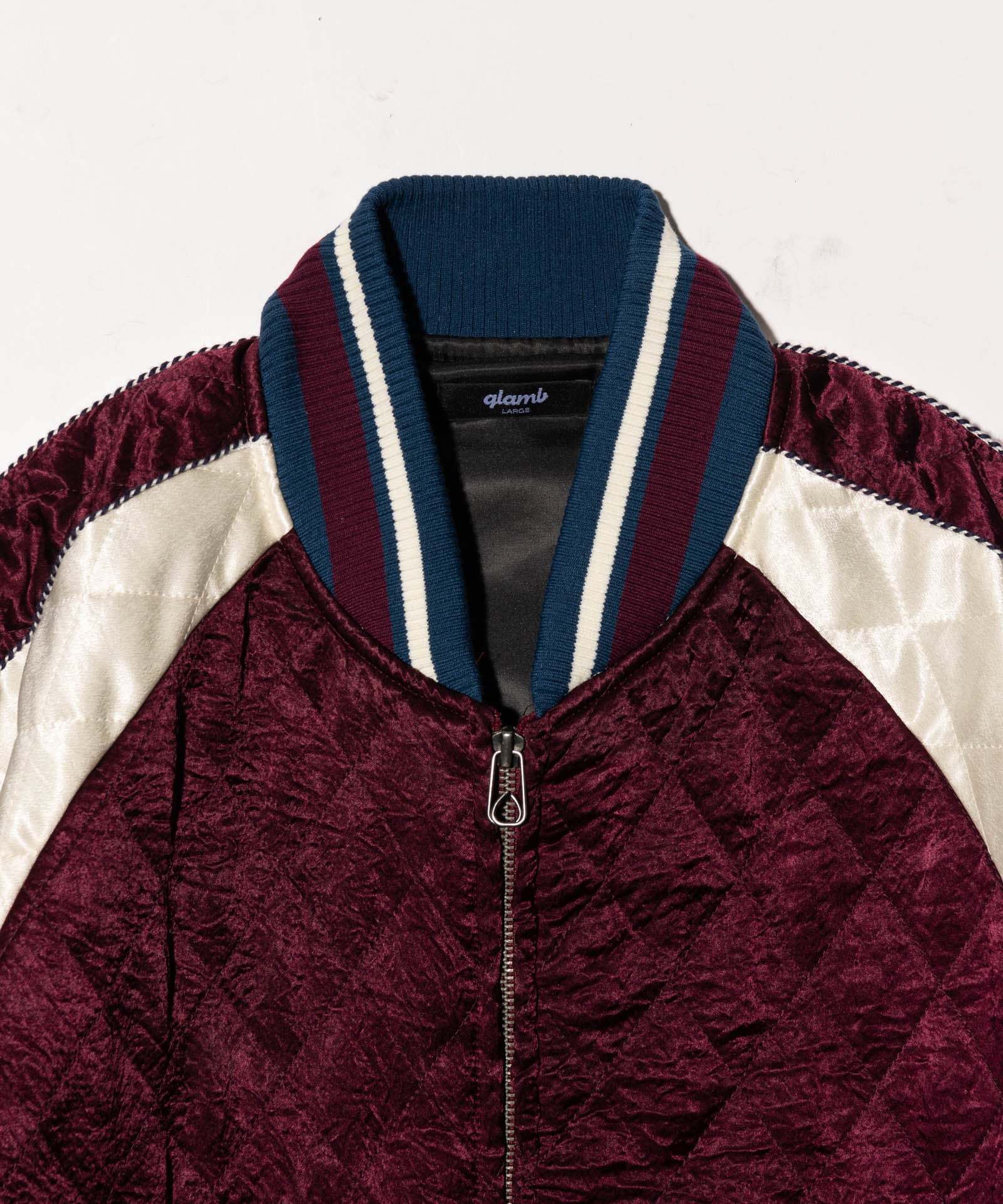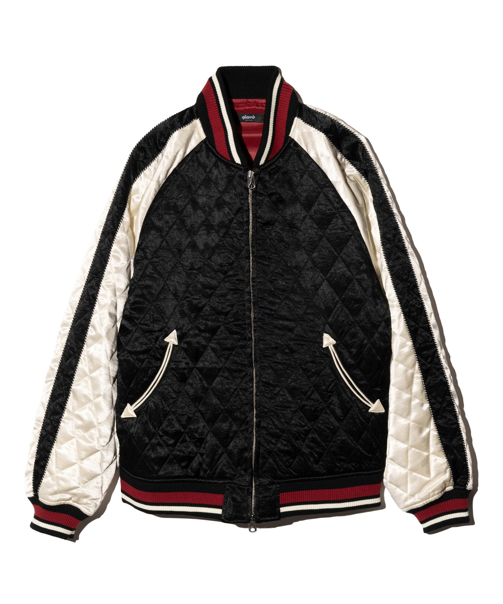 glambのアウタースタイルの定番であるスカジャンパーに、レトロなバイカーテイストをかけ合わせたQuilting Ska Jumper。テキスタイルに使用したアセテート生地はシルキーな光沢と柔らかな落ち感に加え、生地段階で皺加工を施したヴィンテージ感ある風合いが特徴。スカジャンパーの定番である柄刺繍を廃し、代わりにキルティングをボディ全体に施して仕上げることでミニマルでありながらタフなビジュアルに仕立てました。シルエットは身幅と着丈にゆとりを持たせることでルーズなフィッティングに。ラグランスリーブはオーバーサイズスタイリングにも相性が良く、ユニセックスでの着用もおすすめです。
