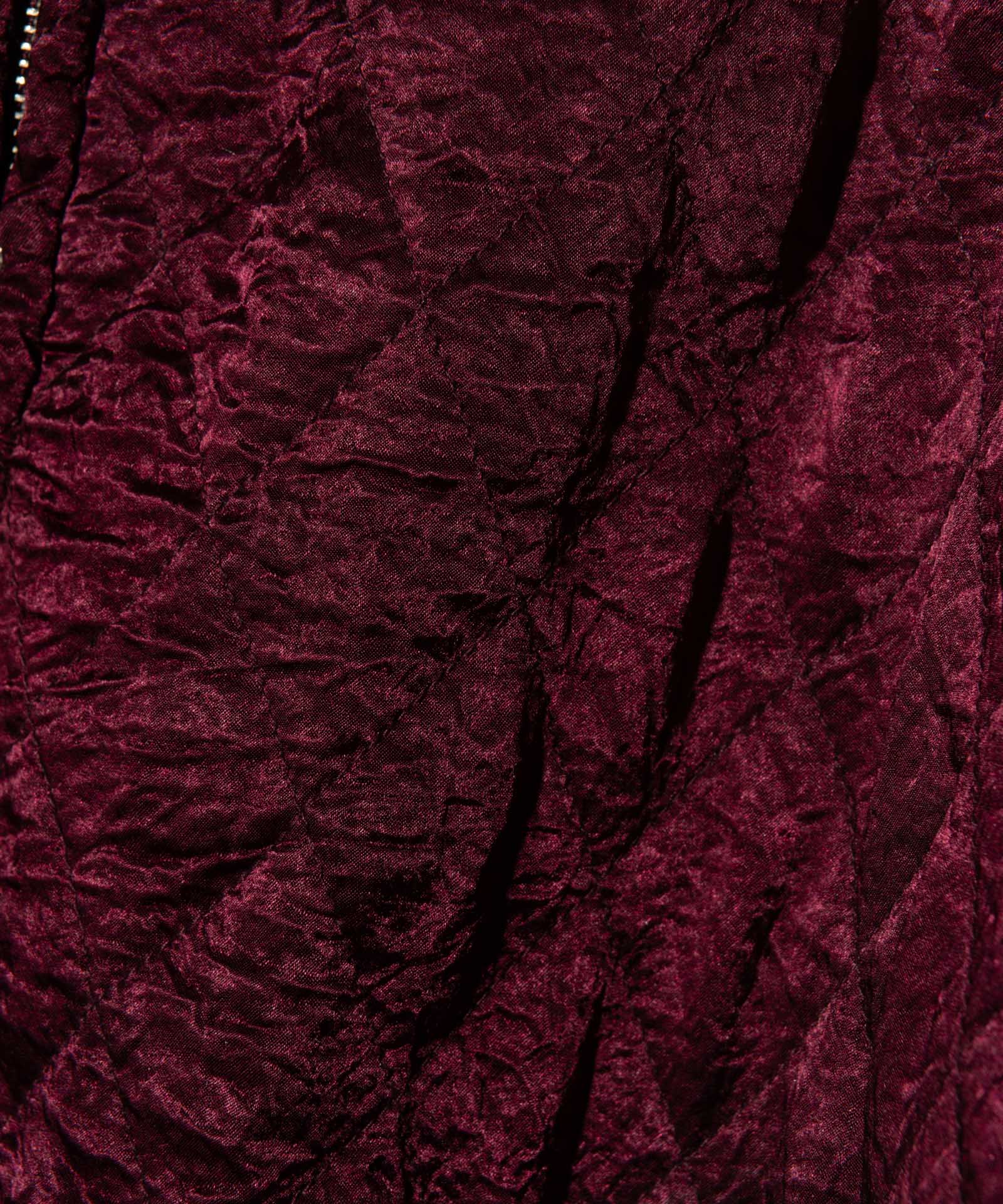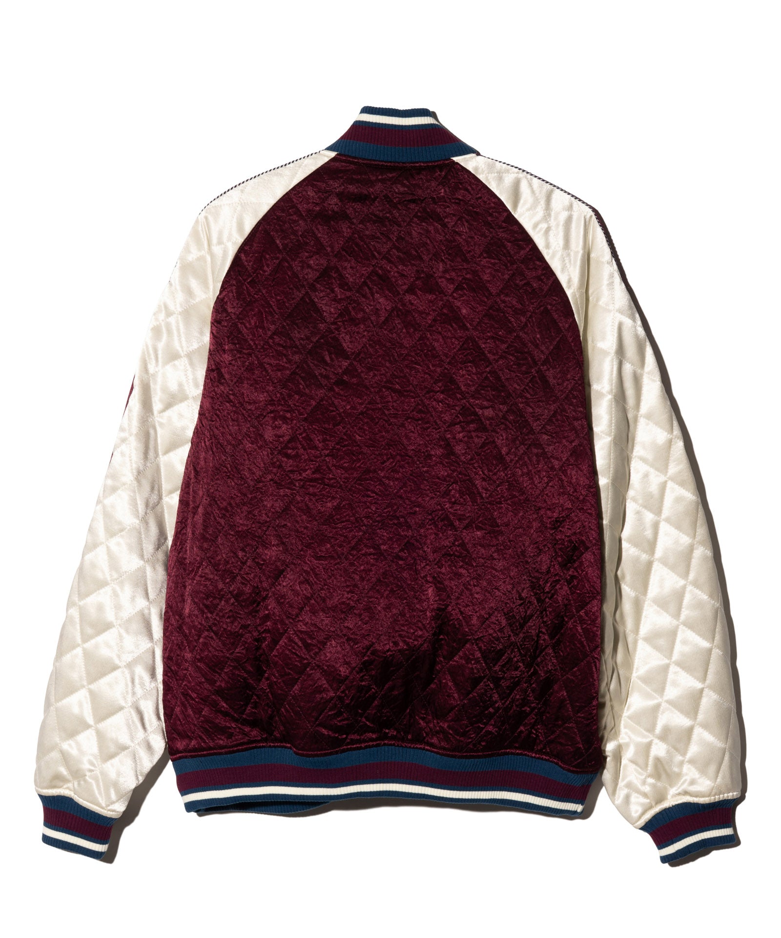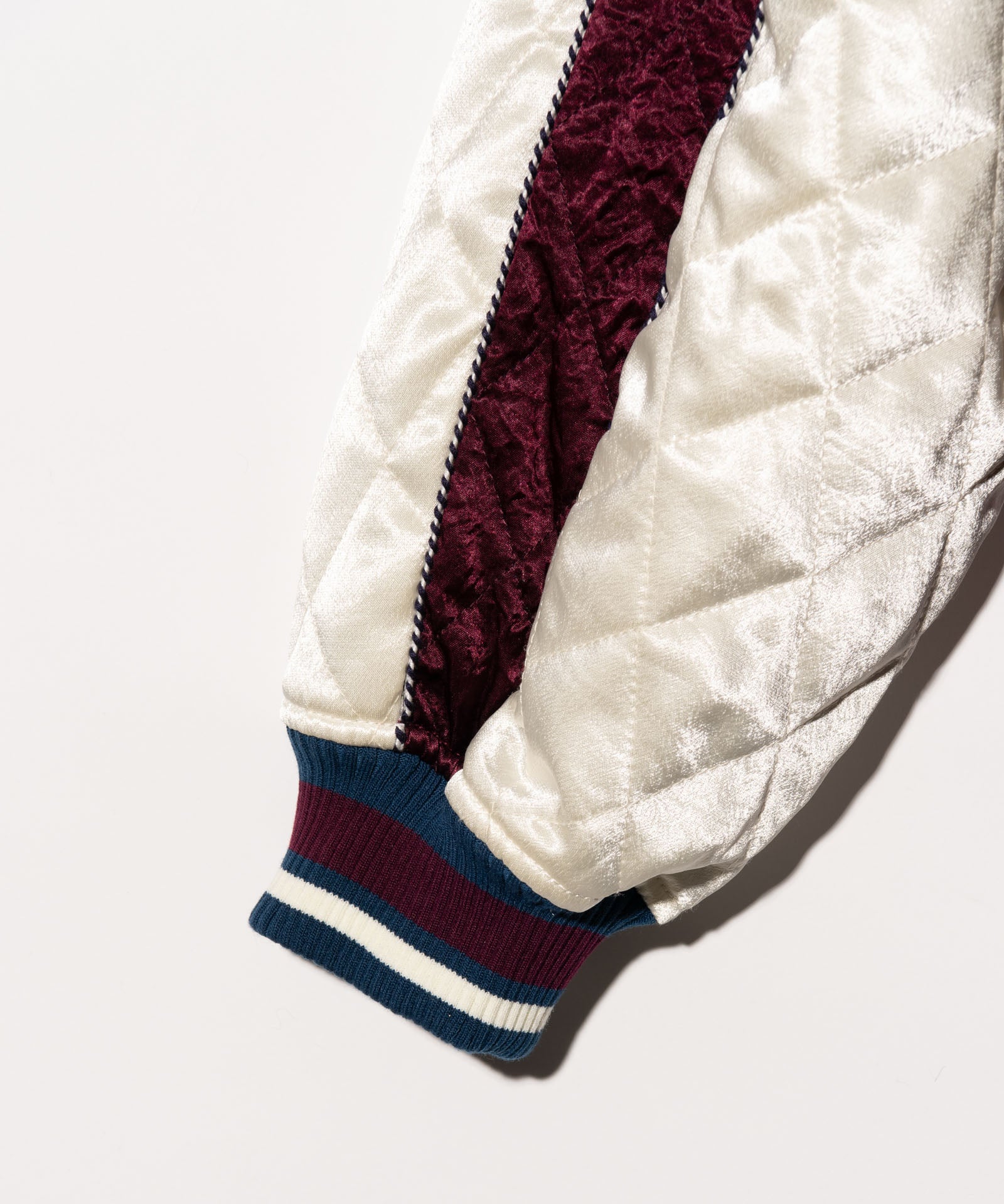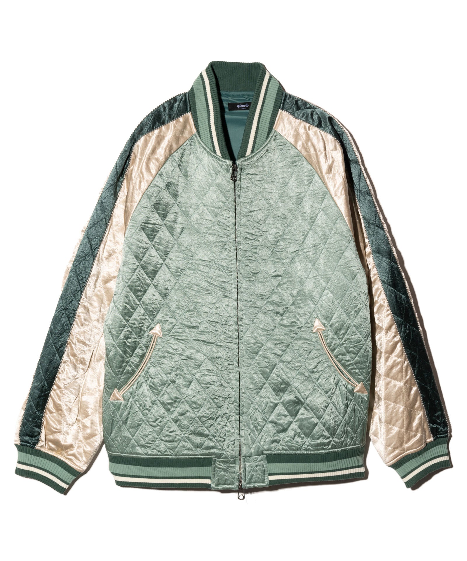 glambのアウタースタイルの定番であるスカジャンパーに、レトロなバイカーテイストをかけ合わせたQuilting Ska Jumper。テキスタイルに使用したアセテート生地はシルキーな光沢と柔らかな落ち感に加え、生地段階で皺加工を施したヴィンテージ感ある風合いが特徴。スカジャンパーの定番である柄刺繍を廃し、代わりにキルティングをボディ全体に施して仕上げることでミニマルでありながらタフなビジュアルに仕立てました。シルエットは身幅と着丈にゆとりを持たせることでルーズなフィッティングに。ラグランスリーブはオーバーサイズスタイリングにも相性が良く、ユニセックスでの着用もおすすめです。