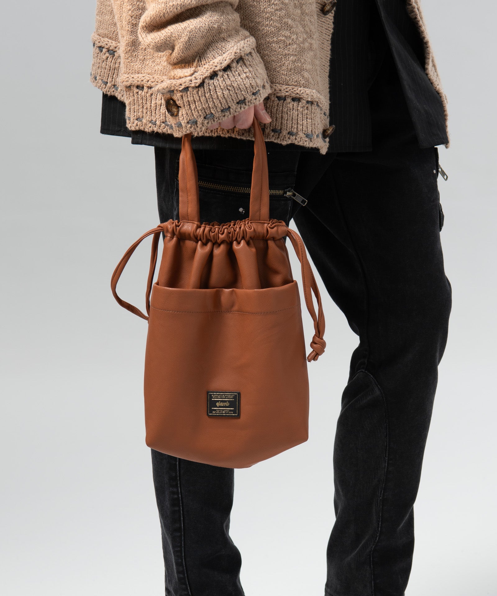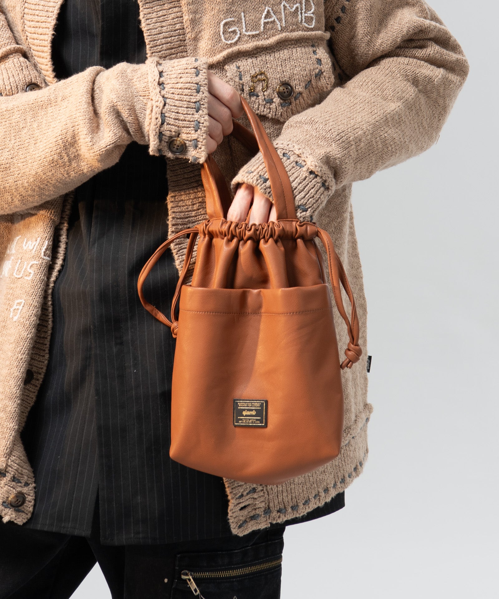 Synth Leather Drawstring Bag / シンセレザードローストリングバッグ