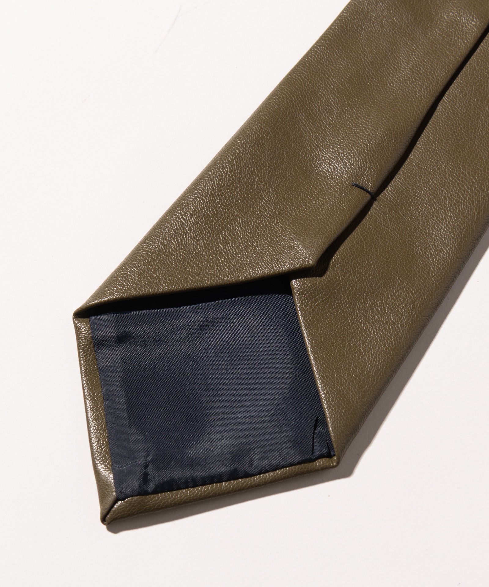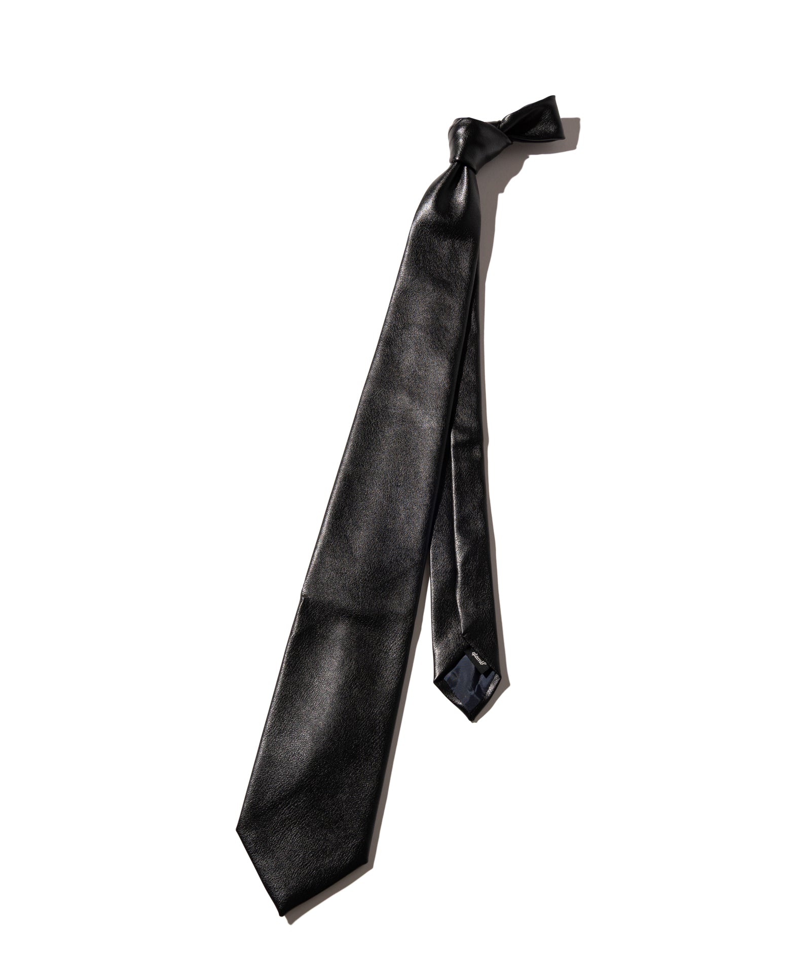 ロックマインドある素材と国内仕上げの上質なクオリティが、シャツスタイリングにグラマラスな艶を与えるSynth Leather Tie。テキスタイルにはきめ細やかなシボが刻まれたシンセティックレザーを使用。シルエットはやや細身の幅に設定することで、カジュアルスタイルからパーティスタイルまで幅広いシーンで使える佇まいに仕上げています。