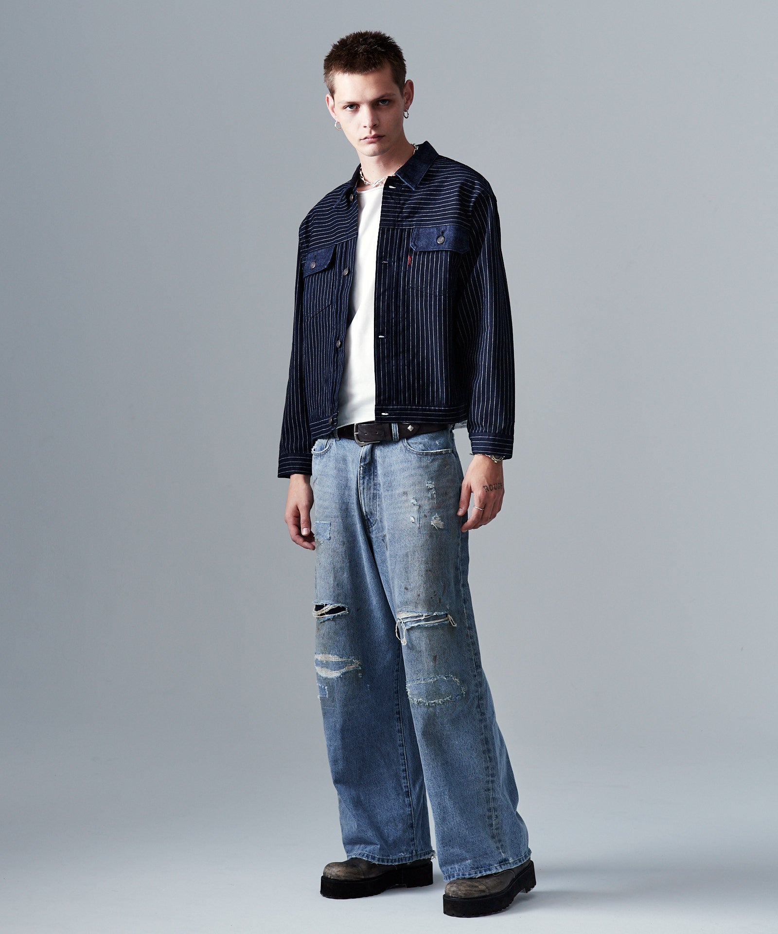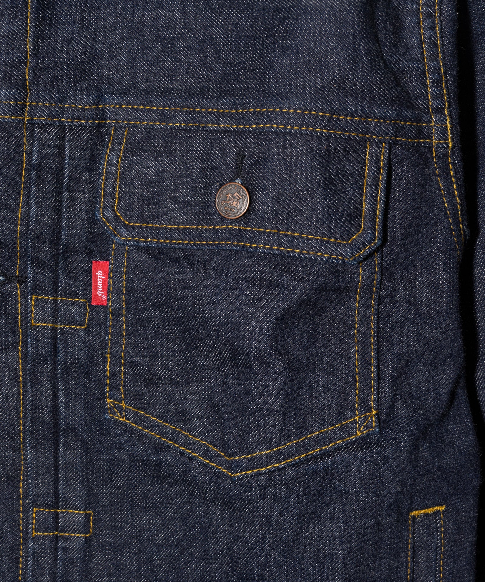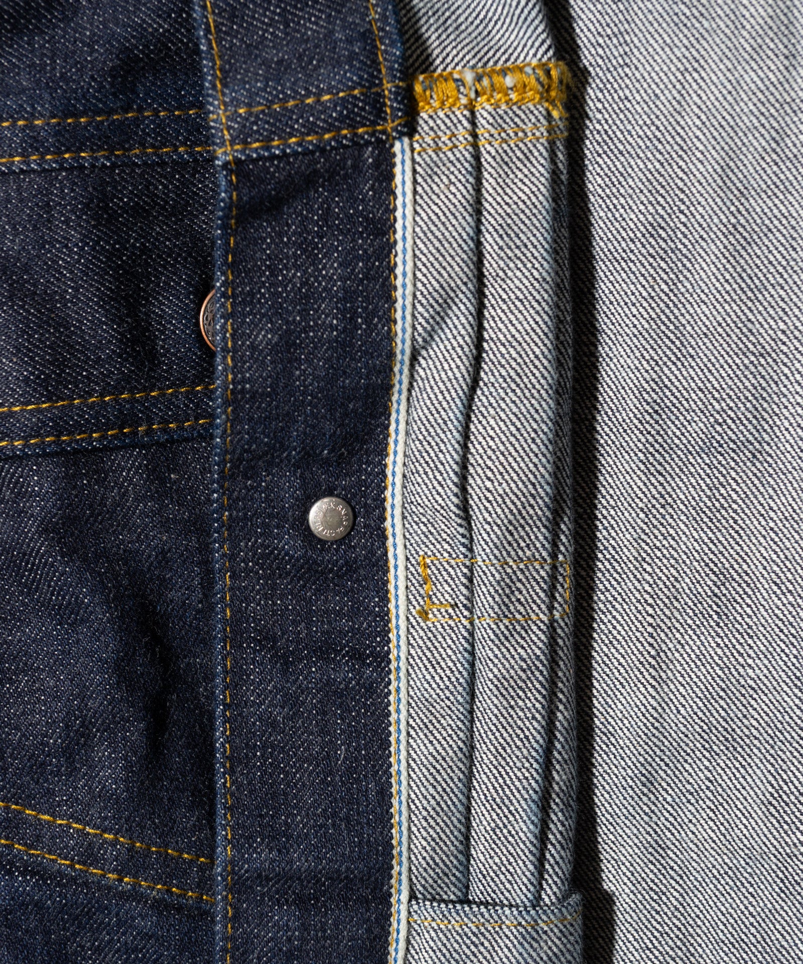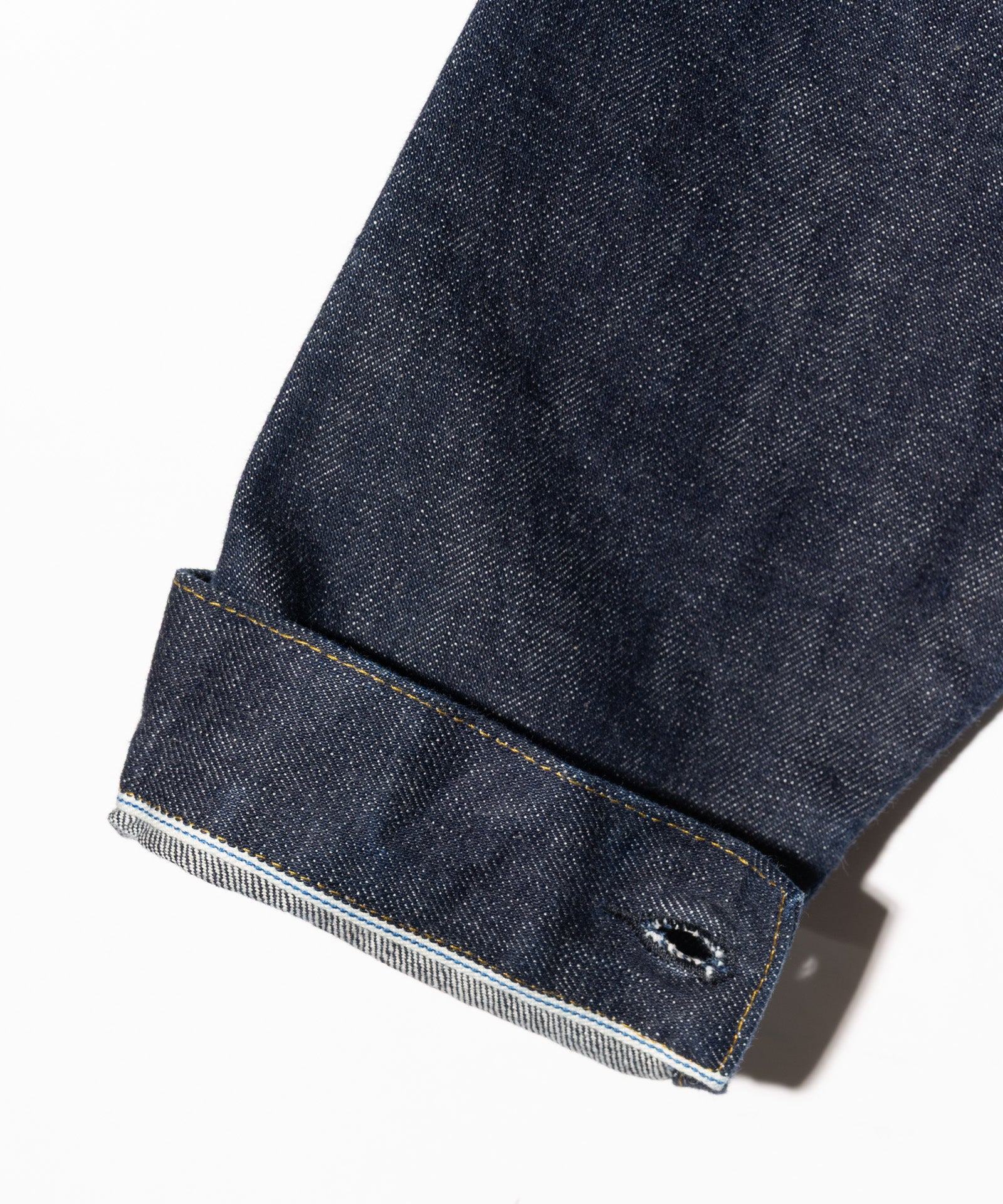 静謐さとエッジを兼ね揃えたスタンダードスタイルを提案する“Blue Noise”より、デニムヒストリーへのリスペクトを込めた1着、Blue Noise Denim Jacketが登場。いくつもの歴史的デニムジャケットの意匠を組み合わせたかのディテール使いとなる本作、ブランドのこだわりが特に込められたのは背面のTバックや1枚袖。ヴィンテージモデルの中でも取り分け希少とされる仕様となっています。ボディはレギュラーフィッティングのボックスシルエット。カラーバリエーションではIndigoとHickoryの2種を展開。中でもIndigoはテキスタイルに黎明期のデニム生地と同様の製法によって生産されたセルヴィッチデニムを使用。旧式力織機によって時間をかけて織り上げられたテキスタイルは生地表面に生じた凹凸が美しい色落ちを生む他、裏地では赤耳ではなく青耳を覗かせてデニムフリークの心をくすぐります。