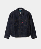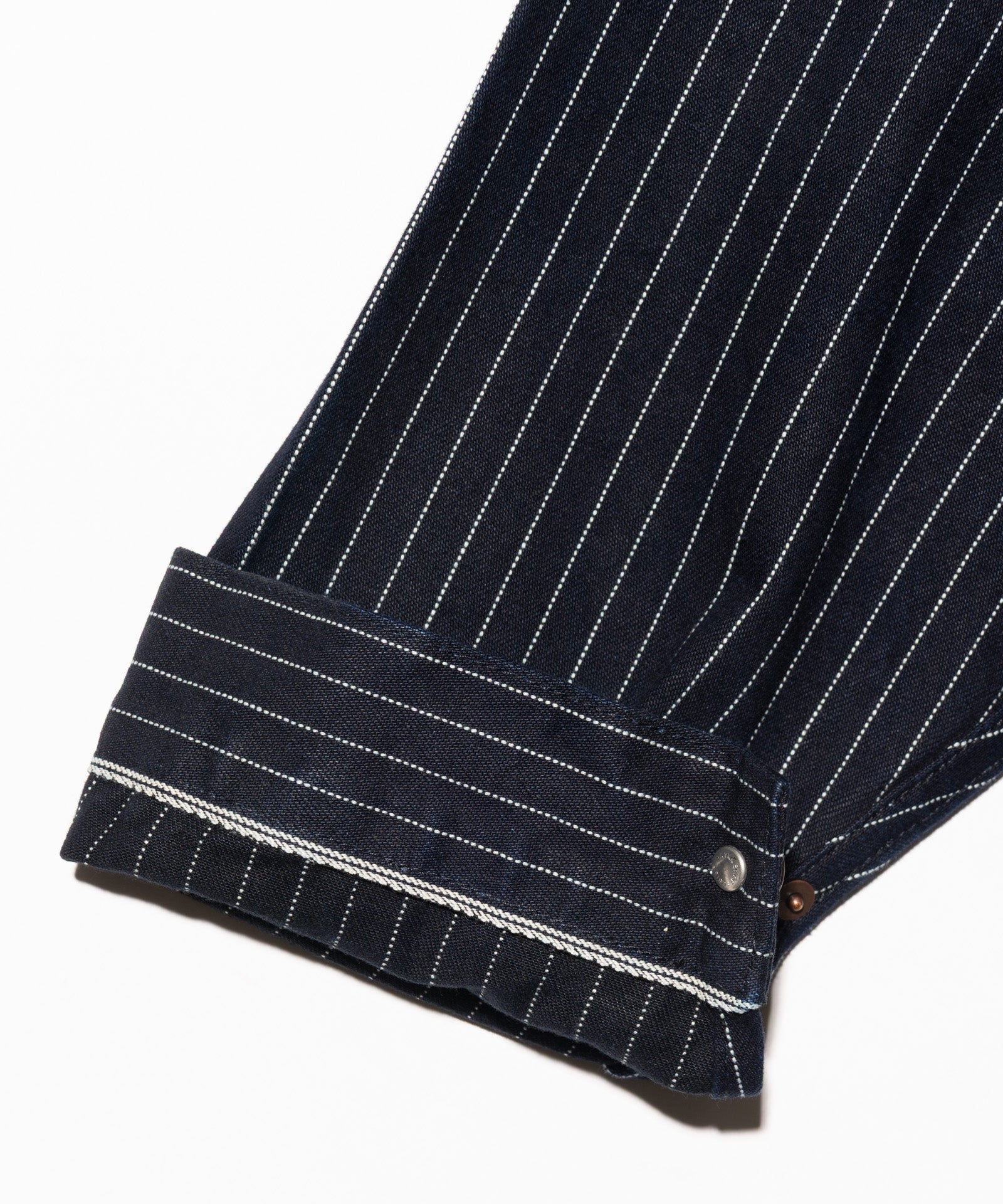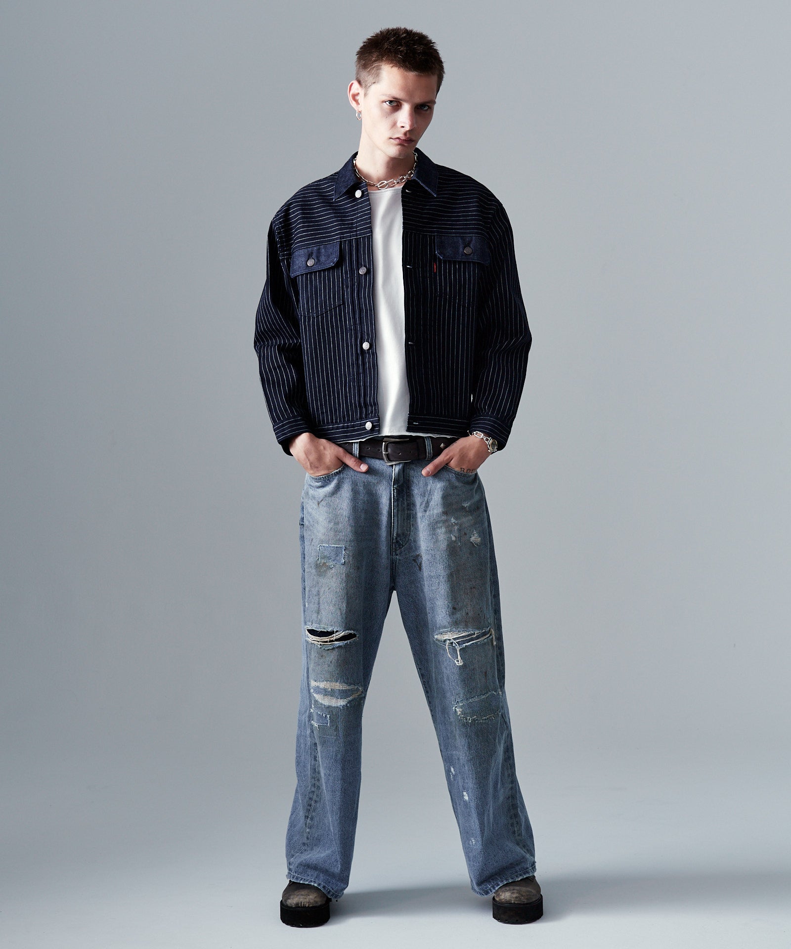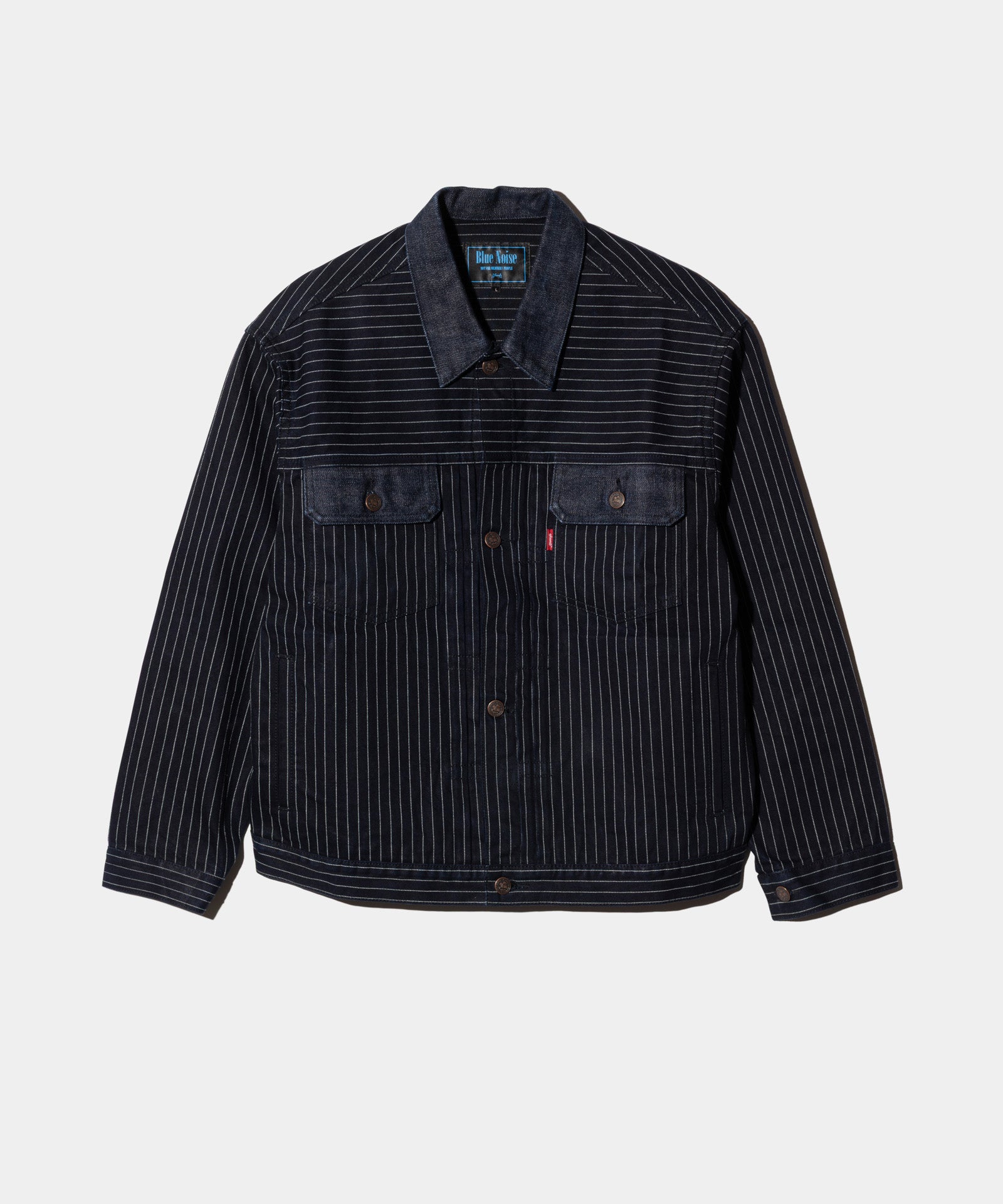 静謐さとエッジを兼ね揃えたスタンダードスタイルを提案する“Blue Noise”より、デニムヒストリーへのリスペクトを込めた1着、Blue Noise Denim Jacketが登場。いくつもの歴史的デニムジャケットの意匠を組み合わせたかのディテール使いとなる本作、ブランドのこだわりが特に込められたのは背面のTバックや1枚袖。ヴィンテージモデルの中でも取り分け希少とされる仕様となっています。ボディはレギュラーフィッティングのボックスシルエット。カラーバリエーションではIndigoとHickoryの2種を展開。中でもIndigoはテキスタイルに黎明期のデニム生地と同様の製法によって生産されたセルヴィッチデニムを使用。旧式力織機によって時間をかけて織り上げられたテキスタイルは生地表面に生じた凹凸が美しい色落ちを生む他、裏地では赤耳ではなく青耳を覗かせてデニムフリークの心をくすぐります。