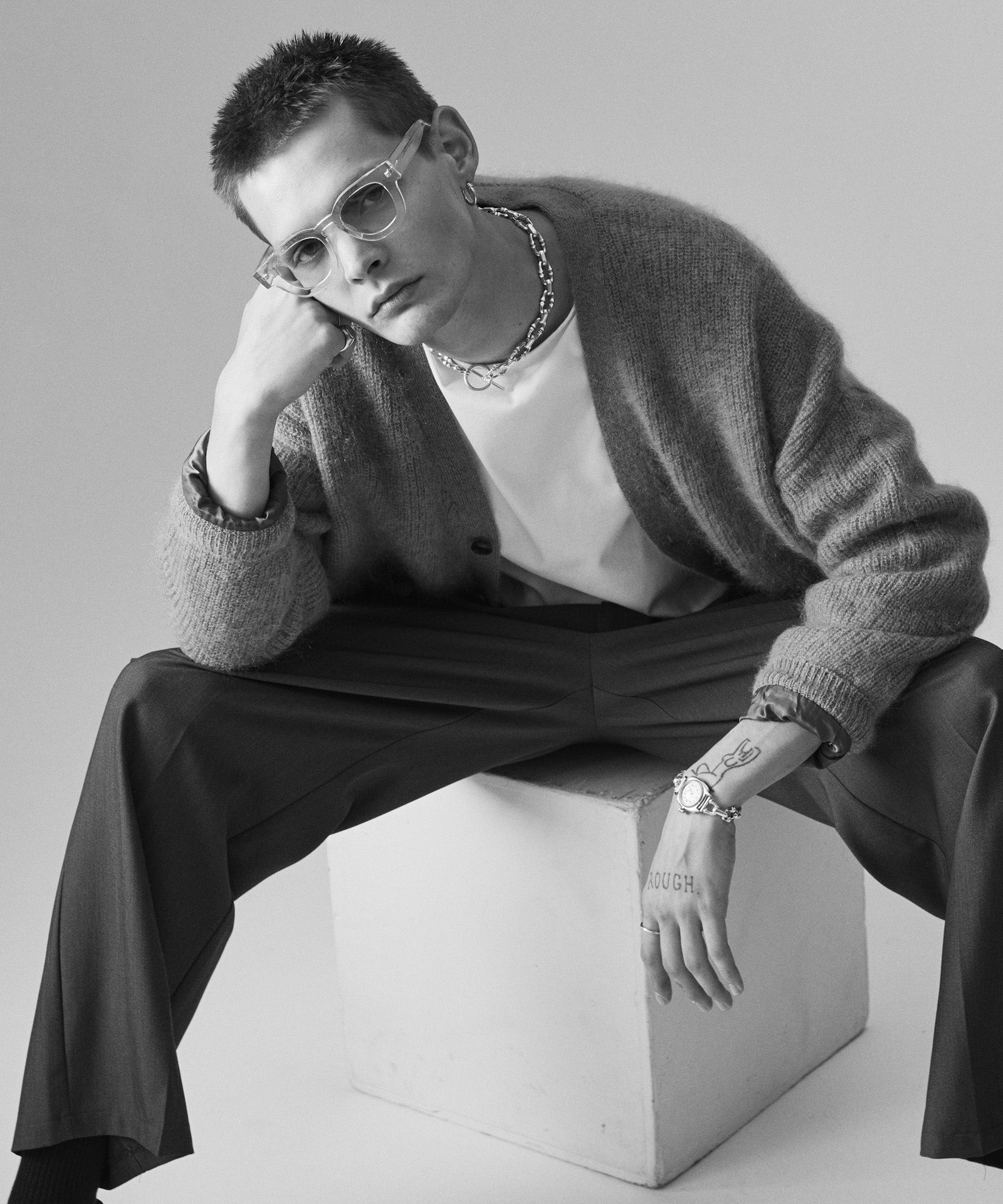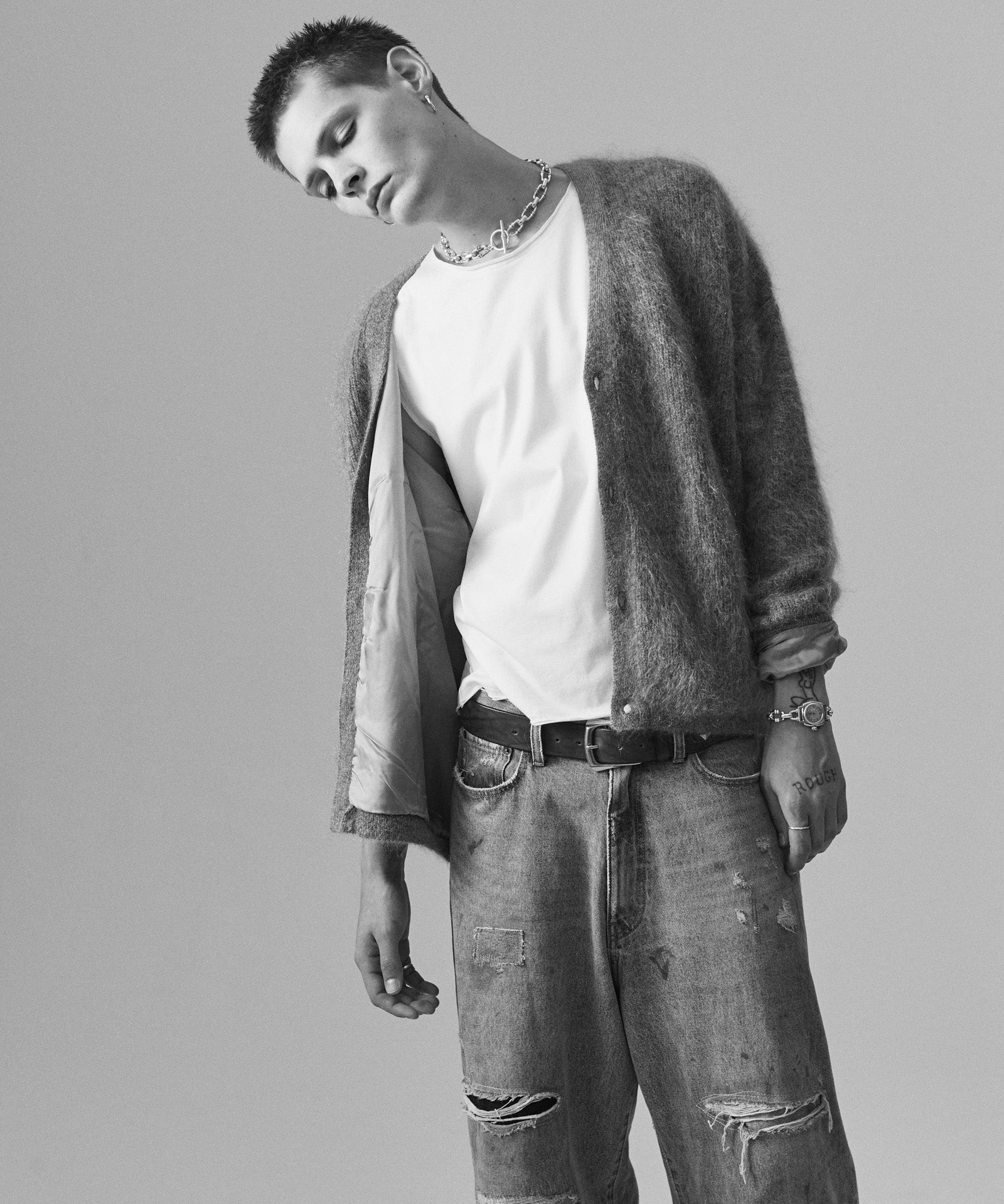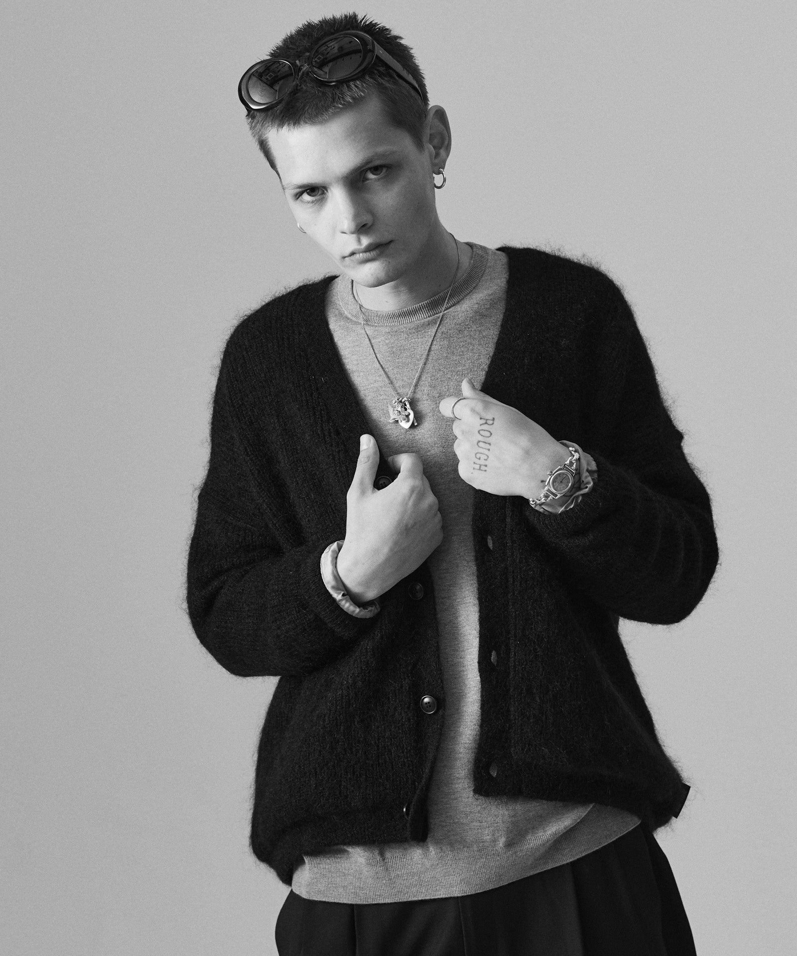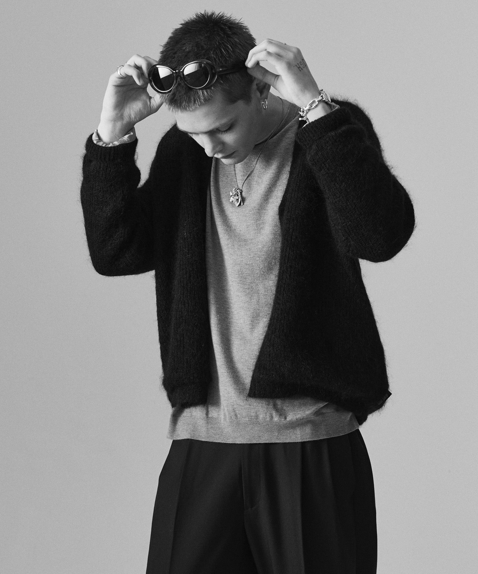 贅沢な素材使いでスタンダードアイテムに静謐さとエッジをもたらす“Blue Noise”シリーズから、冬のニットスタイルにリュクスな着用感をもたらすBlue Noise Mohair Cardiganをリリース。長い毛足と光沢を備え、保温性と吸湿性に優れるモヘア混の糸を片畦編みした生地をボディに使用。素材特有の長い毛足が感じられるシャギーな編地にはロックやグランジのムードが漂います。着用感を向上すべく設けた裏地には、滑らかでキメの細かい肌触りとドレープ性、吸湿性からテーラードスーツなどの裏地として信頼されるキュプラを使用。シルエットはレギュラーシルエットに設定し、トレンドを超えてご着用いただける仕上がりにまとめました。