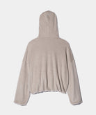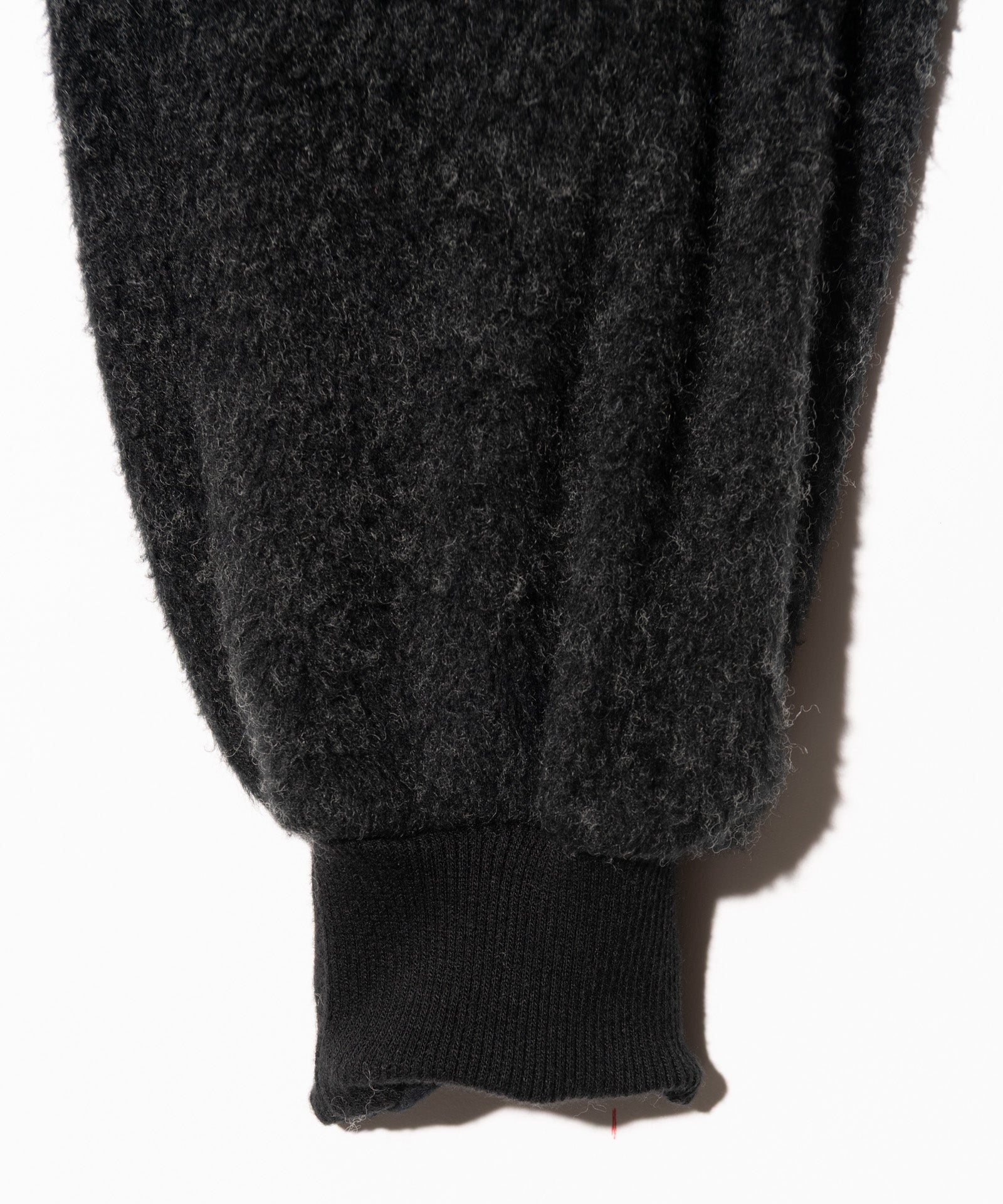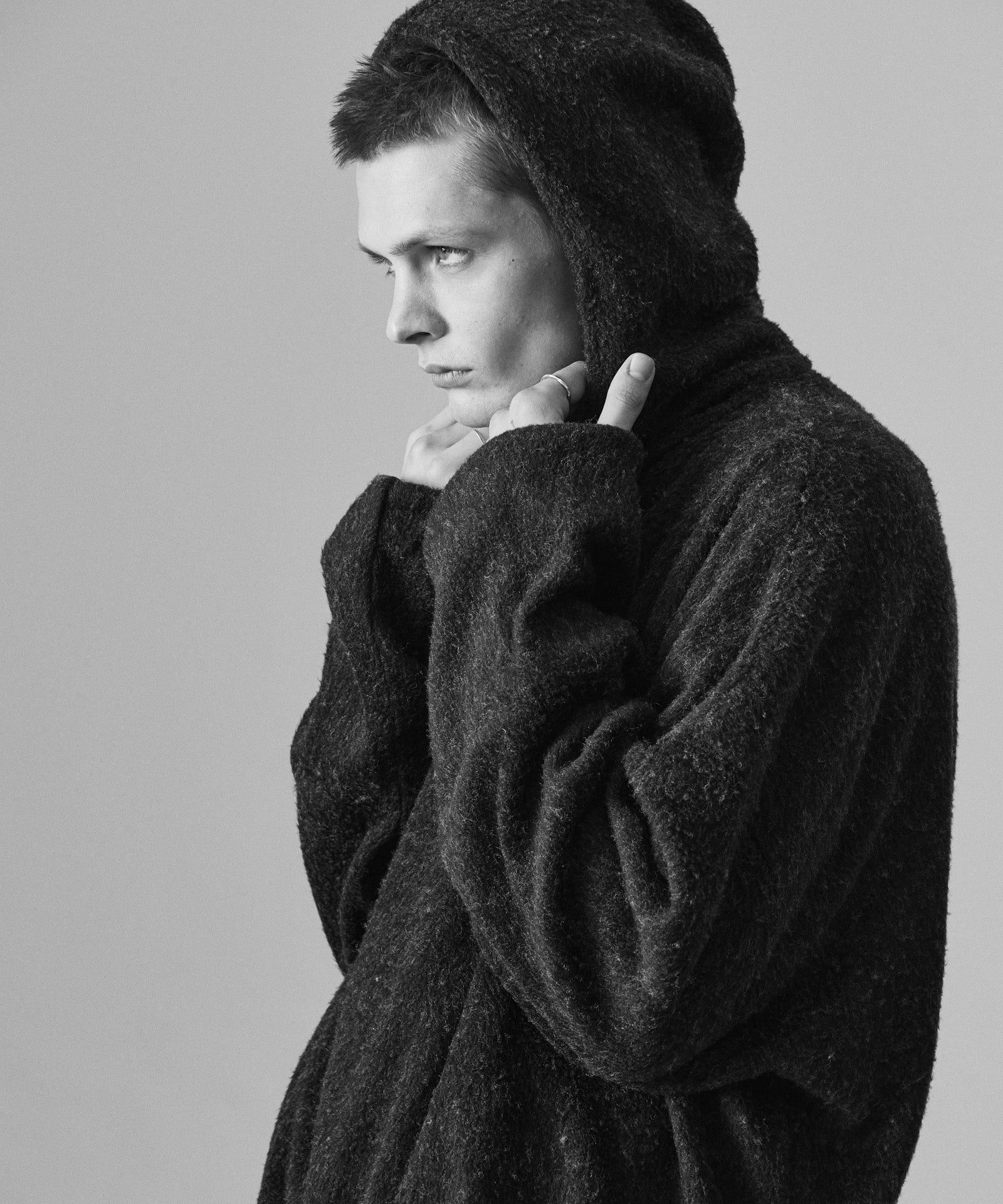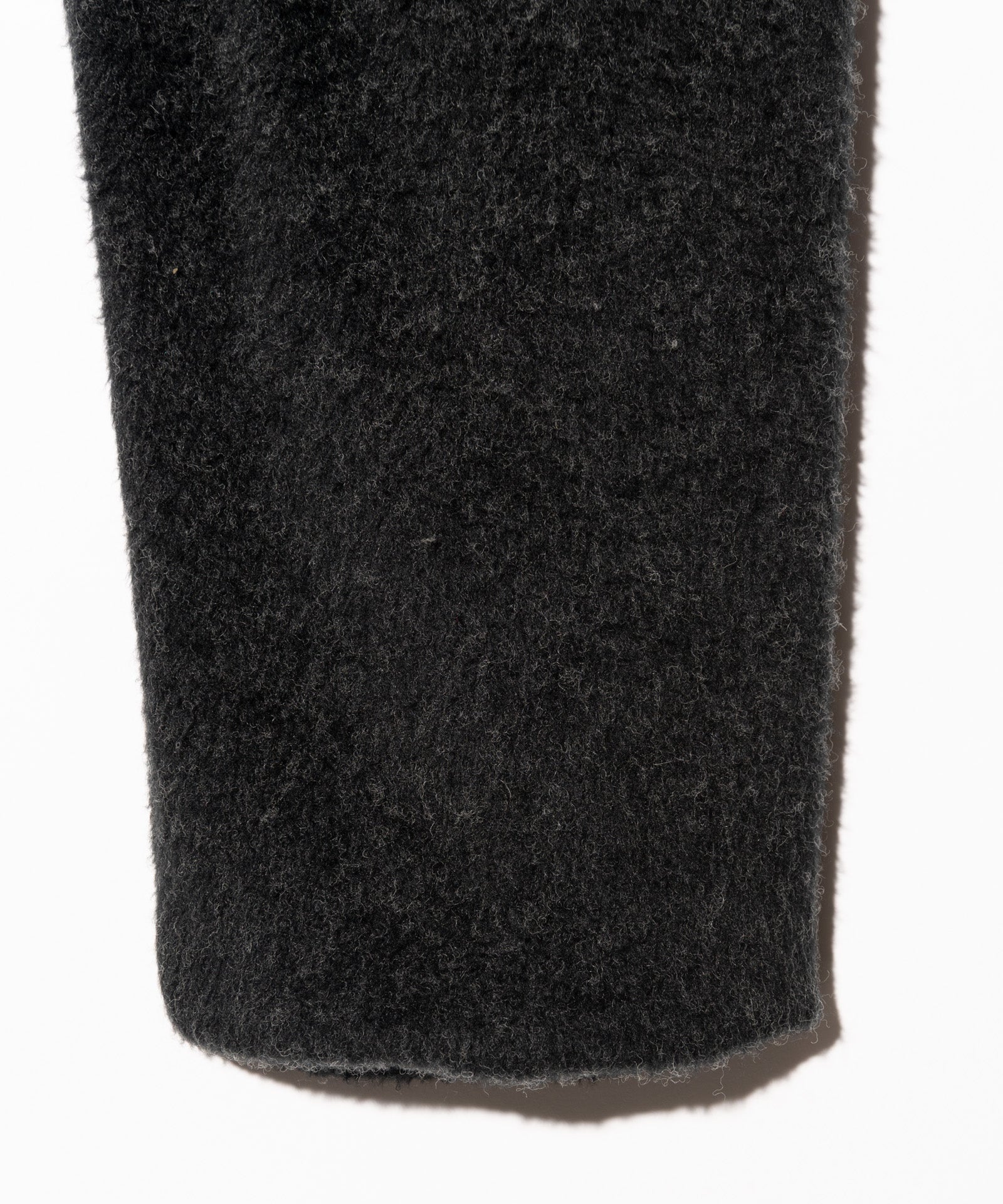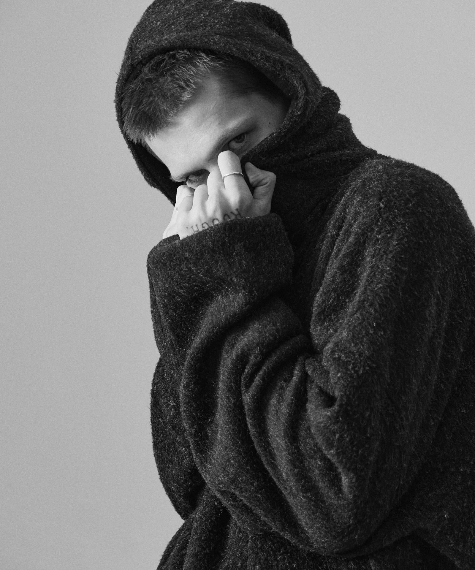 上質さを追求する素材使いでスタンダードアイテムに静謐さとエッジをもたらす“Blue Noise”シリーズからファーライク生地をフーディへと落とし込んだBlue Noise Shaggy Hoodieをリリース。テキスタイルに用いたのは、特殊紡績で糸にボリュームを出すことでふわりとした質感を持たせたウール混スムースシャギー生地。時間を惜しまない工程によって仕上げられたマテリアルは、着心地と視覚の双方で上質な体験をもたらします。袖口とショートレングスの裾は内側に設けたリブを裏地で釣り上げることでバルーンシルエットを形成。リュクスと独創性を併せ持ったヴィジュアルを作り上げました。