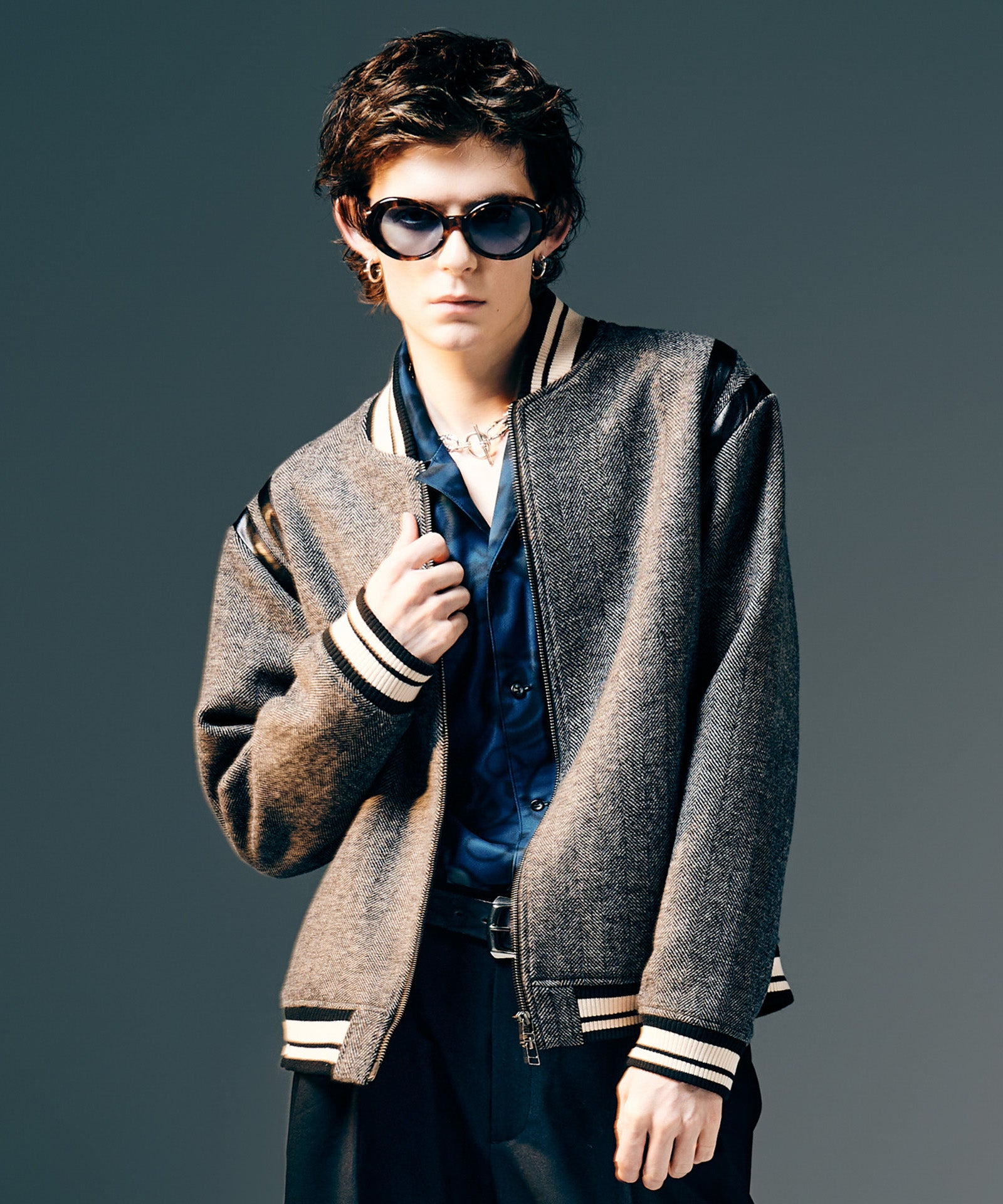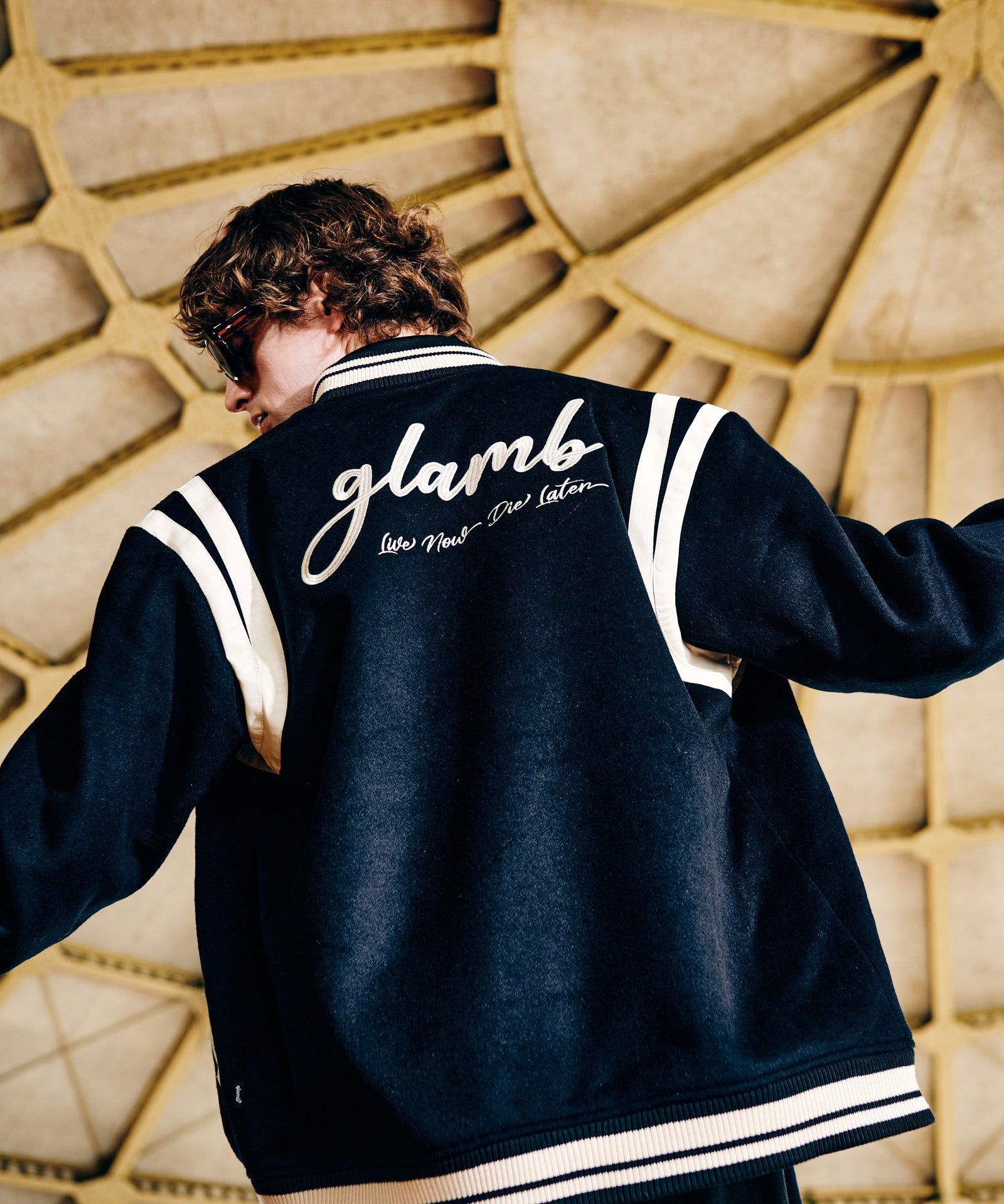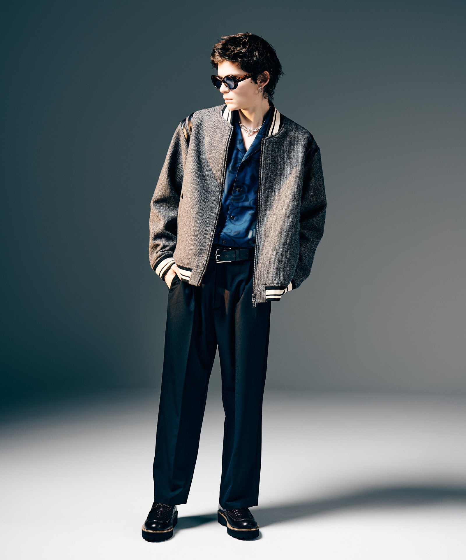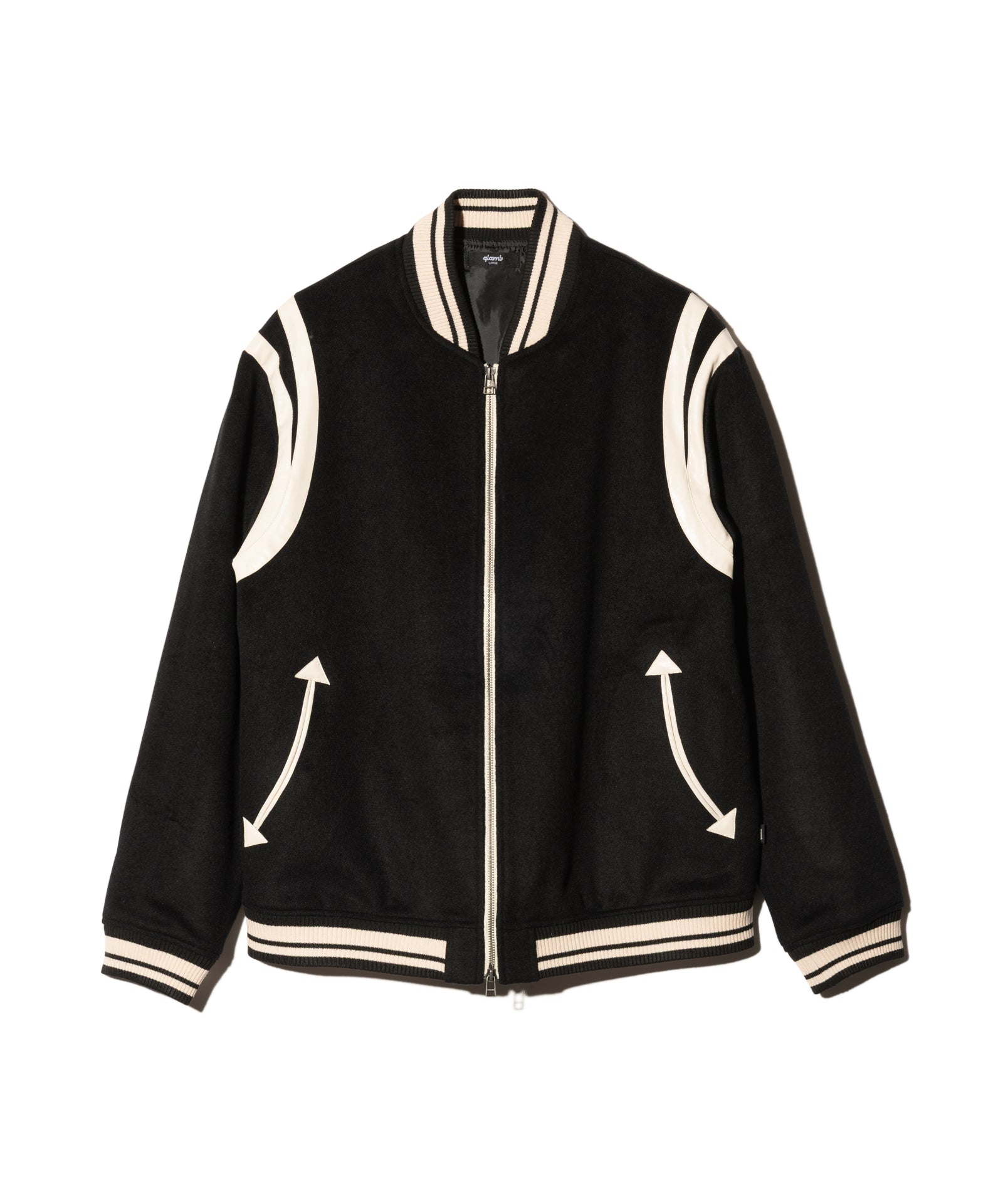 スタジアムジャンパーをコンパクトにリシェイプ、ロックマインドあるディテールを乗せて仕上げたBowler Stadium Jumper。レギュラーフィッティングのボディは着丈をショートにまとめたボックスシルエット。Blackは無地、Grayはヘリンボーンの柄違いとなりますが、いずれも素材はウール混となり繊細で風合い豊かなテクスチャをお楽しみいただけます。さらにブランドらしいエッセンスを込めたのがボウリングシャツを踏襲した随所のディテール使い。バックスタイルにはブランドロゴを刺繍、肩口にはシンセティックレザーを使用した切り替えを施してロックンロールのムードを与えています。