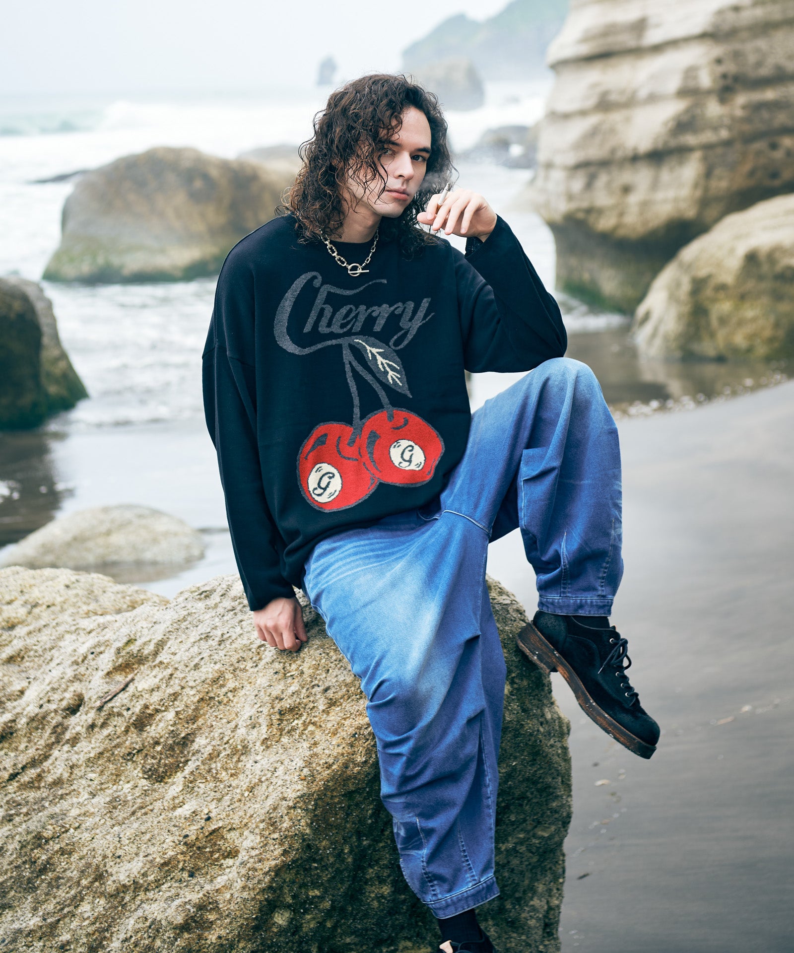 Summer Collection 2025で人気を博したCherry Ball T-Shirtをニットウェアに再構築したCherry Ball Knit。ビリヤードボールを模ったデザインは鮮明な柄表現を特徴とするインターシャ編みで表現したもの。チェリー部分は凹凸あるブークレ糸を素材に用い、輪郭を浮き上がらせた立体感あるテクスチャにまとめています。シルエットはフィッティングにゆとりを持たせたボックスシルエット。アメリカンカジュアルなスタイリングはもちろん、スラックスなどフォーマルアイテムと合わせて抜け感を演出するのもおすすめです。