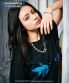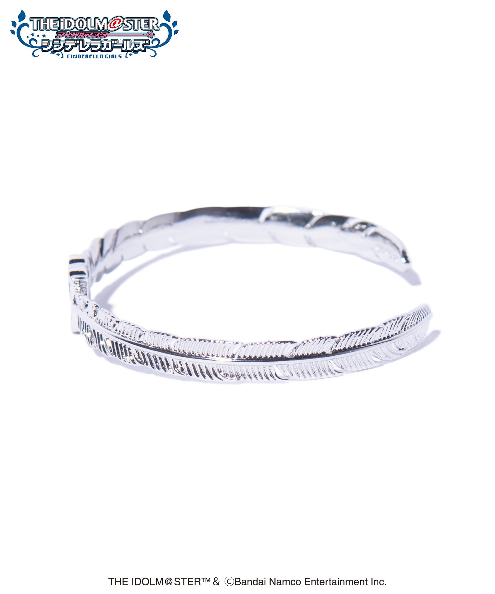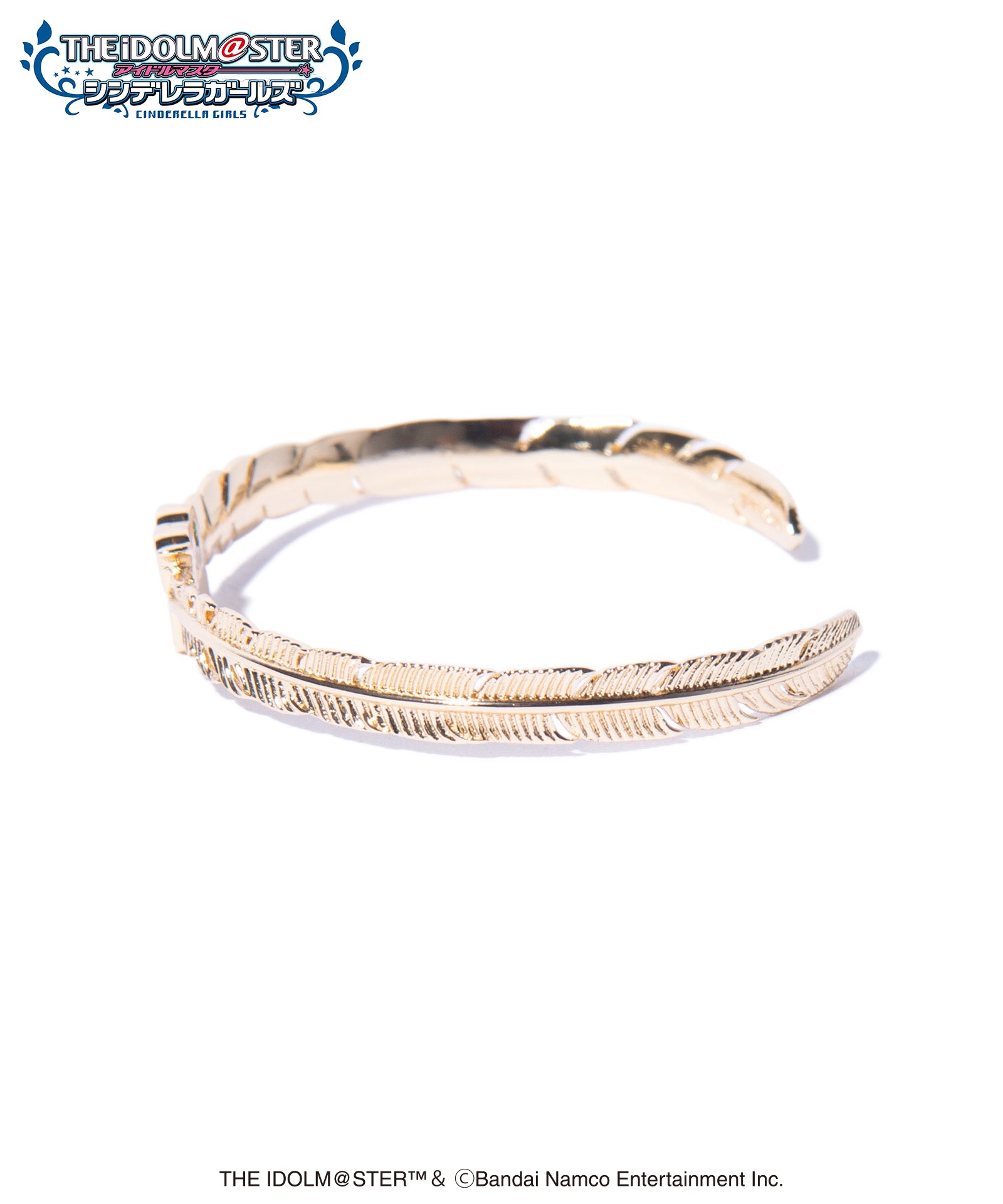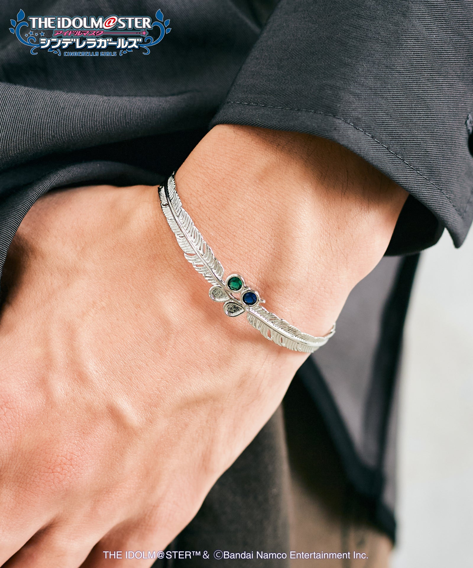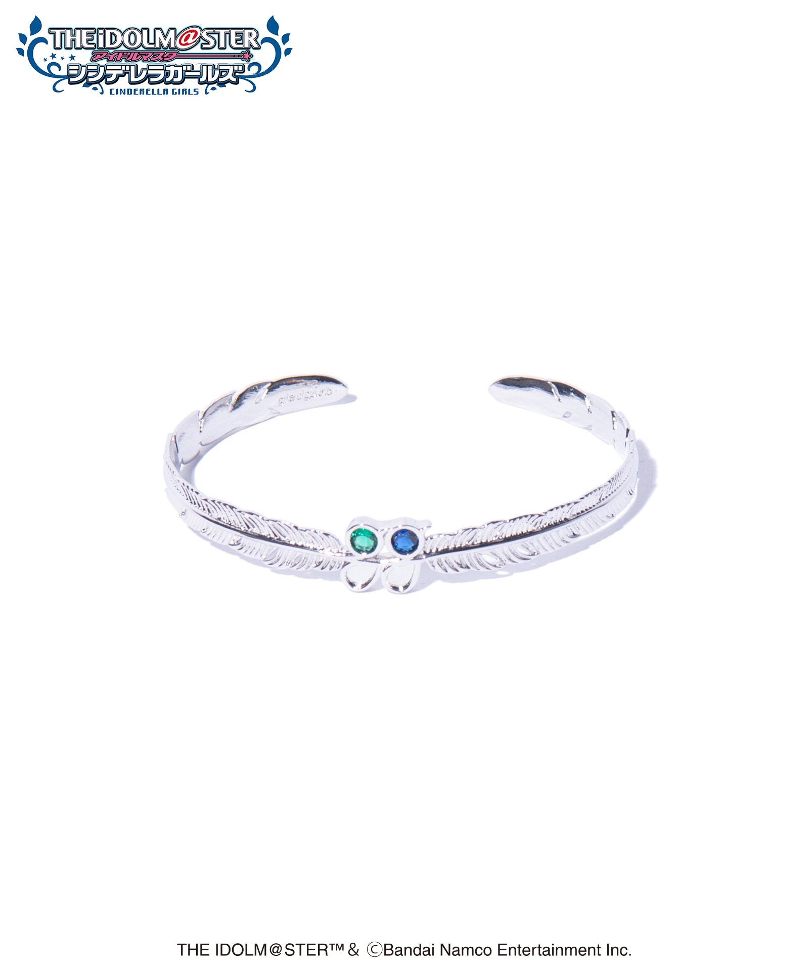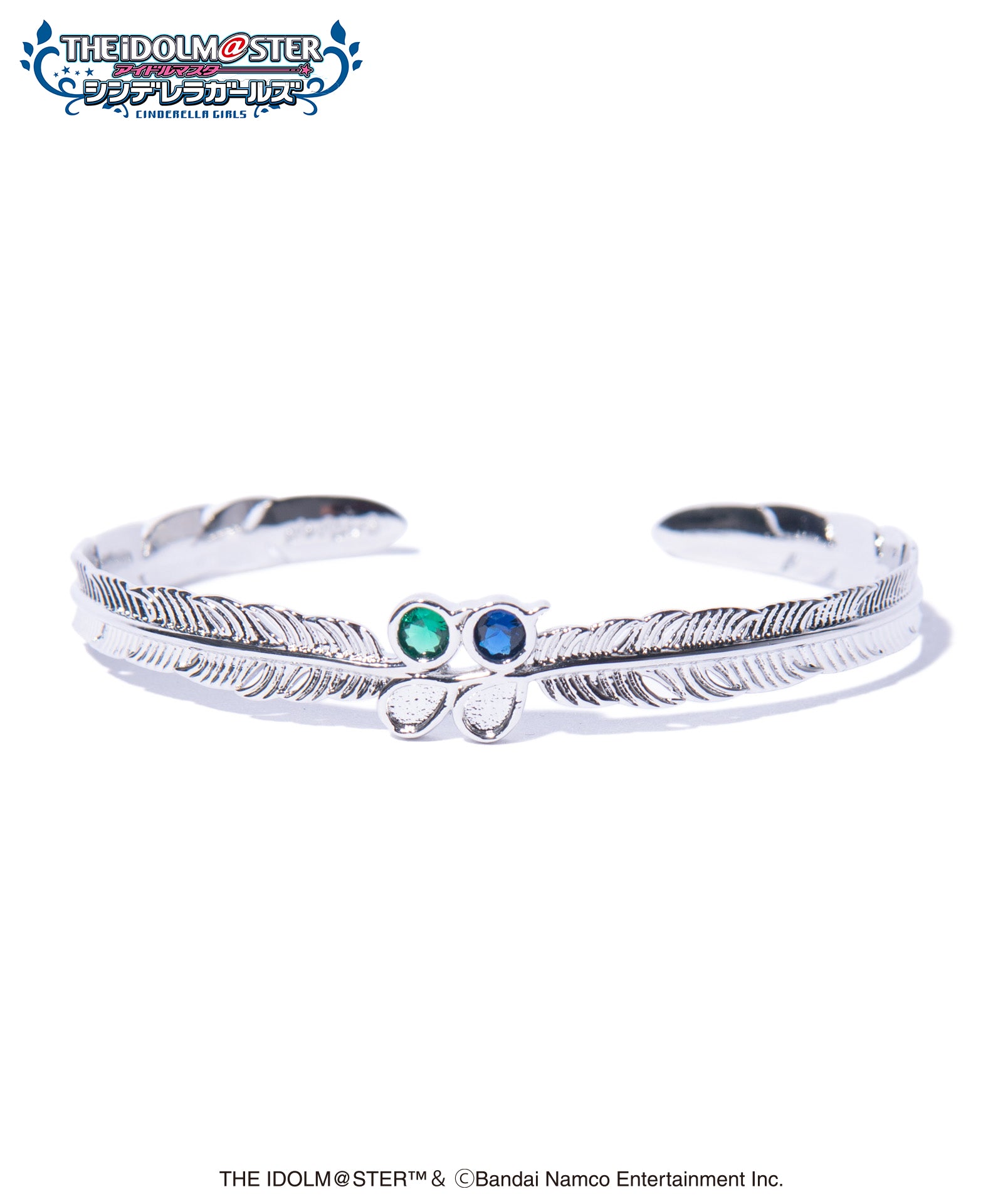 手元にユニットを想起させるジュエリーを提案するMysterious Eyes Bangle。フェザーモチーフのボディにあしらったのは二人のカラーを用いたストーン。gladgarbを表す「gg」の輪郭に落とし込んでコラボレーションならではの特別なデザインを作り上げました。