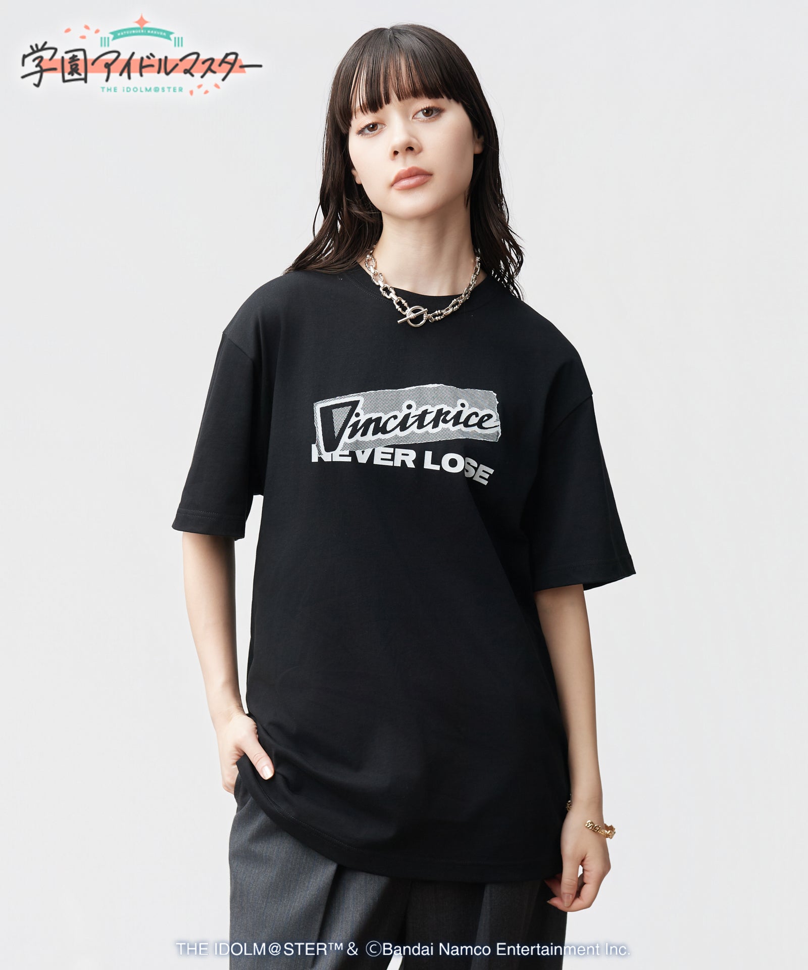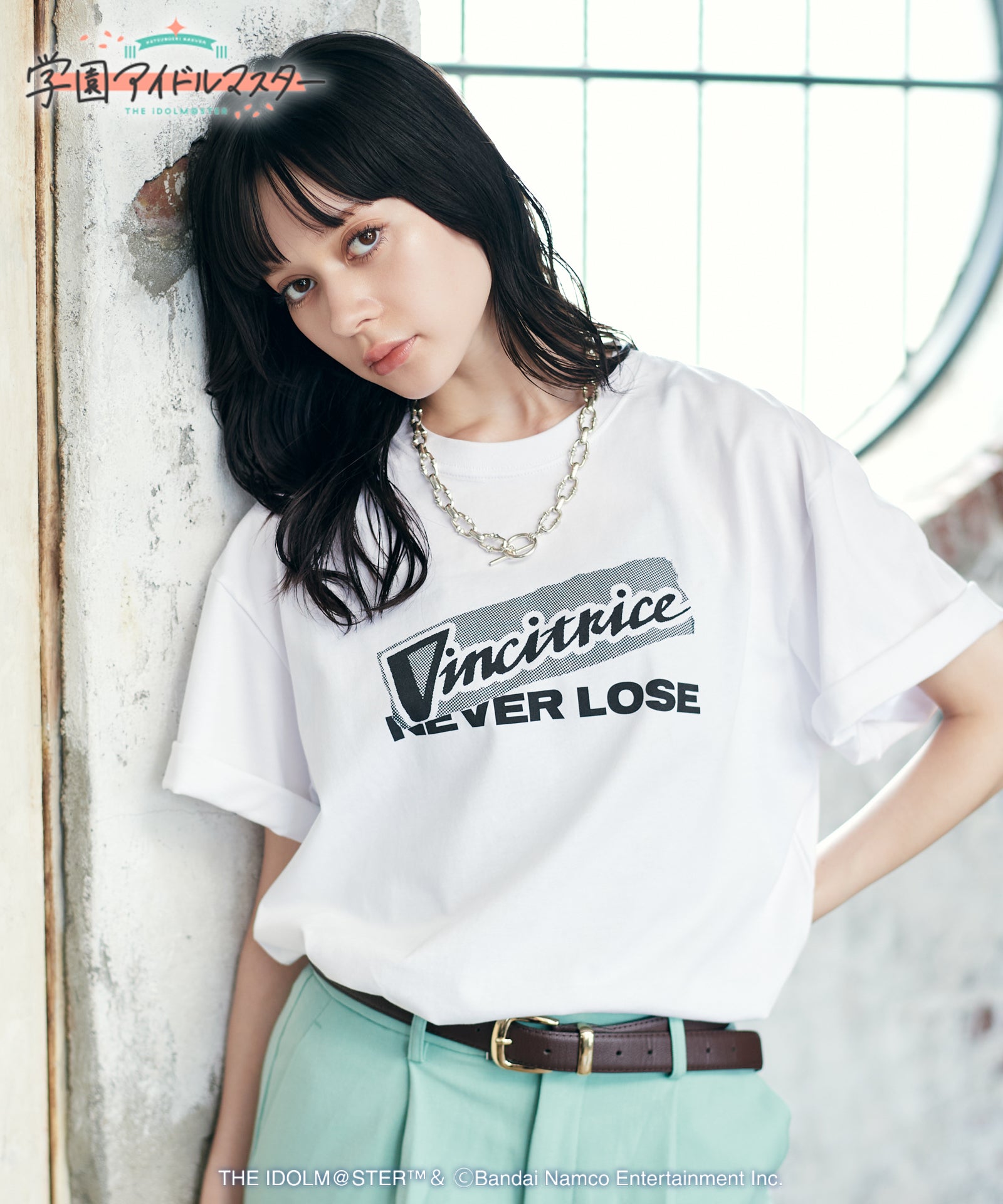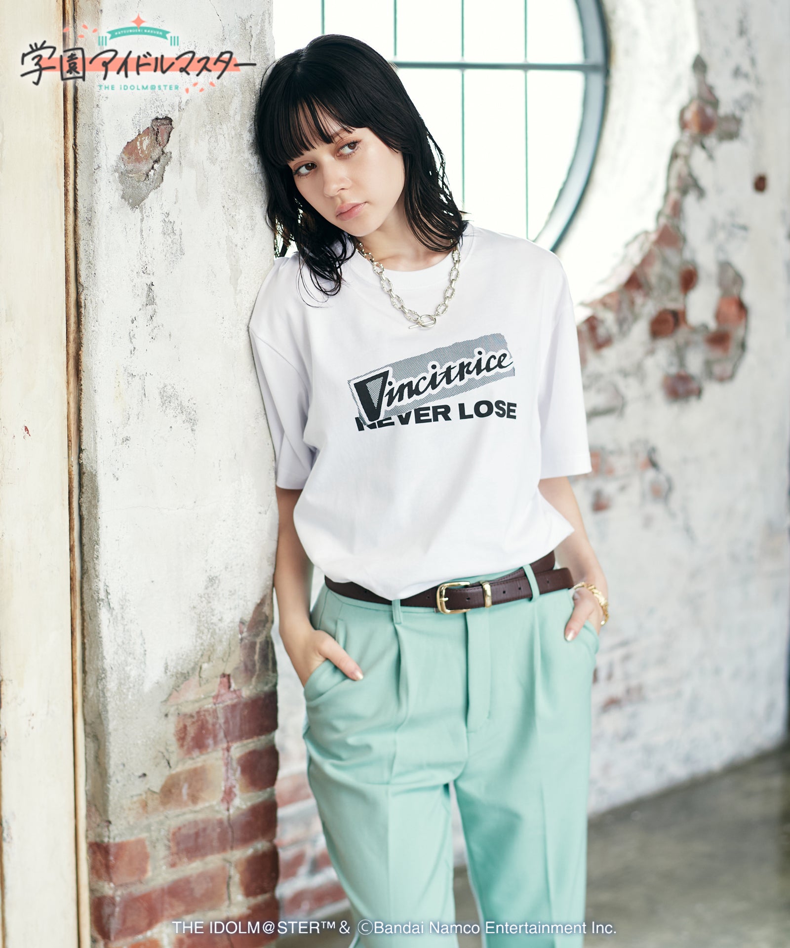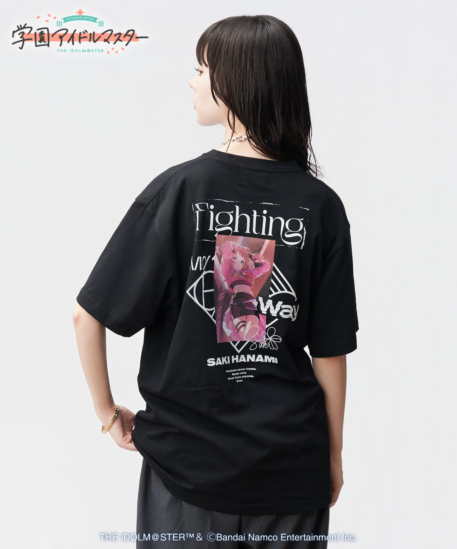 gladgarbと『学園アイドルマスター』がコラボレーション。花海咲季をパンキッシュなコラージュアートに落とし込んだFighting My Way Tee。バックプリントにあしらったのは、第一弾ソロ楽曲『Fighting My Way』をモチーフとしたアートワーク。アシッドグラフィックを思わせる構図に花海咲季と楽曲のエッセンスを散りばめました。フロント胸元には花海咲季のレッスン着に見られるフレーズと、彼女のパーソナリティを表すメッセージをコラージュしてロゴ使い。ストリートのムードを持たせました。テキスタイルはしなやかな肌触りとデイリーユースにふさわしい強度を兼ね備えたコットン100%の40/2天竺。シルエットは着丈を短めに設定したルーズフィットにまとめました。
