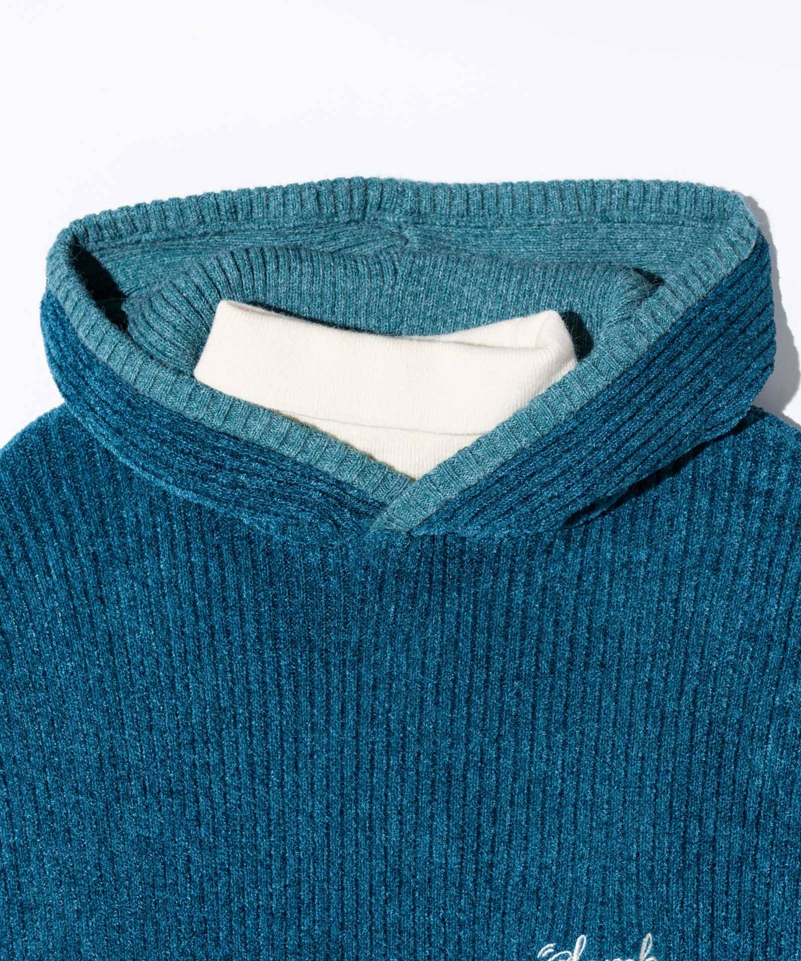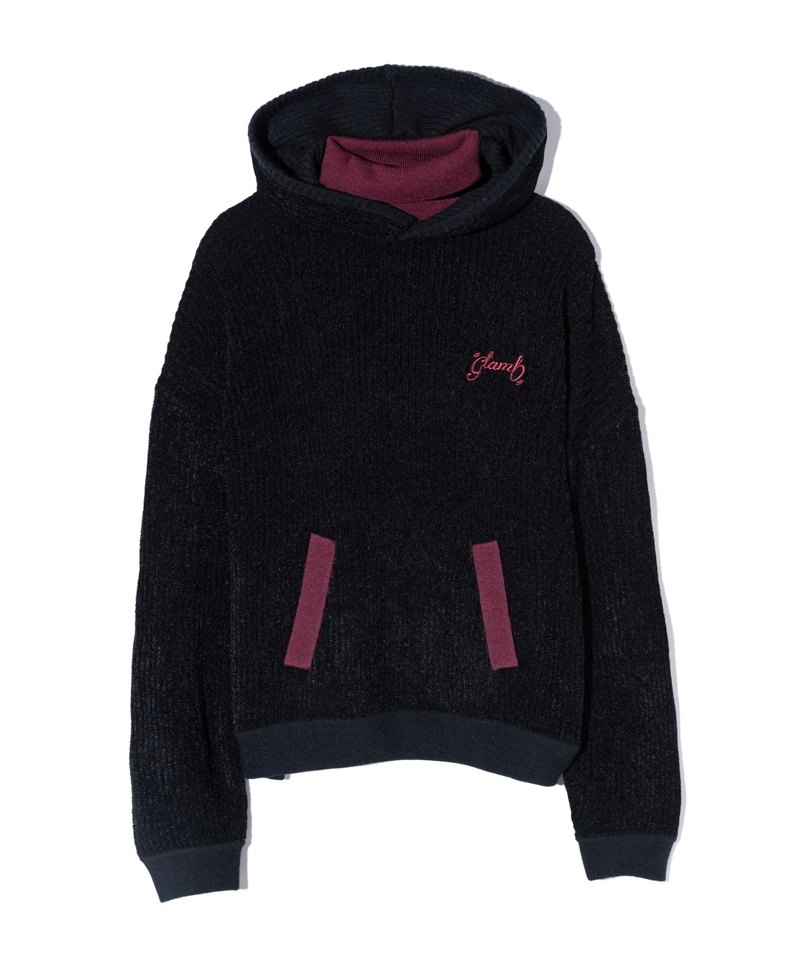 Neck Layered Knit Hoodie / ネックレイヤードニットフーディ