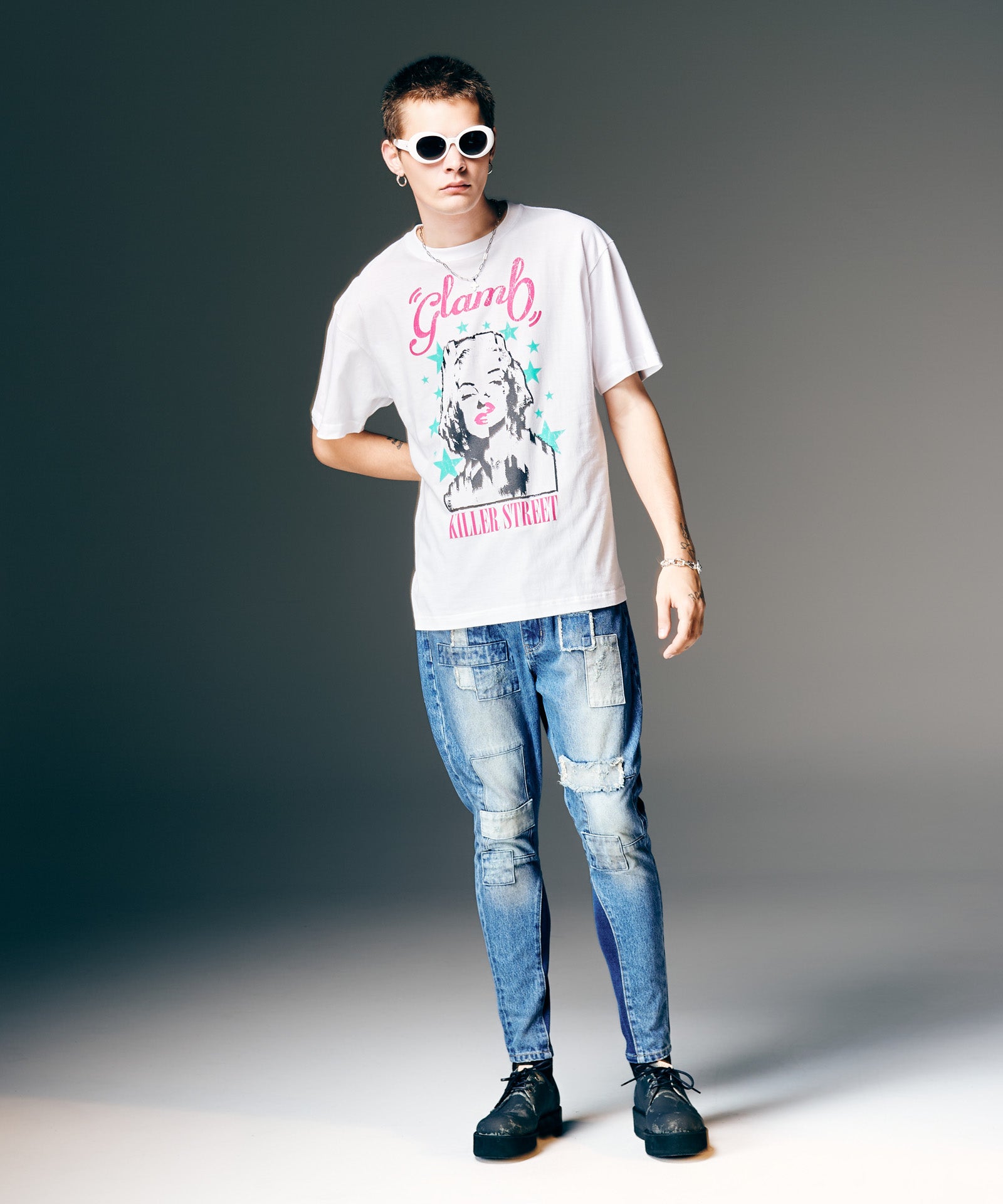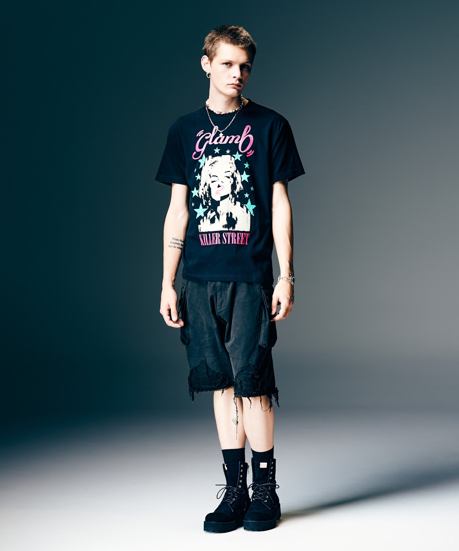 ブランドのオフィスが位置する通りの名前を冠し、スーベニアTシャツのような佇まいとなったKiller Street T-Shirt。フロントプリントはシュレッダーをかけたような表現を加えてスキャンダラスなムードに。クラックのエフェクトも掛け合わせたヴィンテージタッチのグラフィックとなっています。テキスタイルにはコットン100%の5.6オンスヘビーウェイト天竺を使用。デイリーユースに絶好の上質な素材感の1枚はルーズなフィッティングに設定しており、リラックスした着用感でお楽しみいただけます。