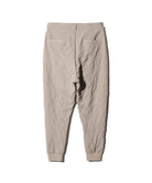 経年変化の表情をデザインに昇華、スラックスをアヴァンギャルドに再解釈したCrinkle Sarrouel Pants。2タックを備えたボディは深めの股上とテーパードを組み合わせてサルエルシルエットに。裾リブもあしらって股上から裾にかけて緩急あるテーパードラインを形作りました。テキスタイルに落とし込んだのは生地段階でキャッチワッシャー加工を施して皺を形状記憶させたライトウェイトのツイル生地。セットアップ展開となるCrinkle Shawl Collar Coatと合わせてコンセプチュアルなスタイリングをお楽しみください。