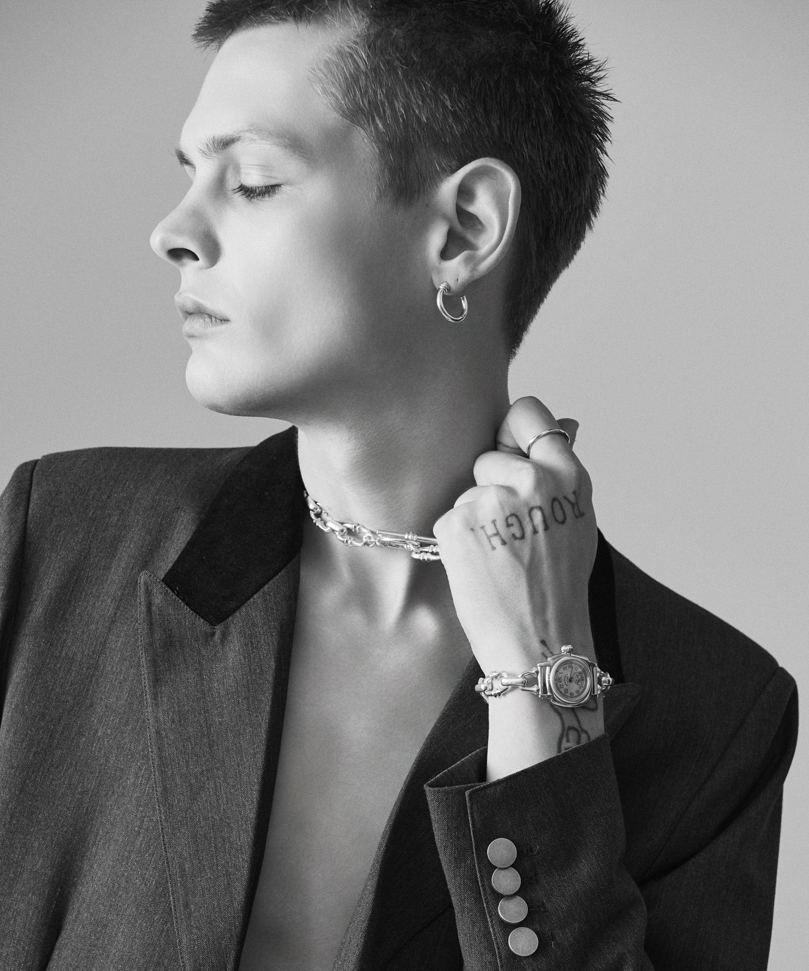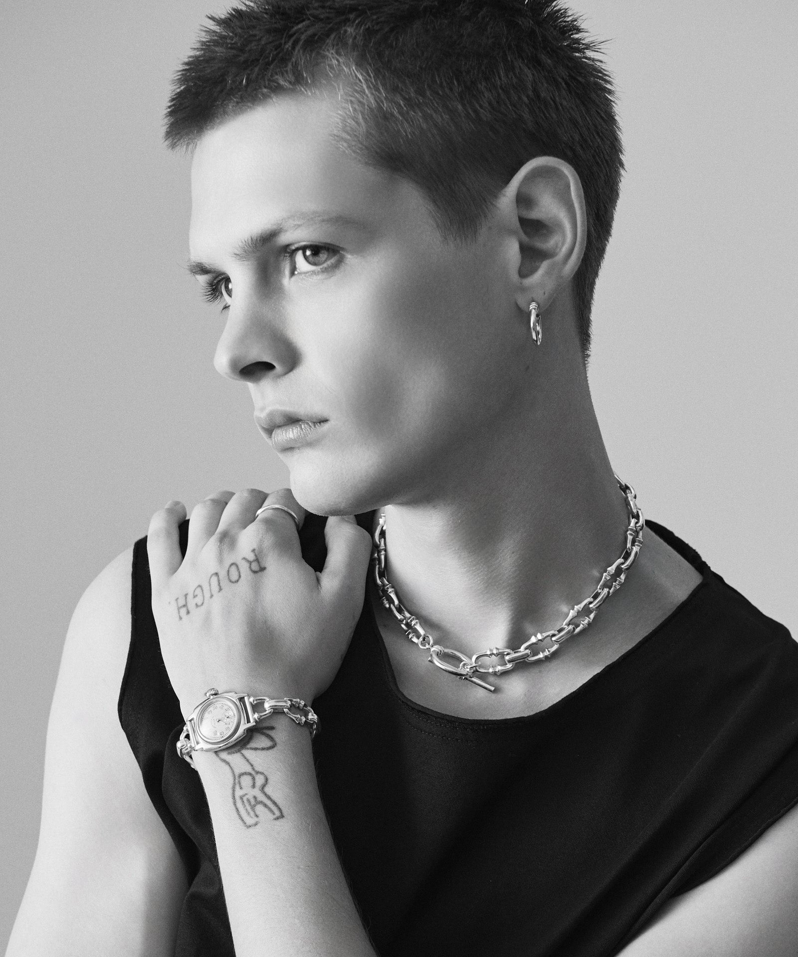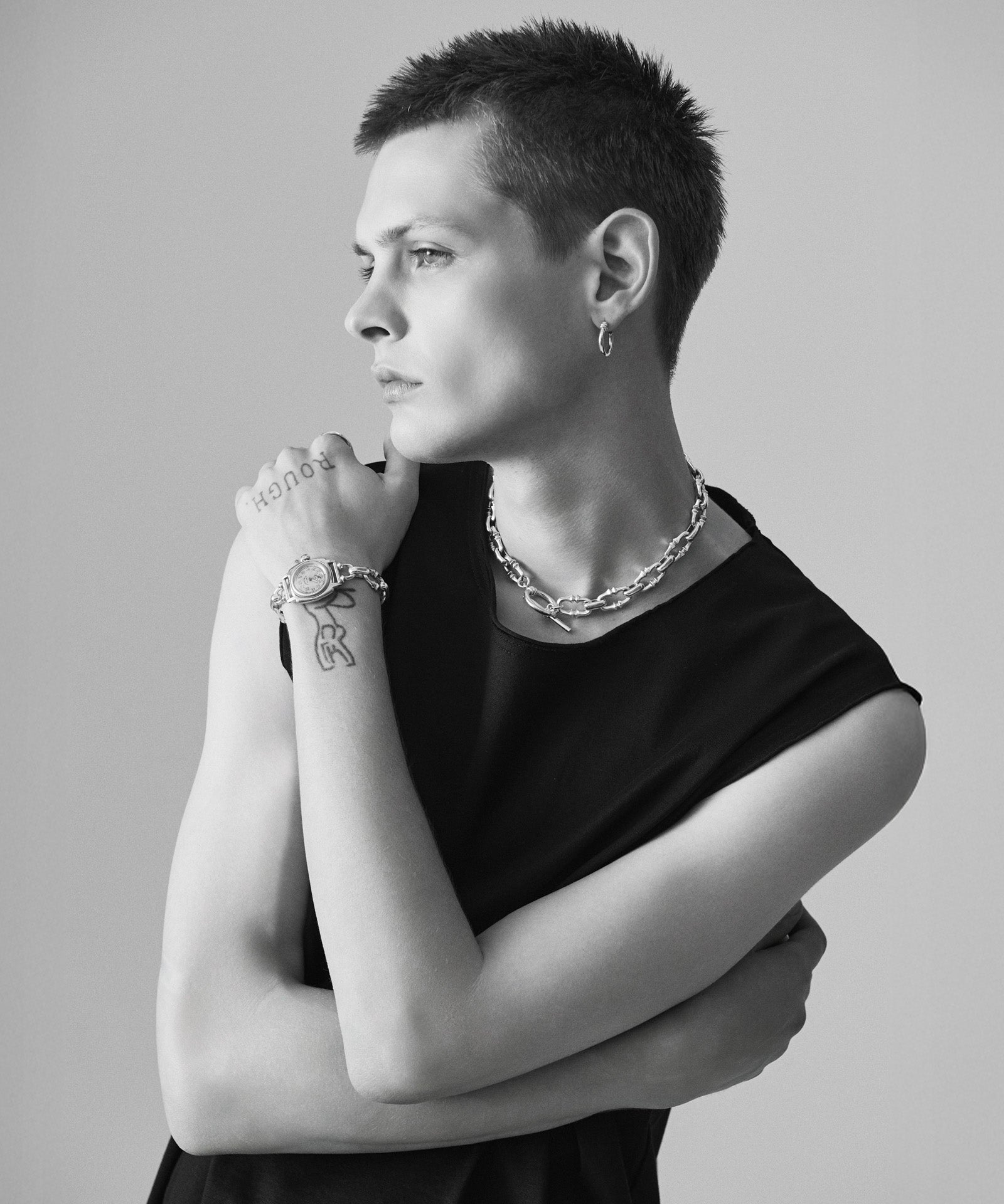 glambジュエリーラインを象徴する“MARO”シリーズのイヤーアクセサリー、MARO Pierce。MAROアイテムのマンテルに使用されるリングパーツをピアスとして落とし込んだリュクスな一品。美しい煌めきとタフな強度を両立するシルバー925を贅沢に用い、シンプルながら耳元に存在感を放ちます。ピアスポストには金属アレルギーを起こしにくいチタン素材を使用。スタイリングや時代・性別問わず長く愛されるようにと思いを込めた珠玉のデザインとなっています。