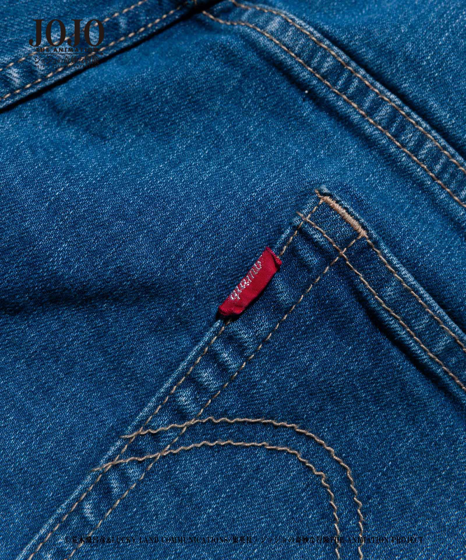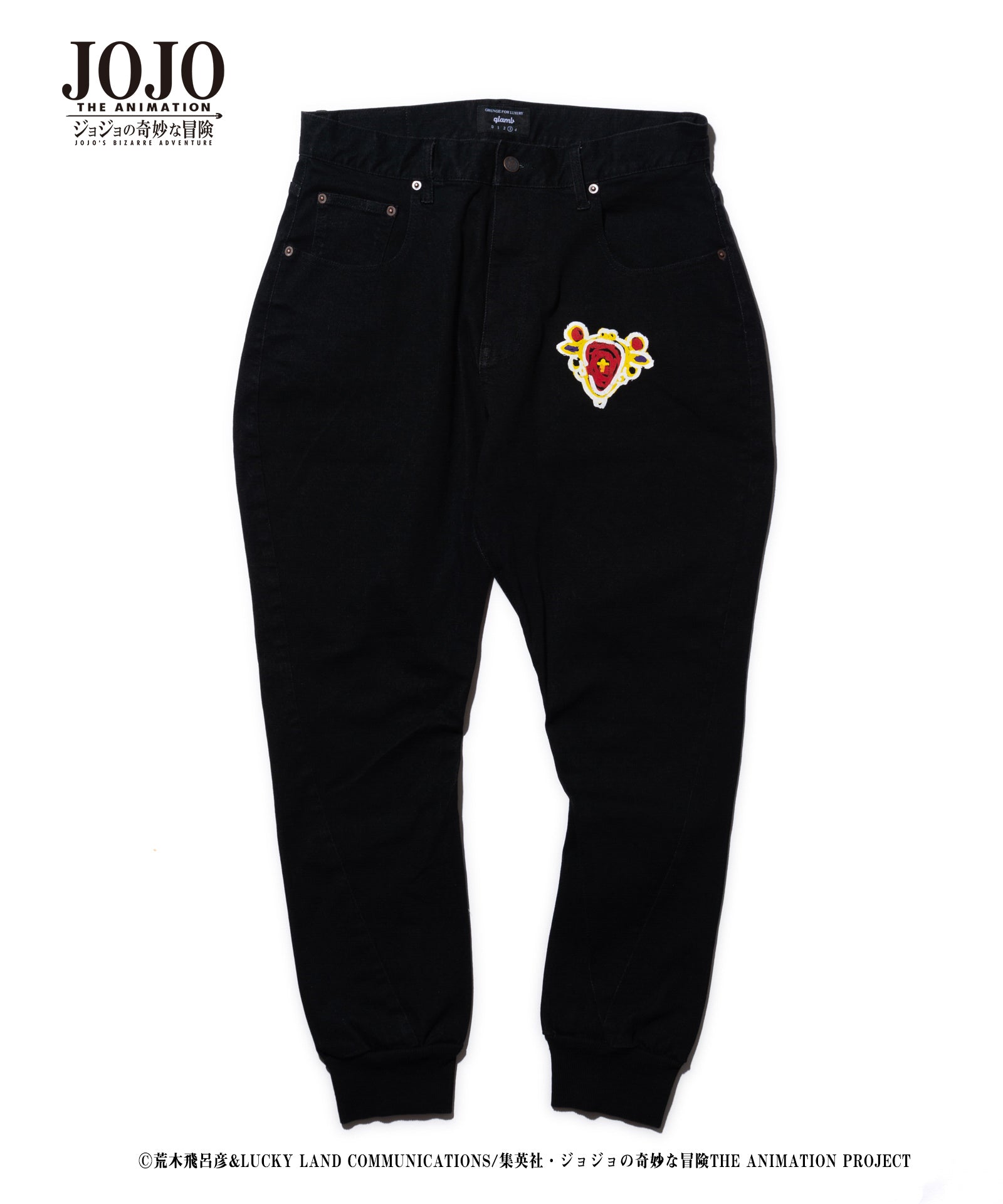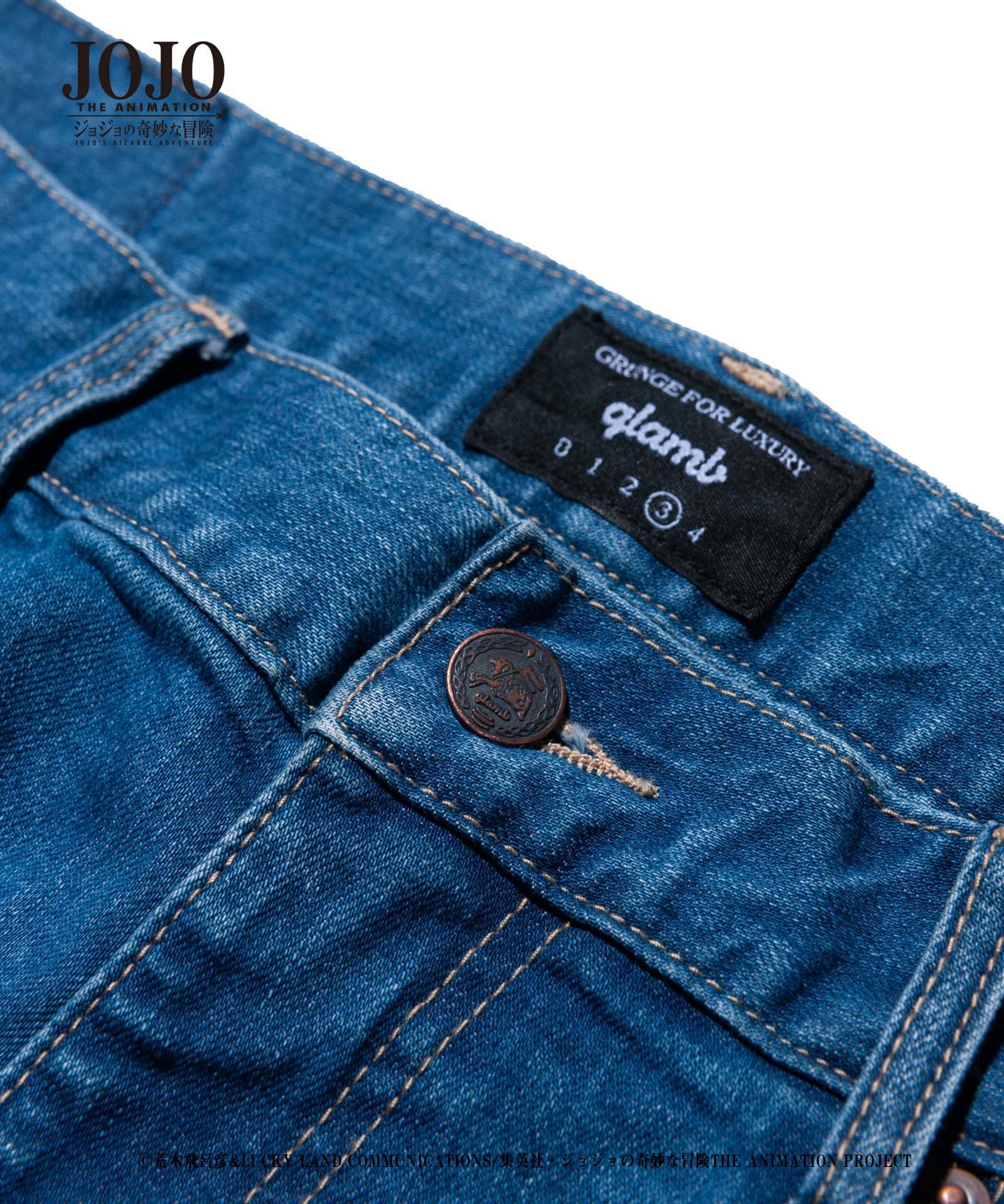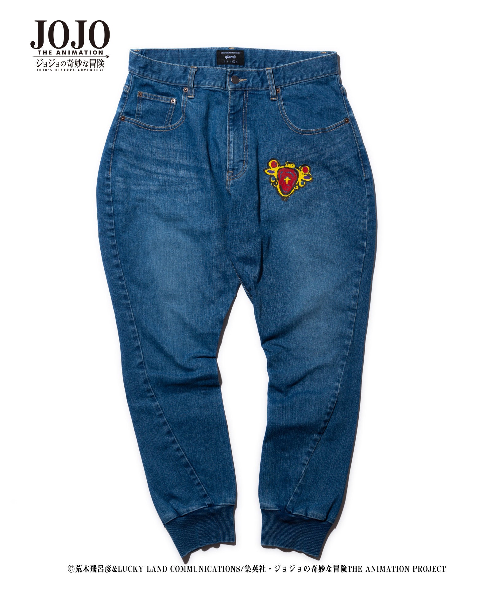 2021年春、glambとTVアニメ『ジョジョの奇妙な冒険』がコラボレーション。『戦闘潮流』に登場する「エイジャの赤石」をアイコニックにあしらったRed Stone jogger denim。