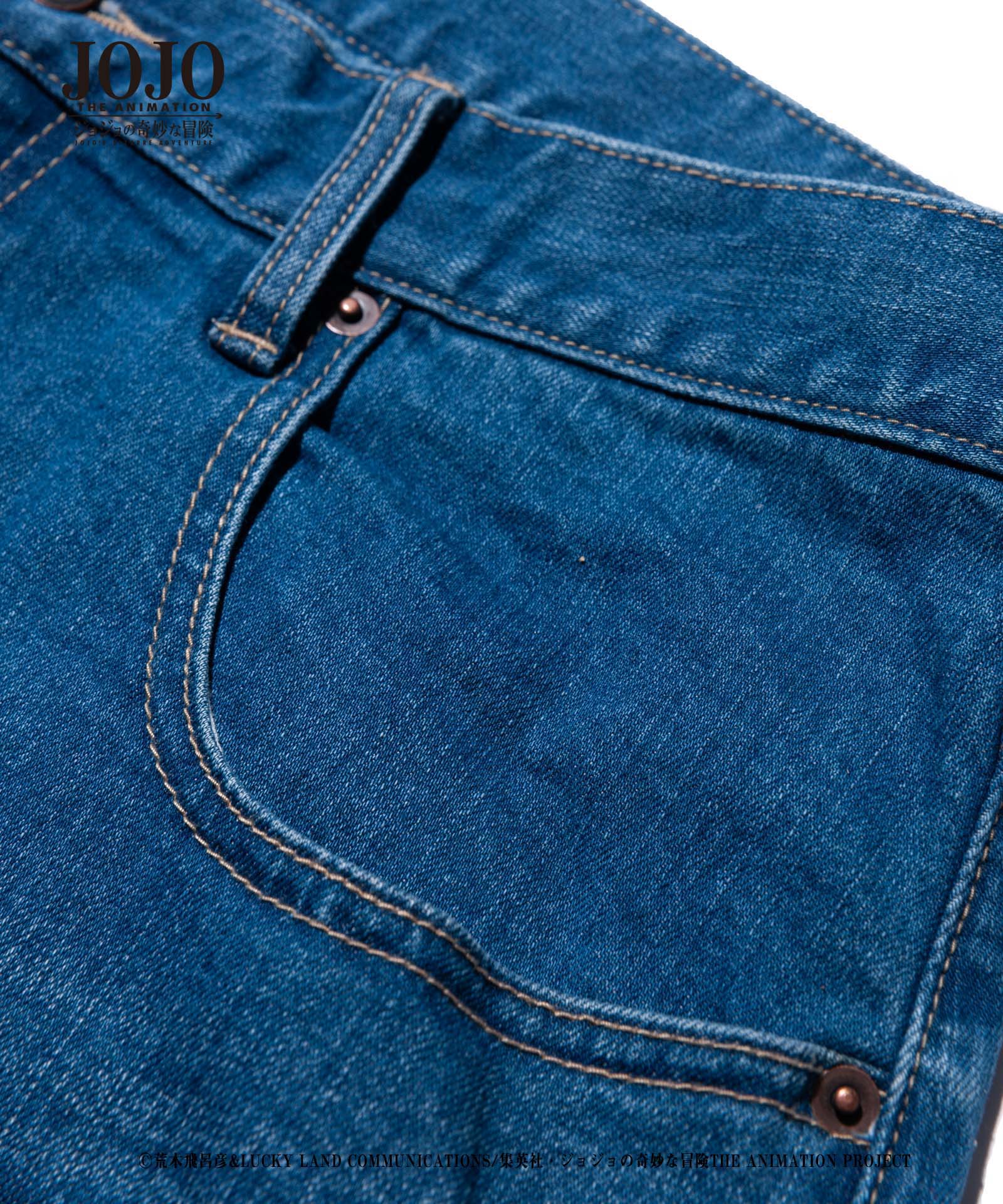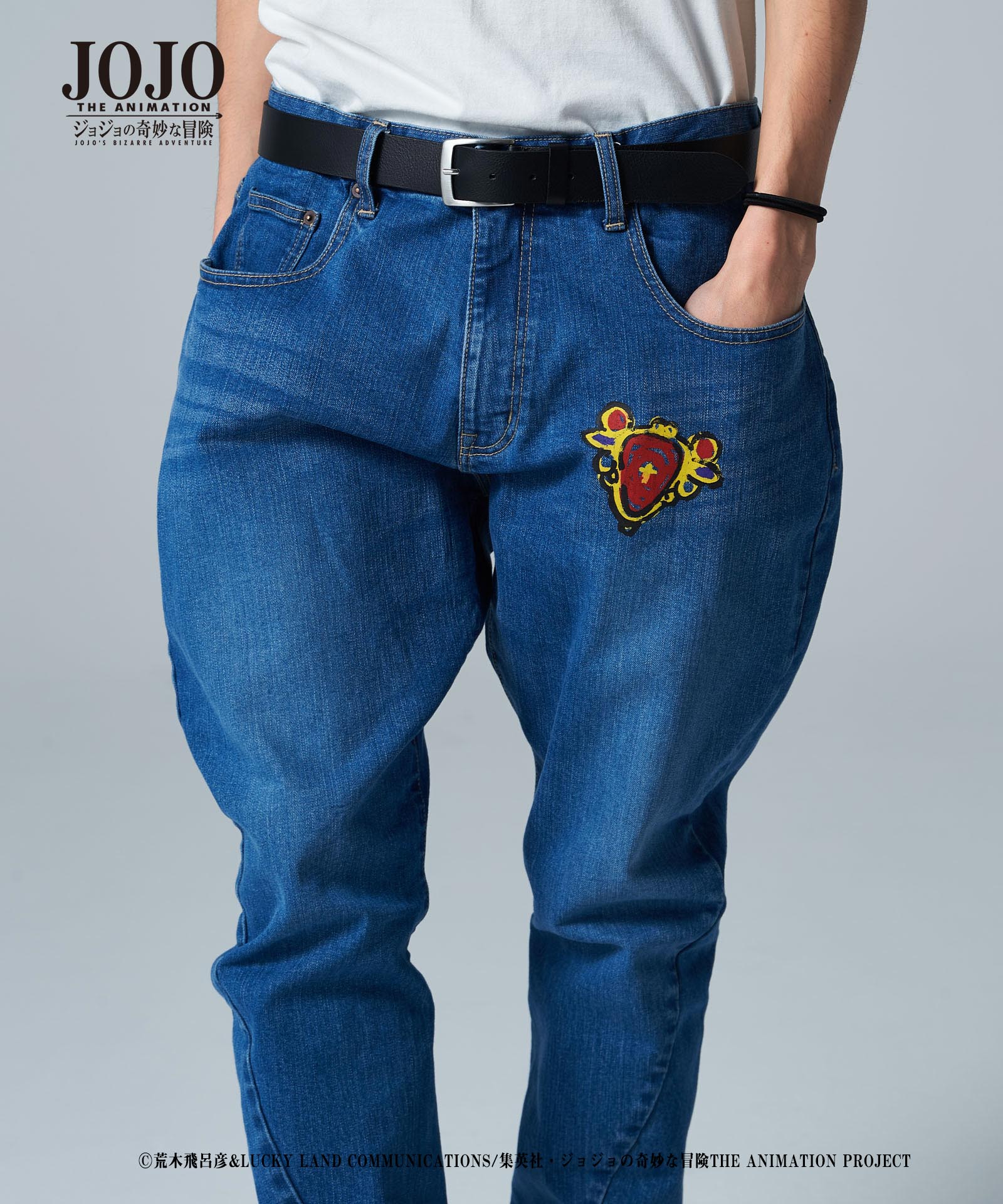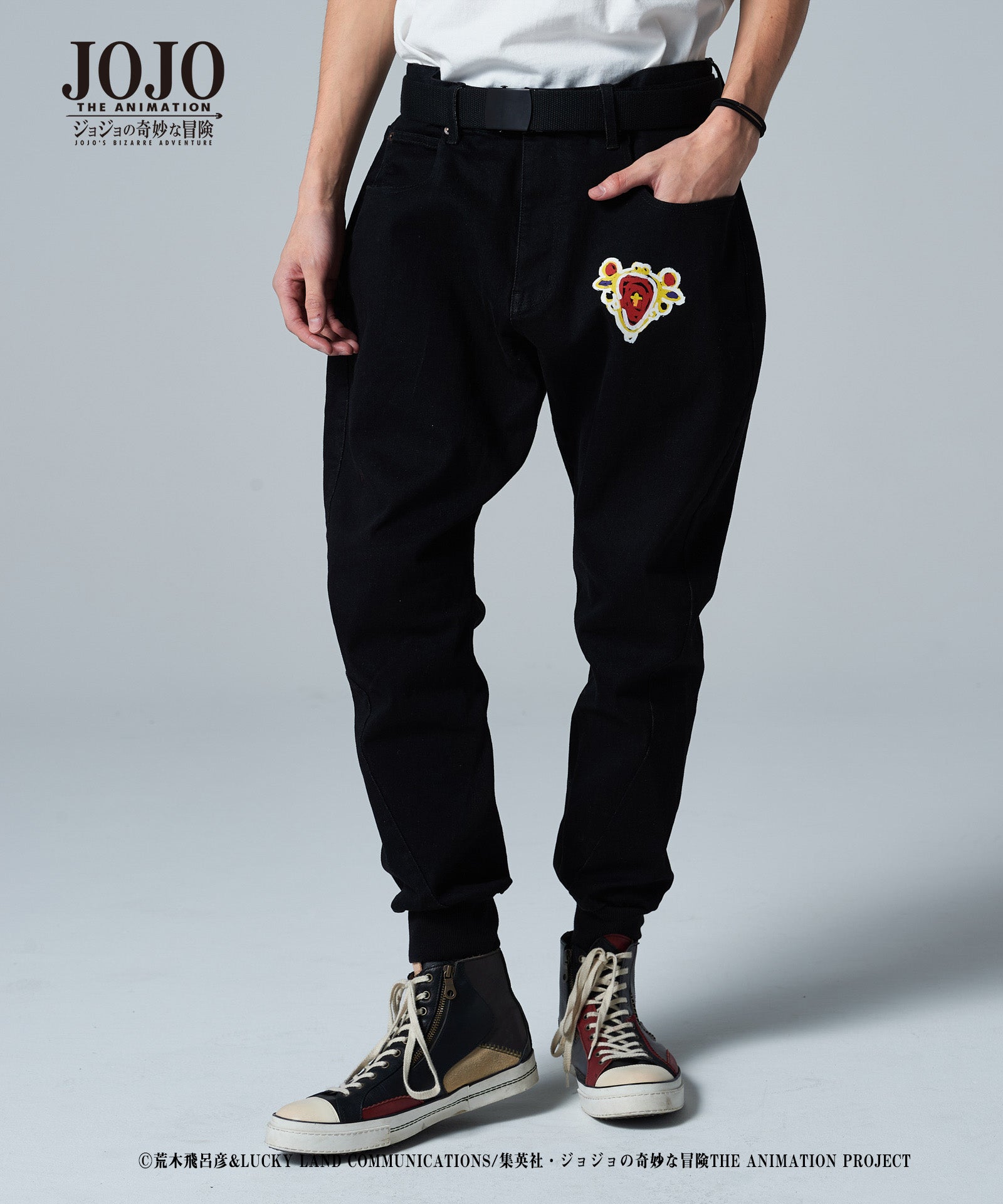 2021年春、glambとTVアニメ『ジョジョの奇妙な冒険』がコラボレーション。『戦闘潮流』に登場する「エイジャの赤石」をアイコニックにあしらったRed Stone jogger denim。