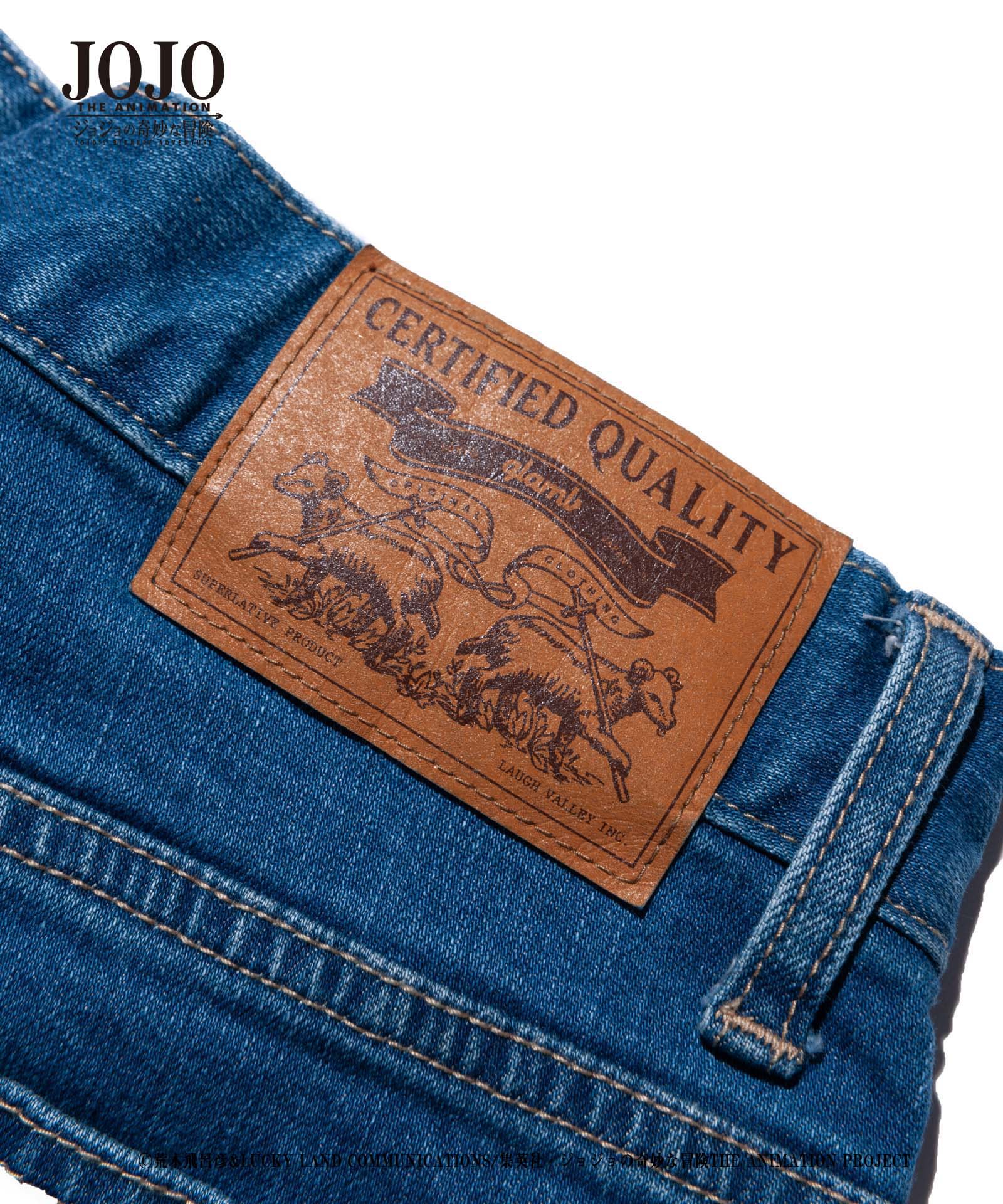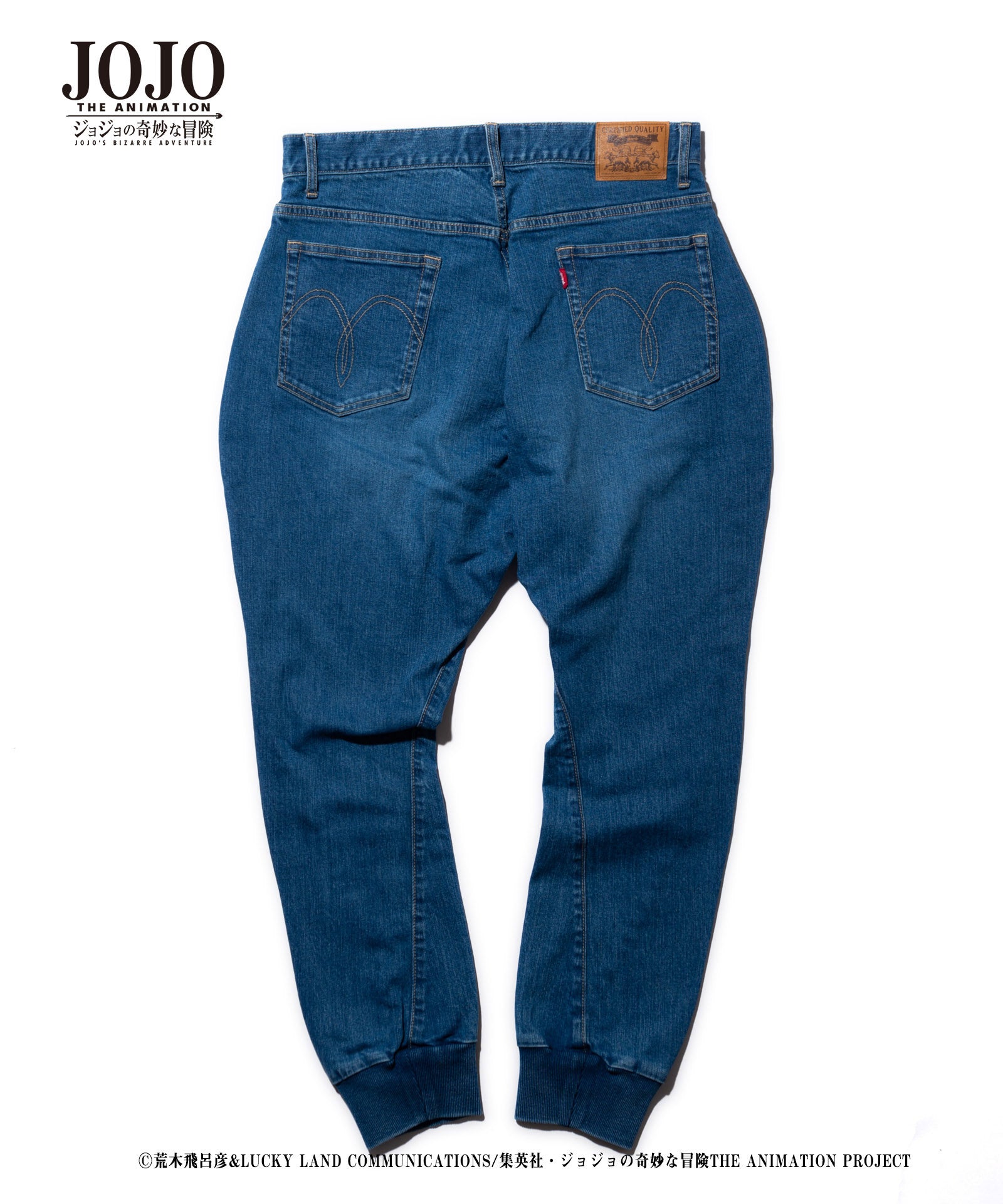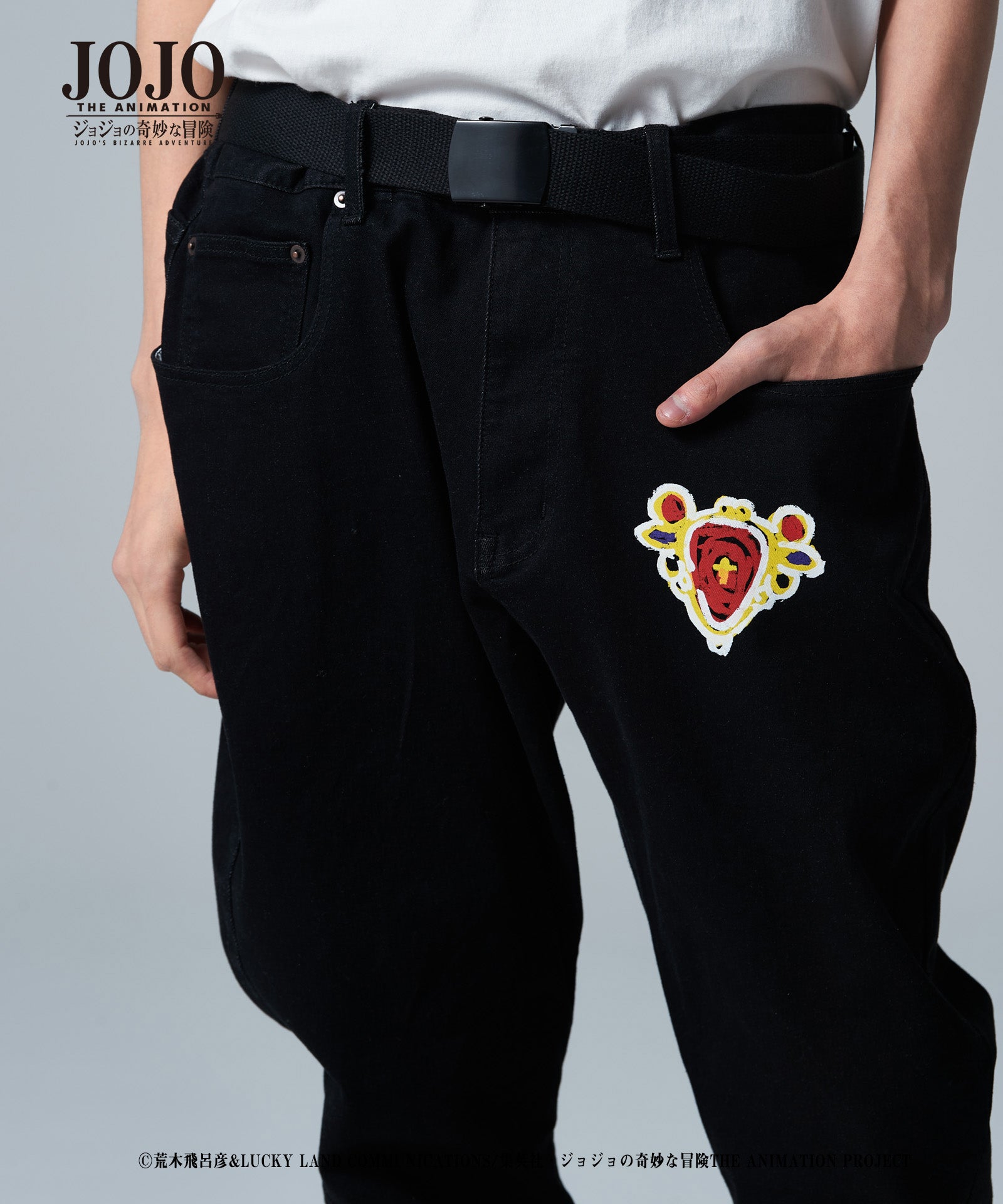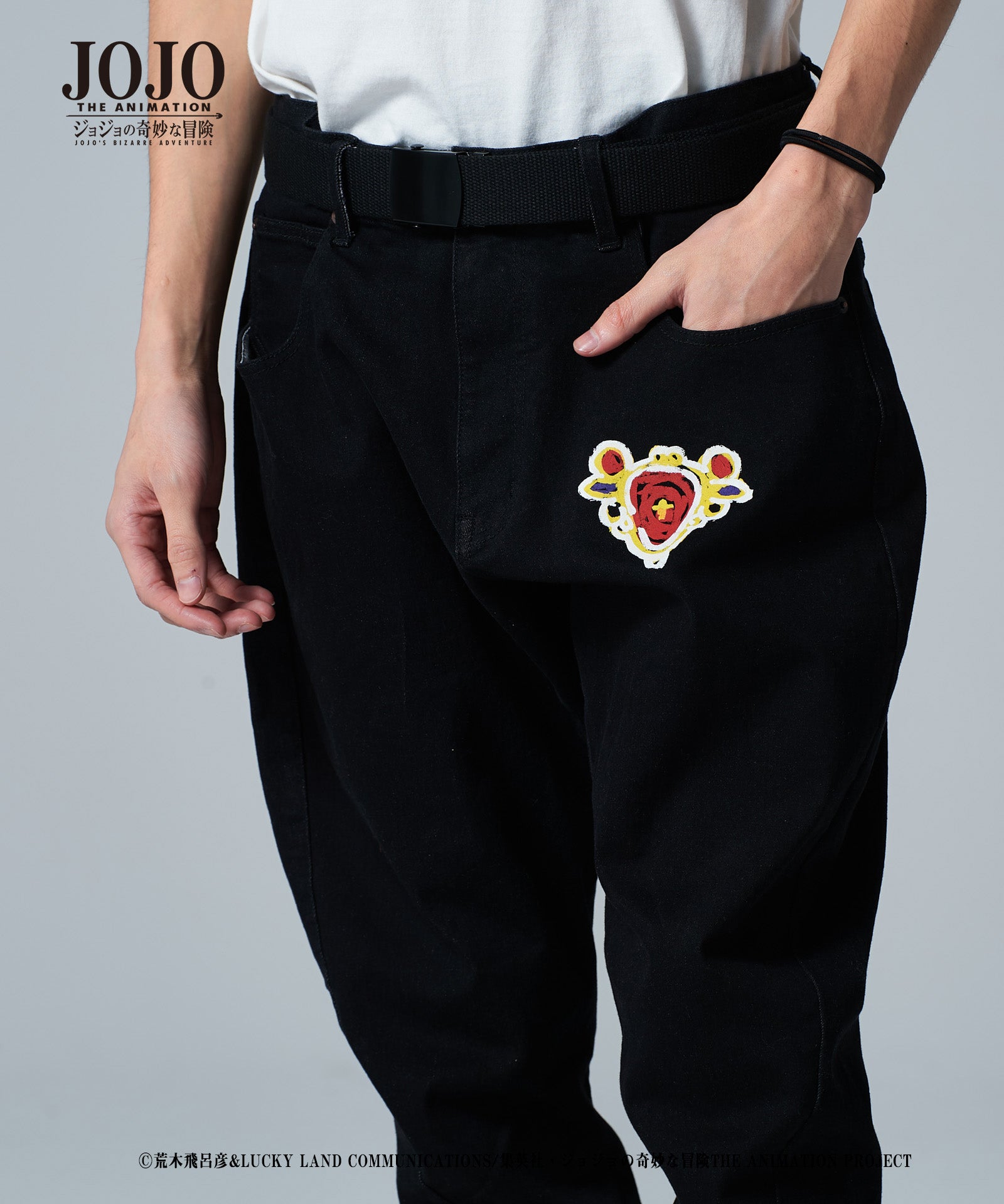 2021年春、glambとTVアニメ『ジョジョの奇妙な冒険』がコラボレーション。『戦闘潮流』に登場する「エイジャの赤石」をアイコニックにあしらったRed Stone jogger denim。