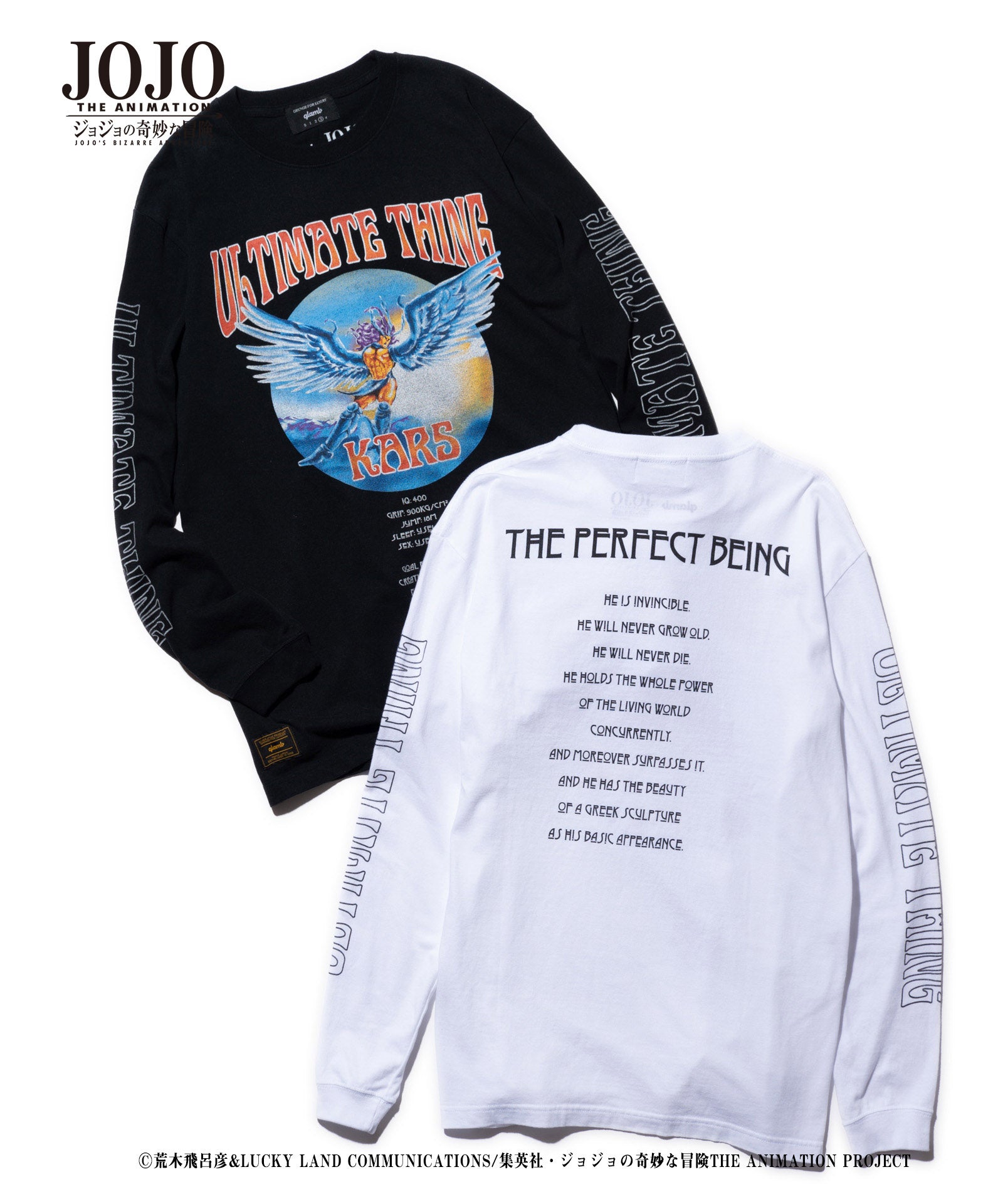 2021年春、glambとTVアニメ『ジョジョの奇妙な冒険』がコラボレーション。『戦闘潮流』に登場する宿敵カーズを、架空のバンドTシャツを思わせる佇まいにまとめたKars long sleeves T。