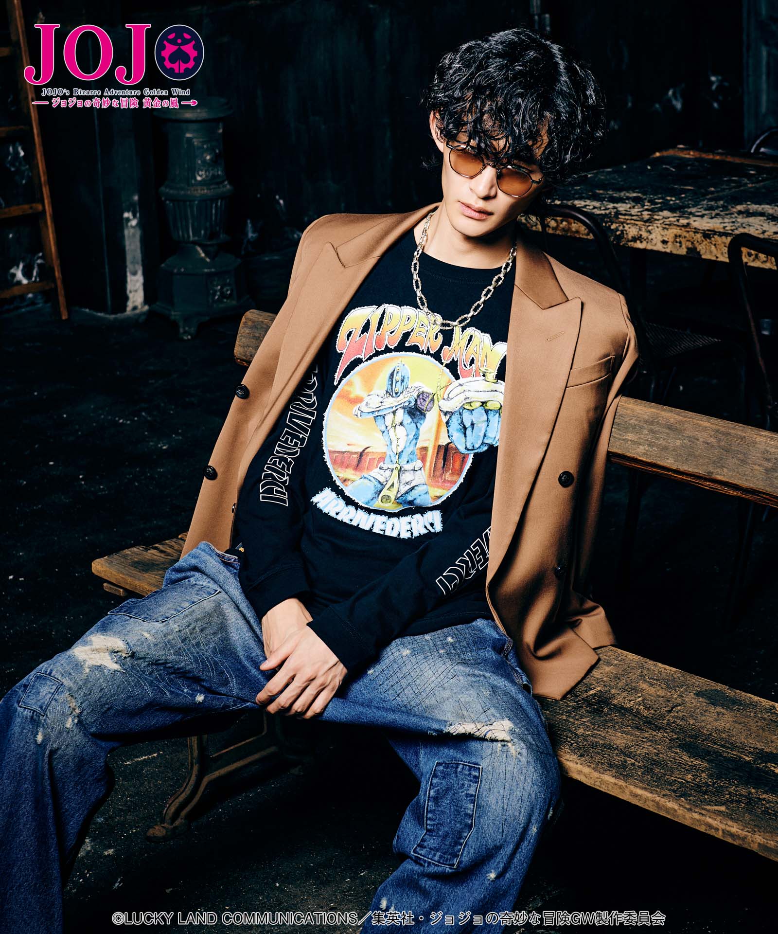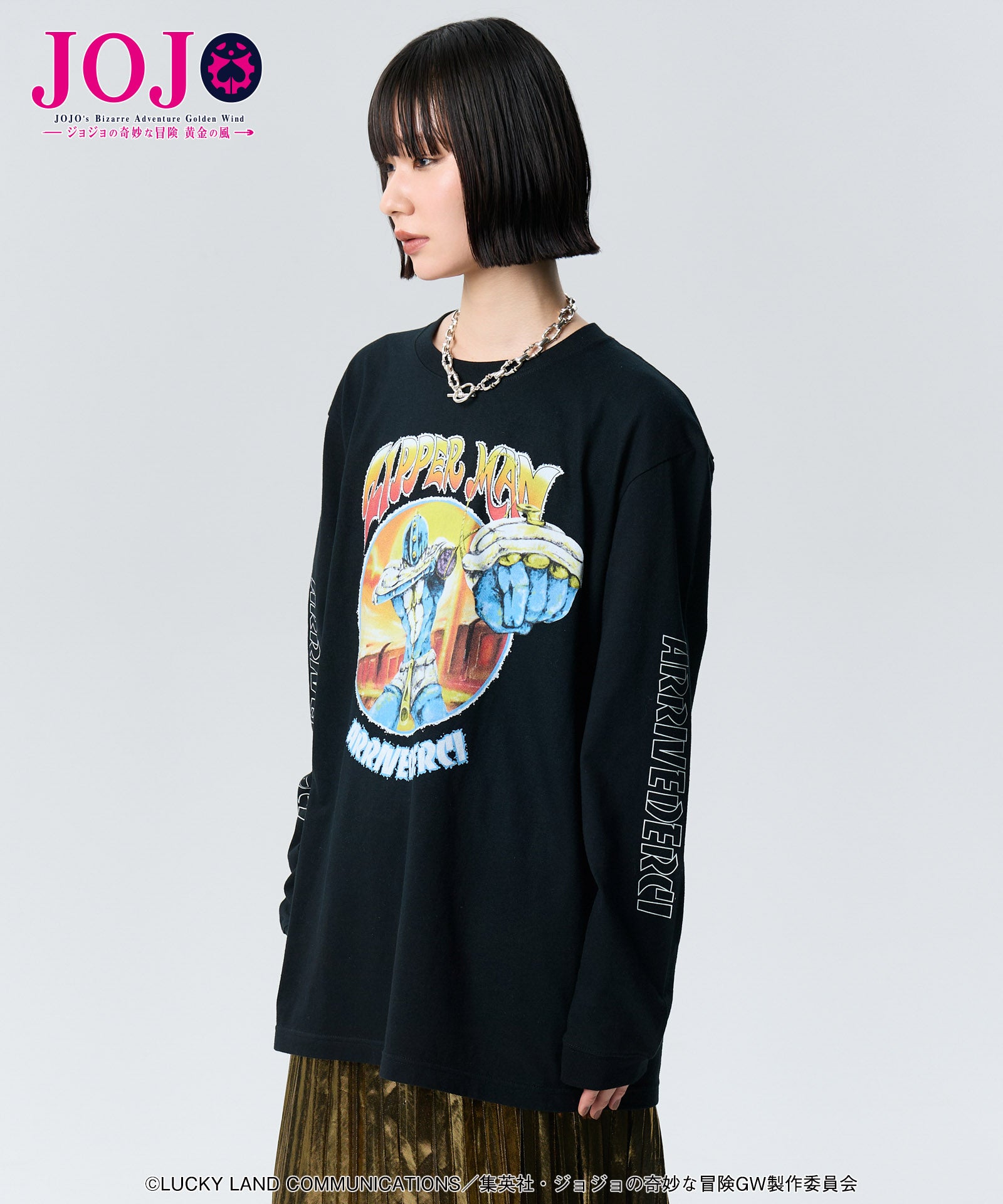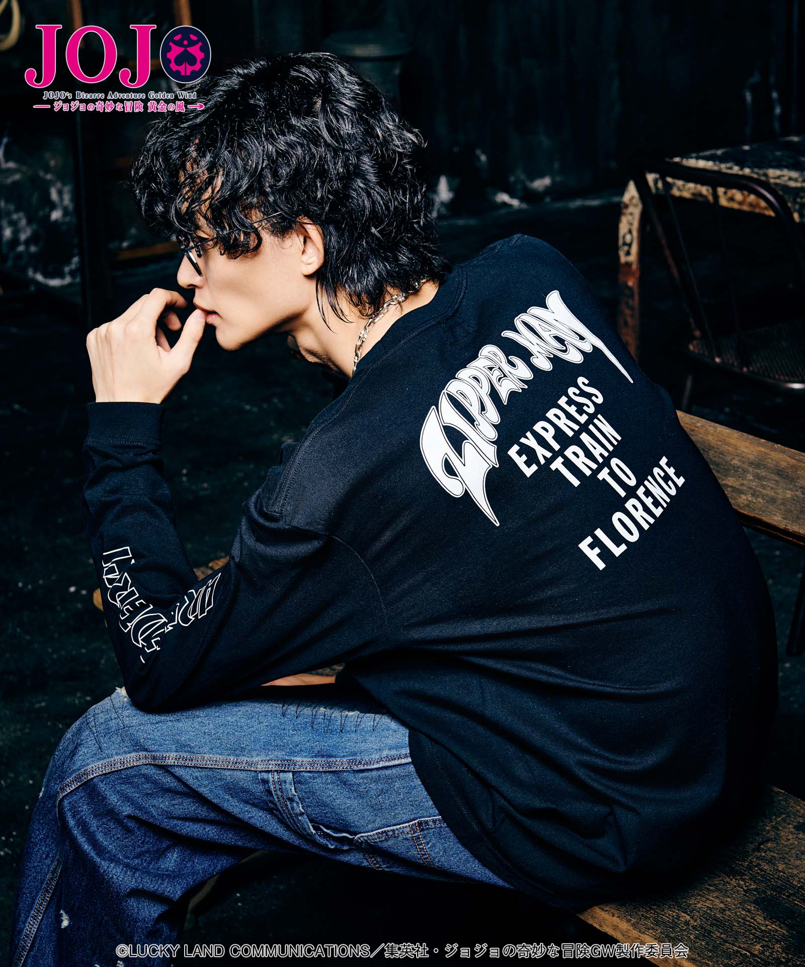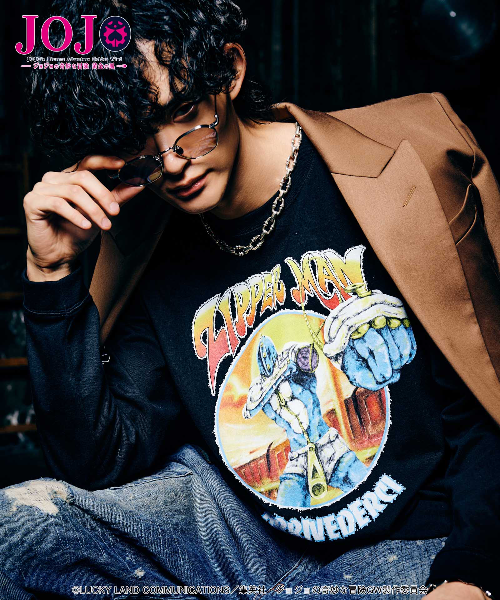 アニメ『ジョジョの奇妙な冒険 黄金の風』とglambがコラボレーション。glambらしいロックへのリスペクトを込めた構図にブチャラティが操るスタンドの戦闘シーンを写し出したBruno Bucciarati’s Stand Cutsew。