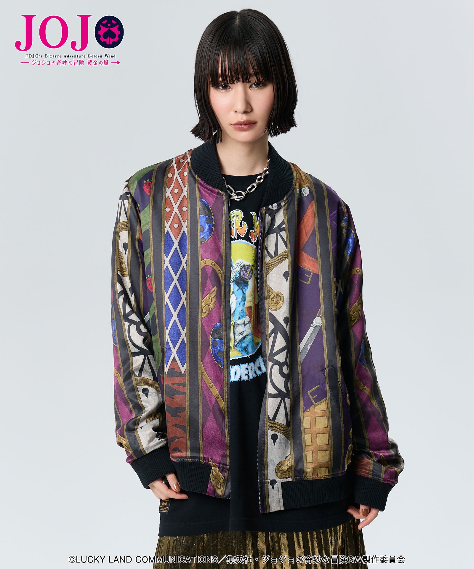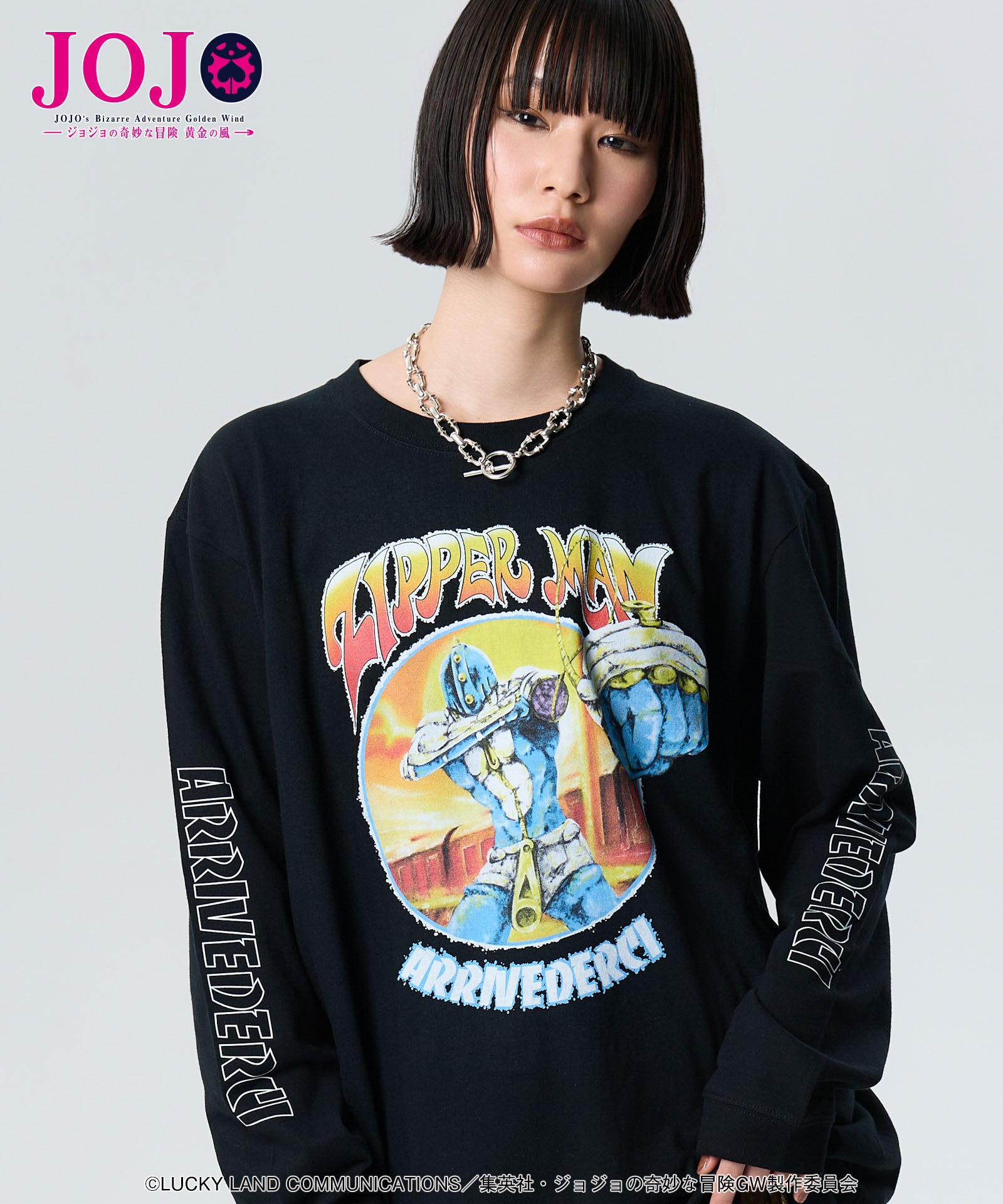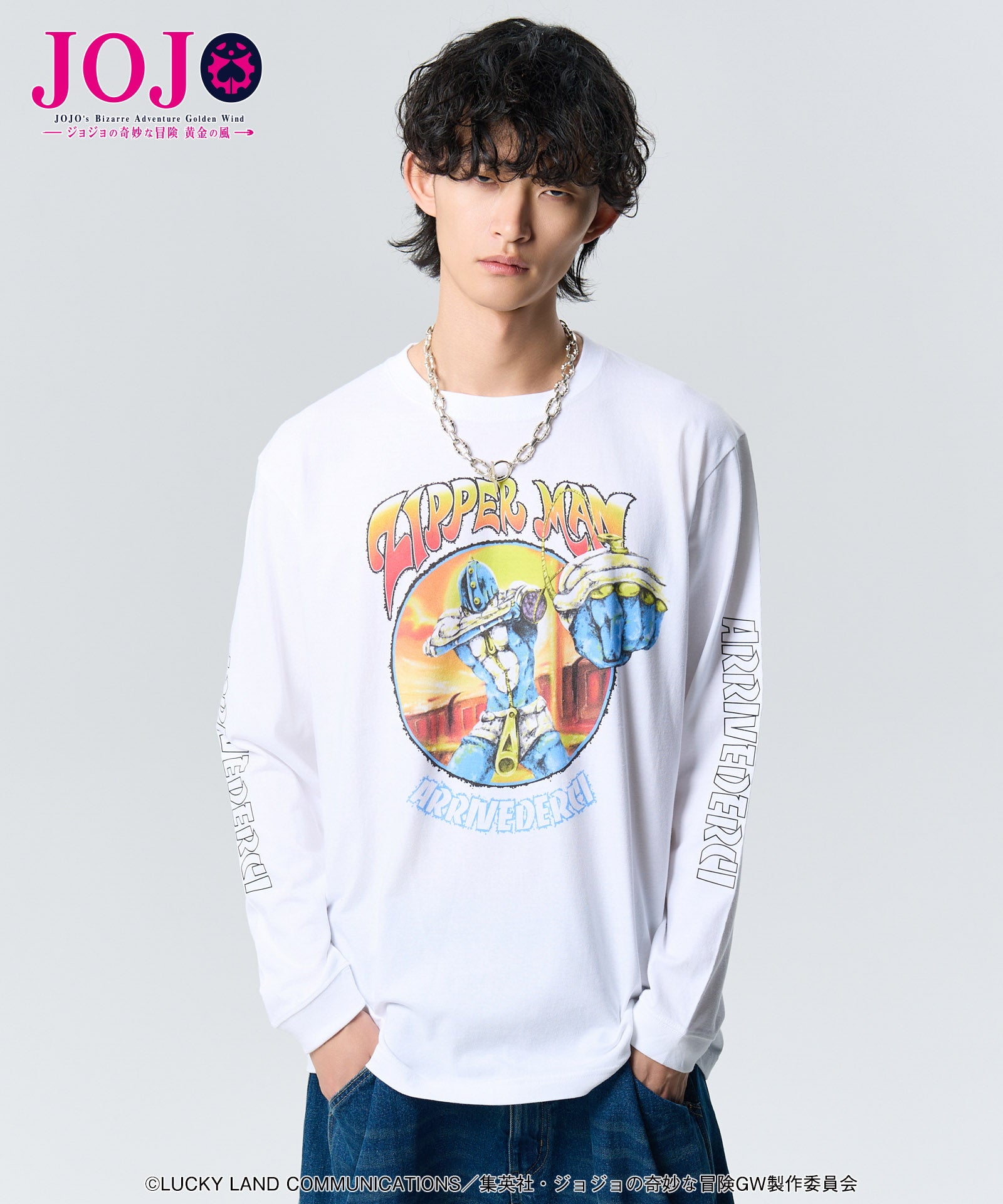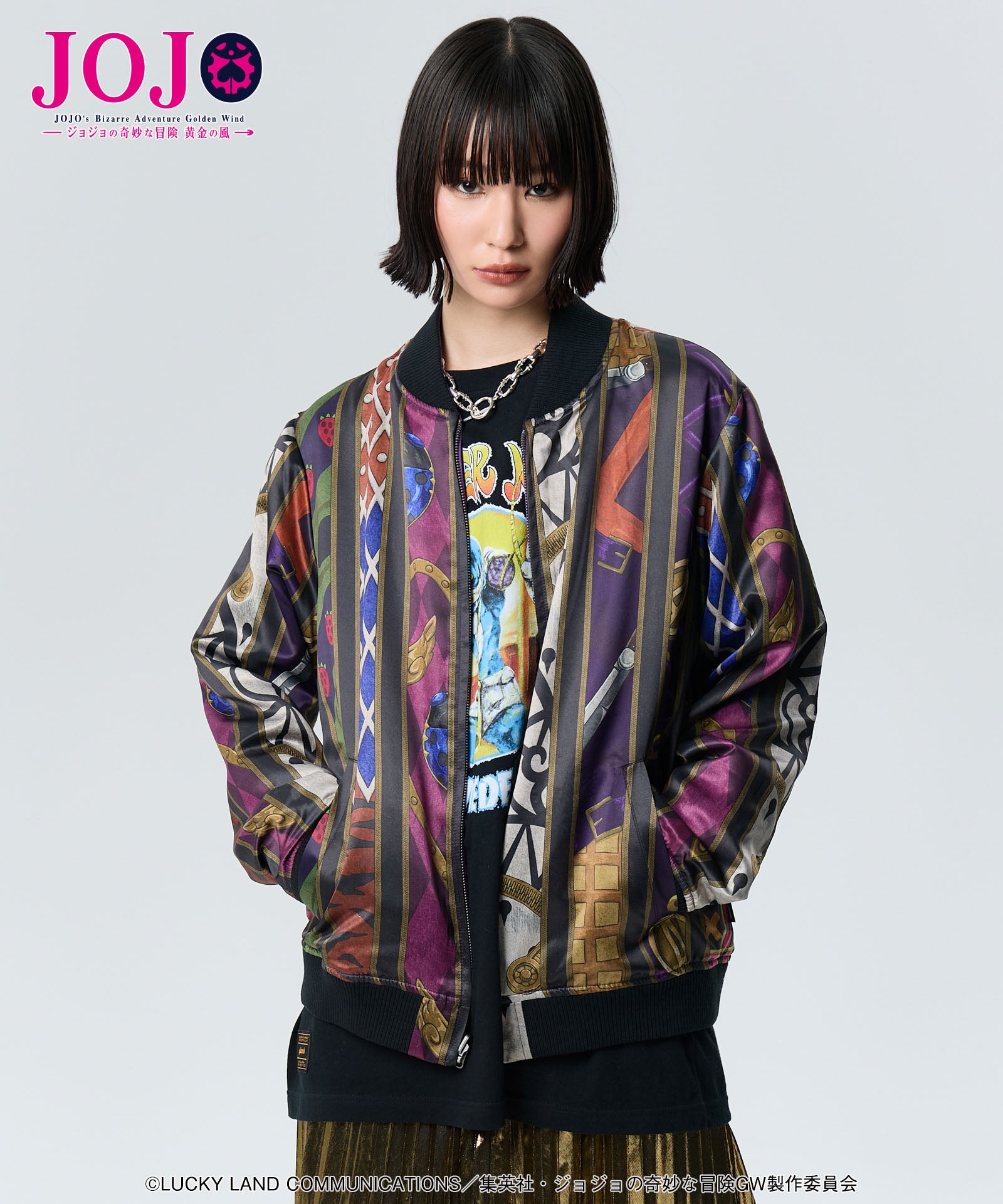 アニメ『ジョジョの奇妙な冒険 黄金の風』とglambがコラボレーション。glambらしいロックへのリスペクトを込めた構図にブチャラティが操るスタンドの戦闘シーンを写し出したBruno Bucciarati’s Stand Cutsew。