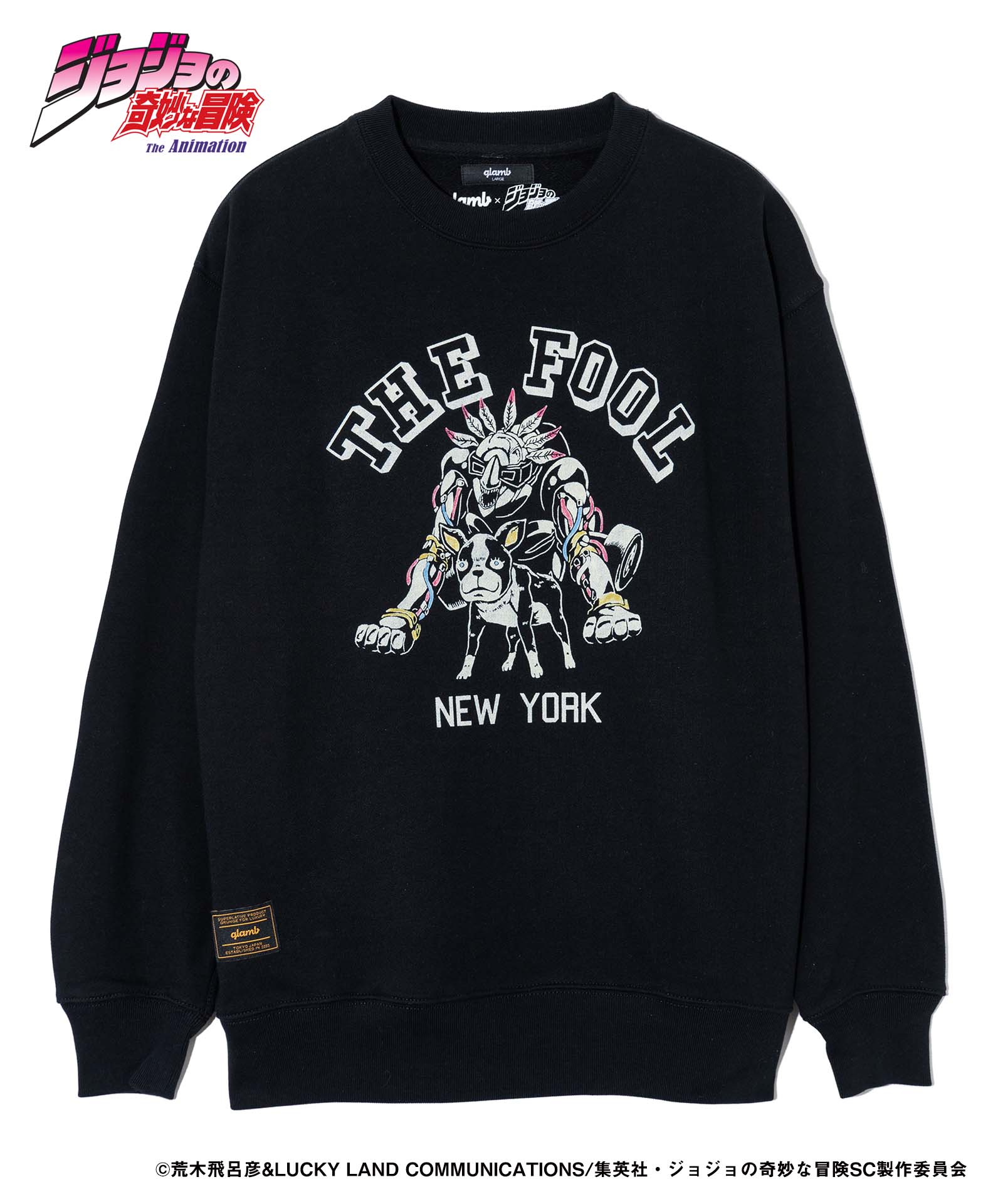 アニメ『ジョジョの奇妙な冒険 スターダストクルセイダース』とglambがコラボレーション。ジョースター一行のマスコット的存在にして頼れる仲間、イギーをオントレンドなスウェットにデザインしたIggy Sweat。