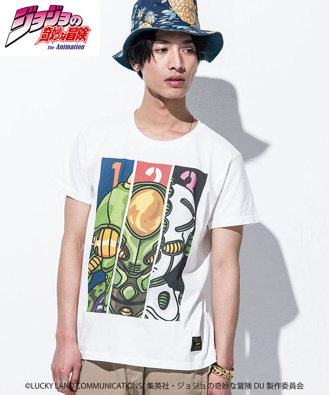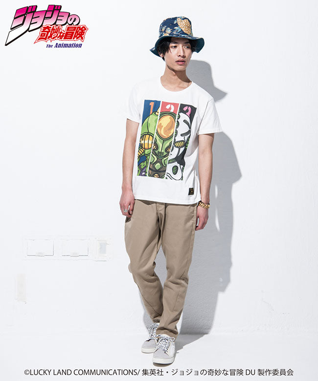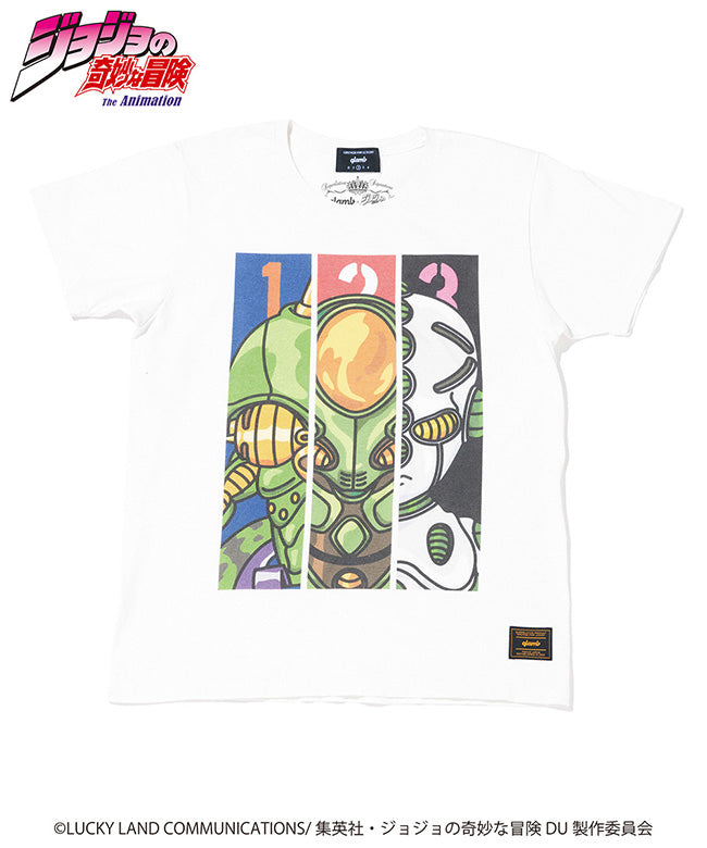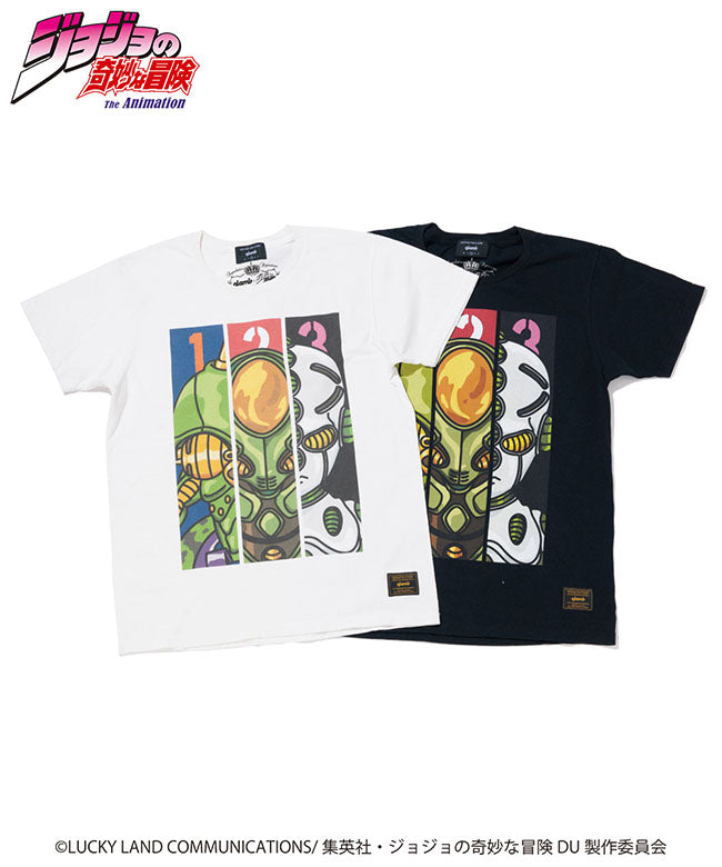 仗助の同級生である広瀬康一と共に成長していくスタンド、エコーズ。米英のイラストレーションに見られるボールドな輪郭線をアクセントにしてフレンドリーに表現。ポップアートの要素を取り入れた明快な色使いも、キャラクターの個性を生かすための演出となっています。
