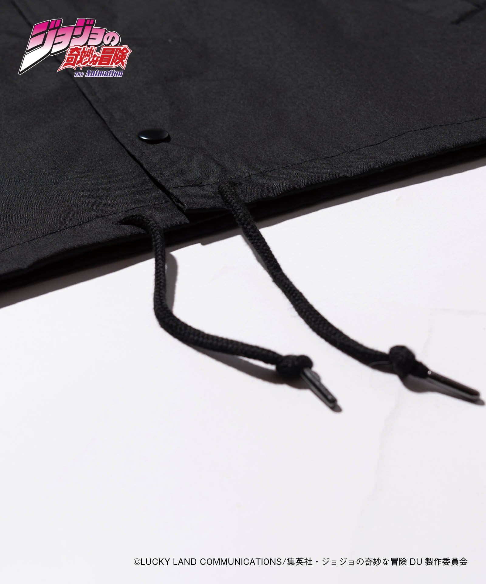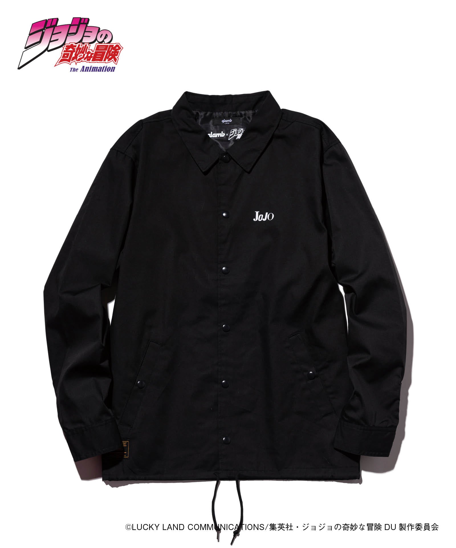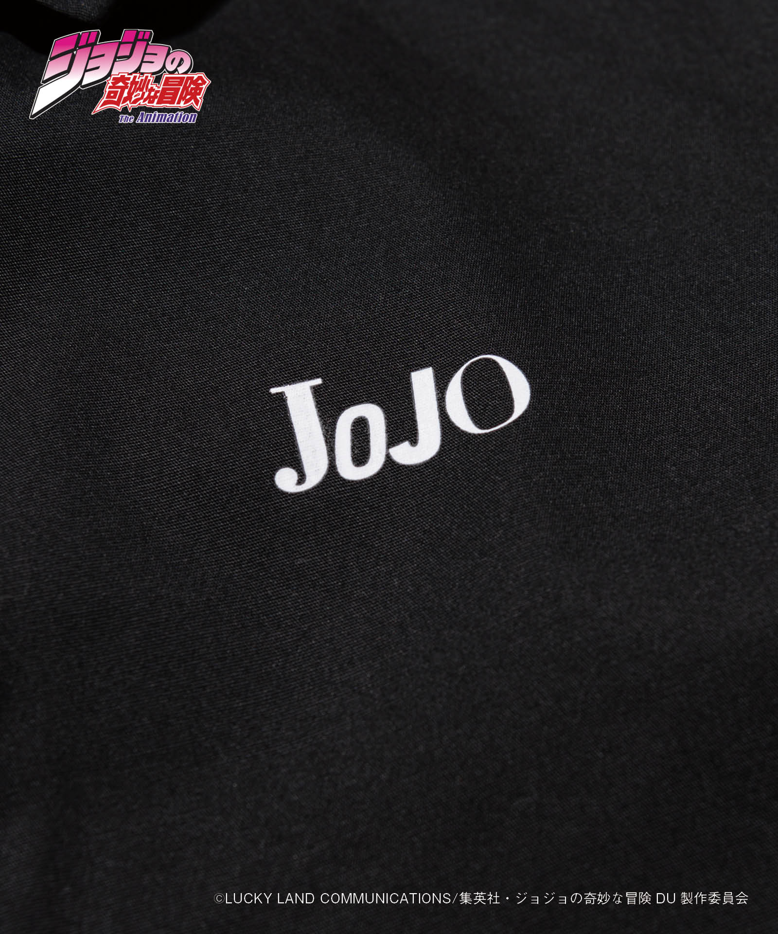 glambとTVアニメ『ジョジョの奇妙な冒険 ダイヤモンドは砕けない』とのコラボレーション再び。劇中のクライマックスのワンシーンをレトロスタイルのブルゾンに閉じ込めたStar Platinum Coach JKT。バックスタイルに描かれたのは今まさに時を止める能力を発動する空条承太郎のスタンド『スタープラチナ』。激しい筆致のペイントとタイポグラフィを組み合わせたアヴァンギャルドなコラージュアートでドラマチックに描きました。一転してシンプルなフロントでも胸元の「JOJO」ロゴを一文字ごとに書体を変えたコラージュで表現。ブランドのこだわりを隅々まで込めた一着となっています。シルエットはスタイルやトレンドにとらわれず長くお楽しみいただけるレギュラーフィット。素材にはポリエステルの耐久性とコットンの快適さを兼ね備えたT/Cウェザーを使用しています。