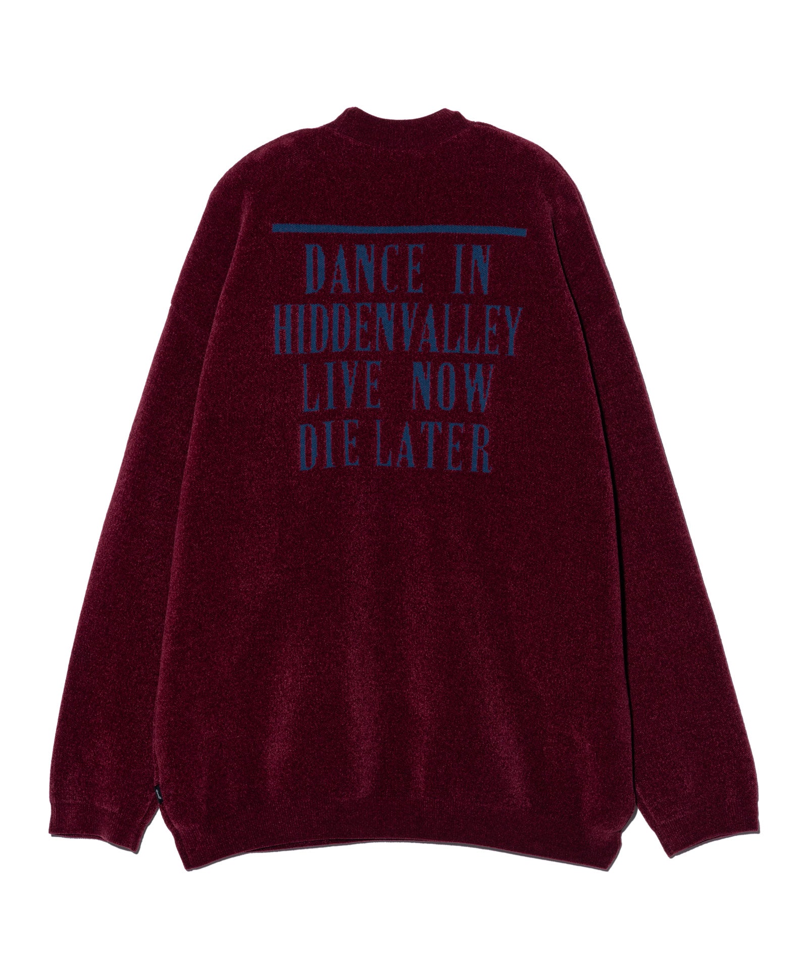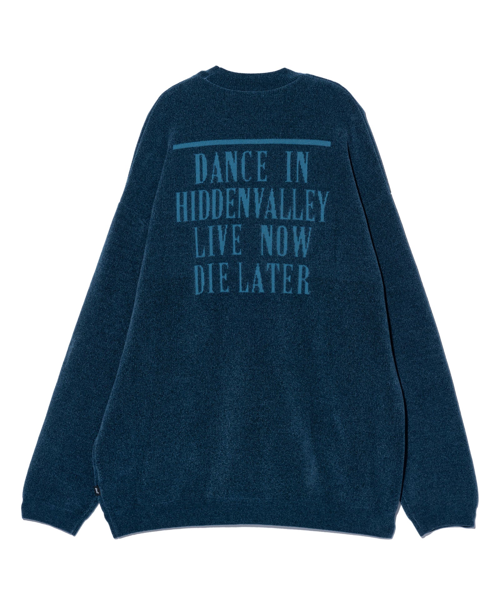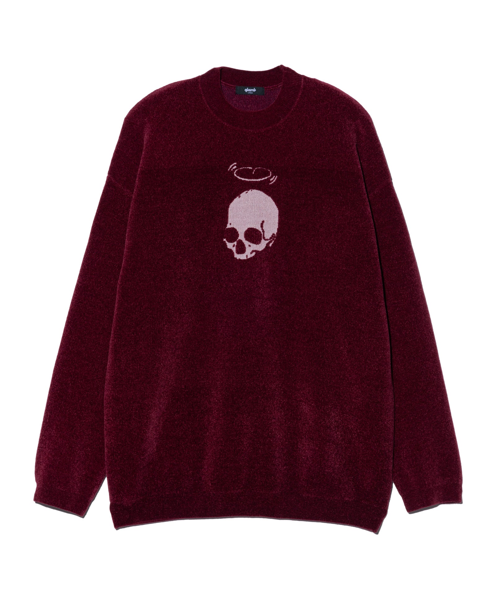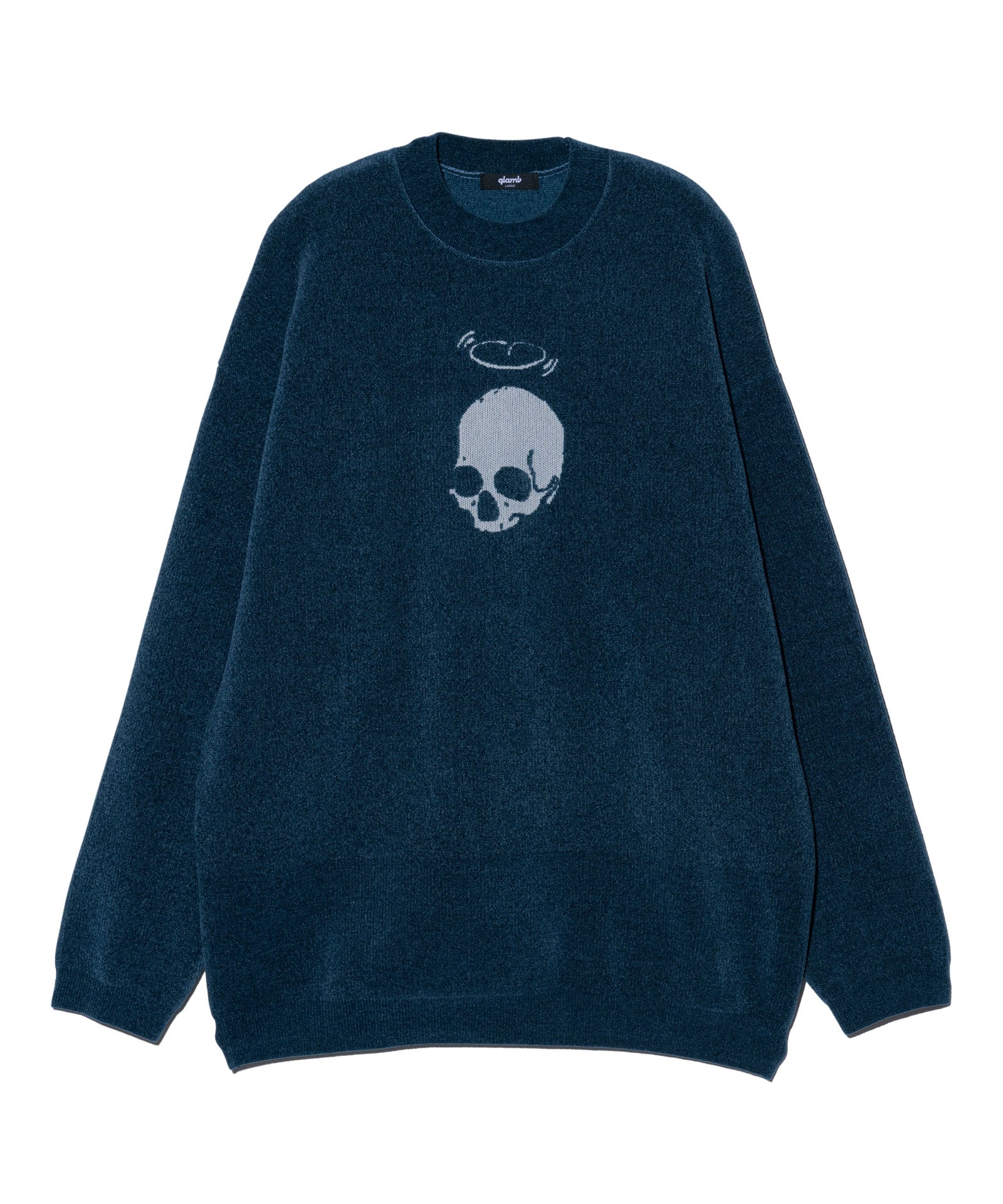 ベーシックなプルオーバーニットにロックマインド溢れるワンポイント柄をあしらったSkull Molle Knit。程良く肉厚で弾性を備えたモール糸のボディに、アイコニックなスカルをあしらったこちら。柄自体はコンパクトながら異素材使いの奥行きが存在感を強調、エッジィでありながら落ち着いたバランスでご着用いただけます。バックスタイルにあしらわれた今季のテーマとブランド定番のメッセージも前身頃と同様の技法を用いたもの。ボディはドロップショルダーとゆるめの身幅を組み合わせたルーズシルエットとなっています。
