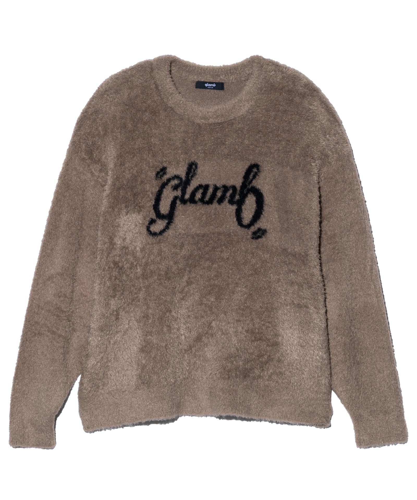 プレーンなロゴニットをアニマルライクなマテリアルによってロックに提案するSpin Logo Shaggy Knit。ファーのような毛足を備えたテキスタイルはナイロンのシャギー糸を天竺編みした後、起毛加工によって仕上げたもの。胸元のglambスピンロゴはインターシャによって、身頃の柔らかなテクスチャとコントラストを付けてあしらっています。ボディはゆとりある身幅にコンパクトな着丈を組みわせたボックスシルエット。70’sライクな輪郭はワイドパンツと合わせてAラインに仕上げるのが今季の提案です。