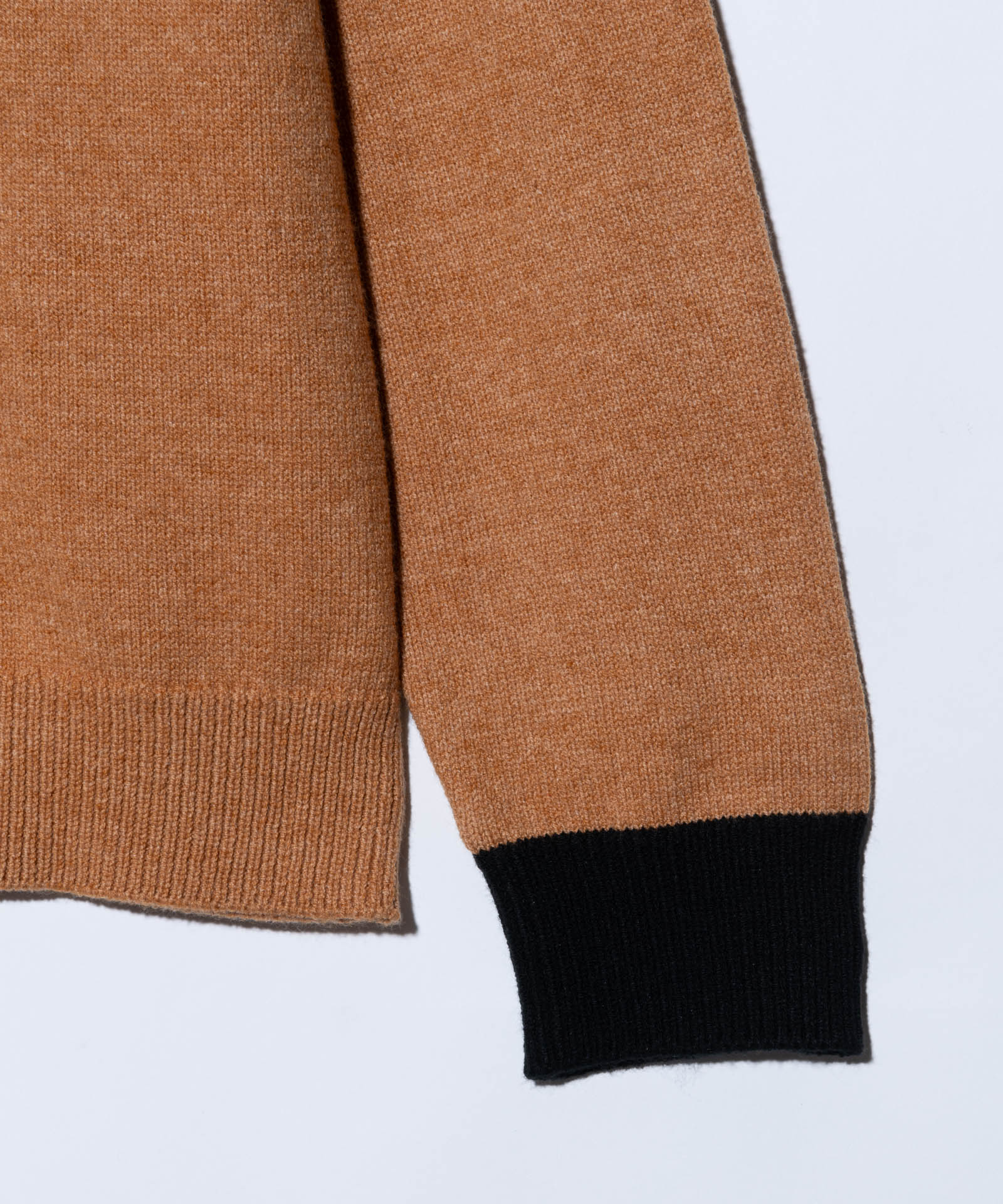 秋冬定番のタートルネックニットを通してカラーコーディネートを提案するSpin Logo Turtle Neck Knit。ミドルゲージの天竺編みによるボディは胸元の小ぶりなスピンロゴ刺繍がアクセント。BeigeとNavyは各パーツを配色に、Blackはオールブラックとそれぞれ魅力異なるカラーバリエーションをラインナップしています。シルエットは着丈にゆとりを持たせたアーバンなシルエット。タートルネックの知的なムードにルーズな抜け感をミックスすることでストリートライクなバランス感覚に仕上げています。