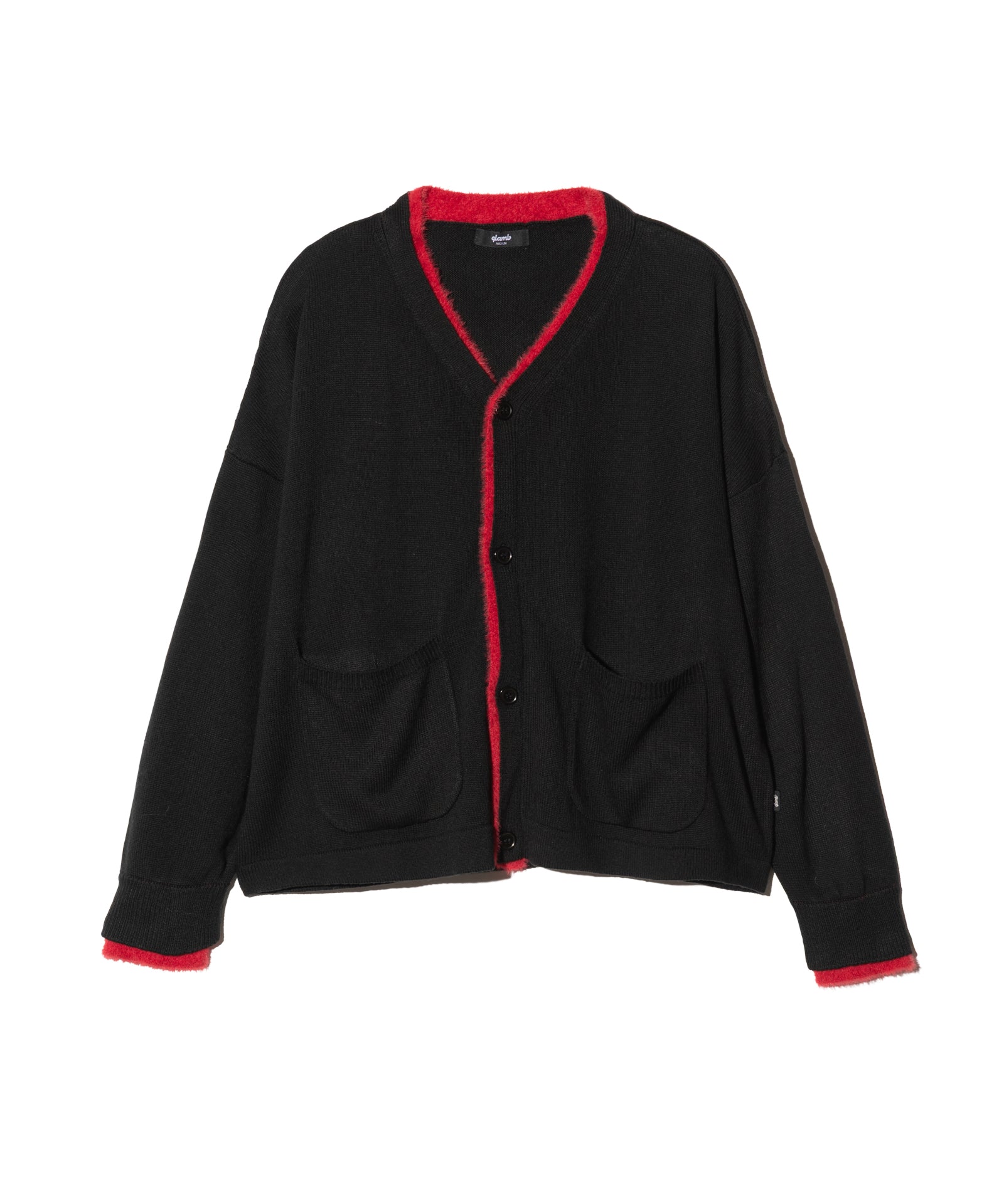 Vネックカーディガンに落とし込まれたさりげない異素材レイヤードで変化あるスタンダードスタイルを提案するLayered Cardigan。リネンライクな糸を天竺編みしたボディとコントラストをなすのが、首周りから前立て、袖口にあしらわれたシャギー素材によるフェイクレイヤード。カラーバリエーションごとに異なる配色のムードを持たせています。ボディ下部には大ぶりのポケットを付してアクセントに。着丈を短めに設定したシルエットは身幅にゆとりを持たせており、リラックスした着用感をお楽しみいただけます。