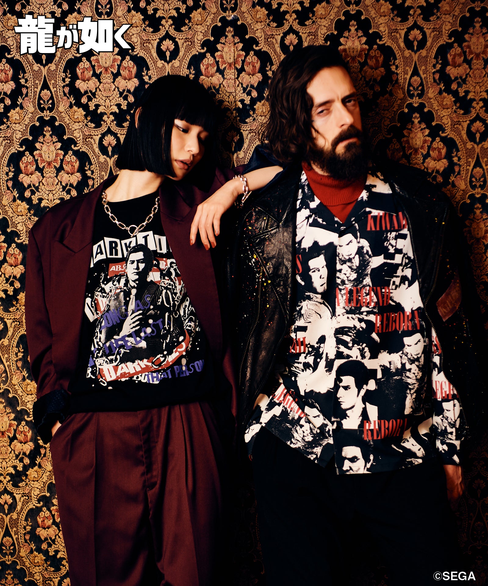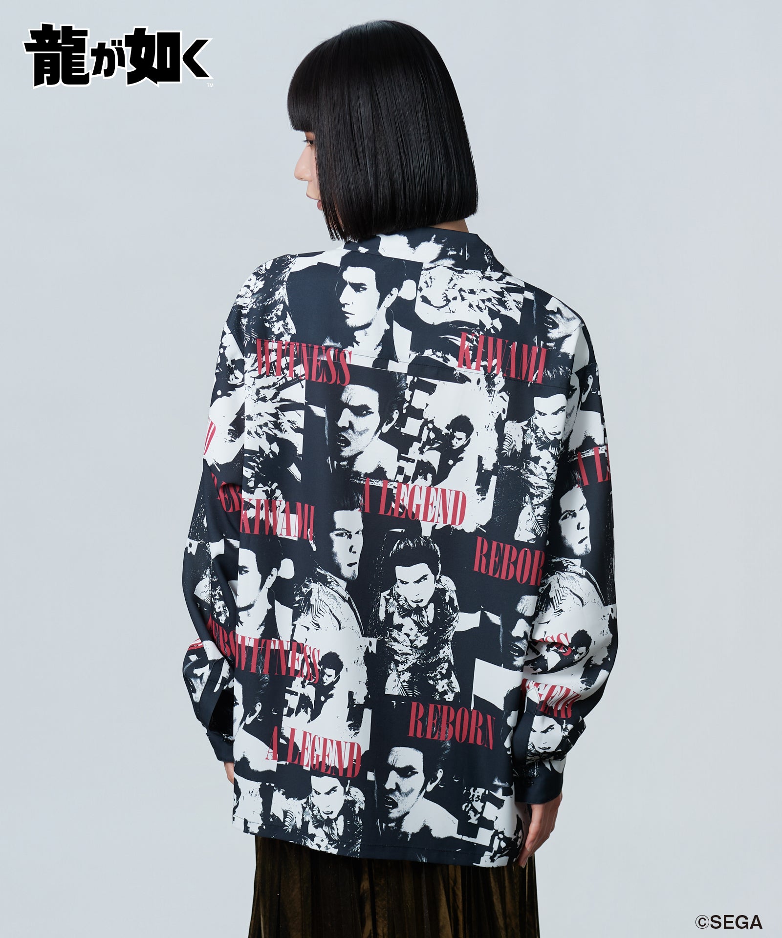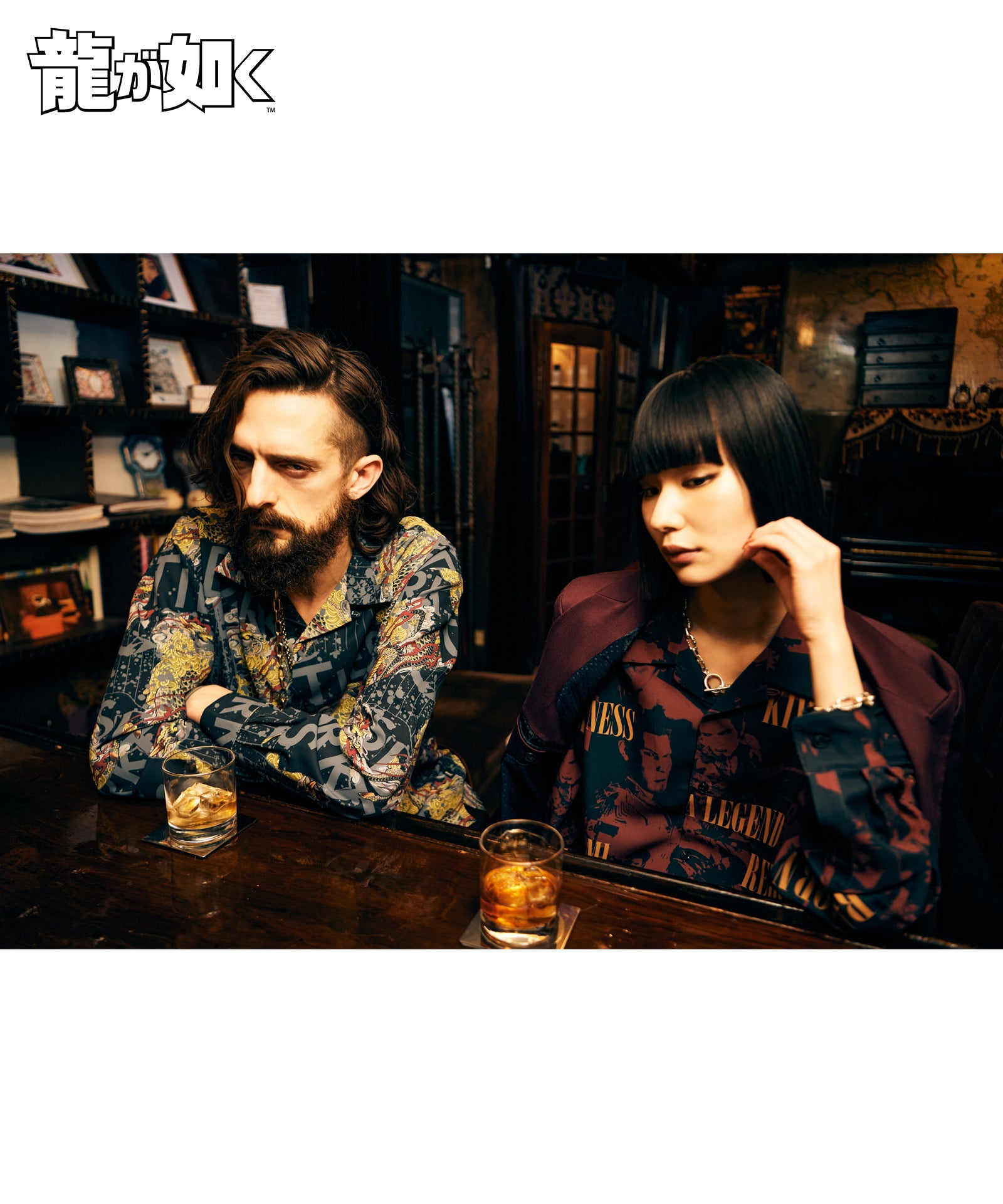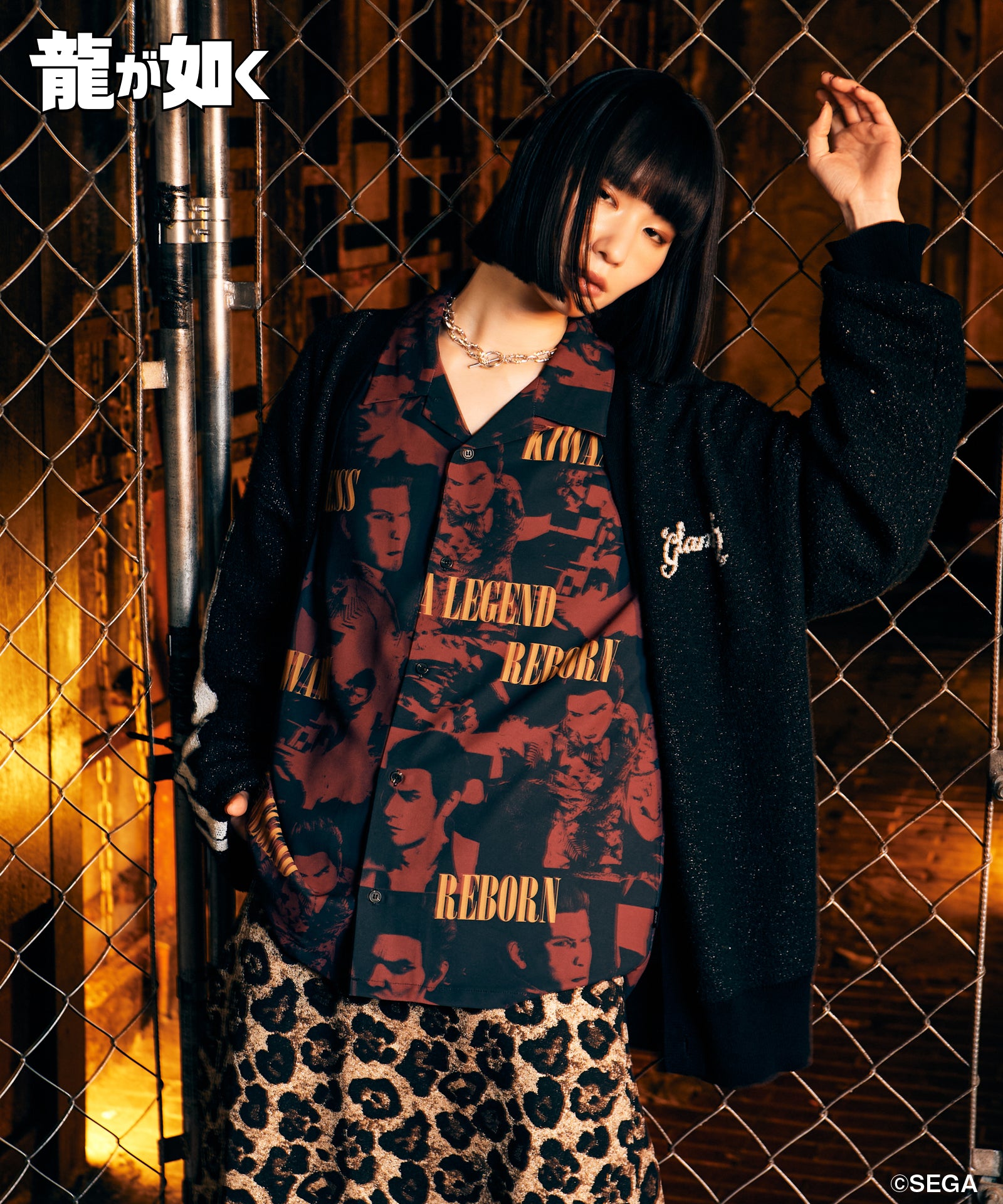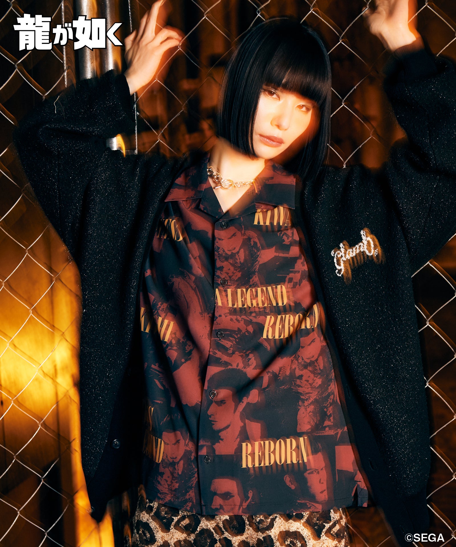 『龍が如く 極3 / 龍が如く3外伝 Dark Ties』とglambがコラボレーション。ルードなオープンカラーシャツに桐生 一馬のポートレートを散りばめ、アウトローなトップススタイルを演出するKazuma Kiryu Shirt。