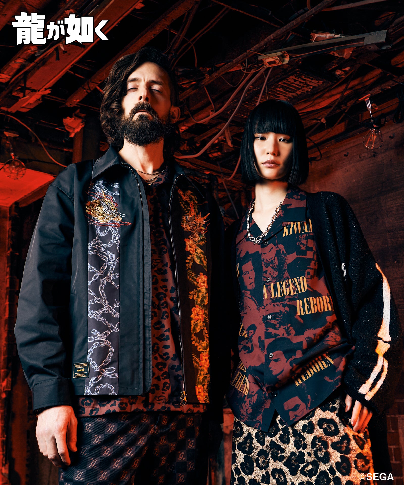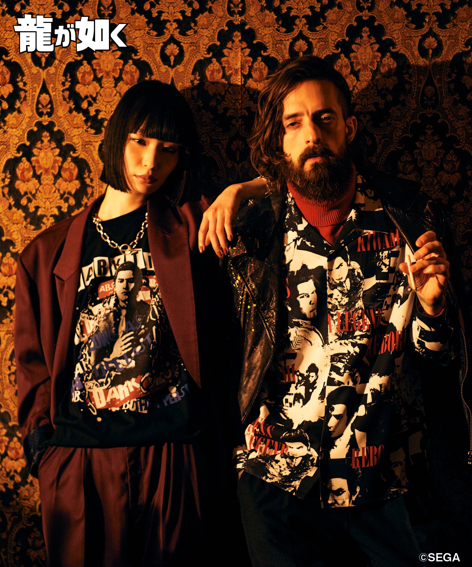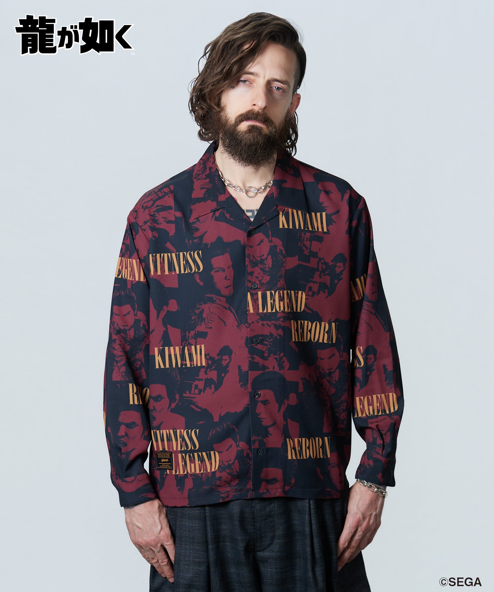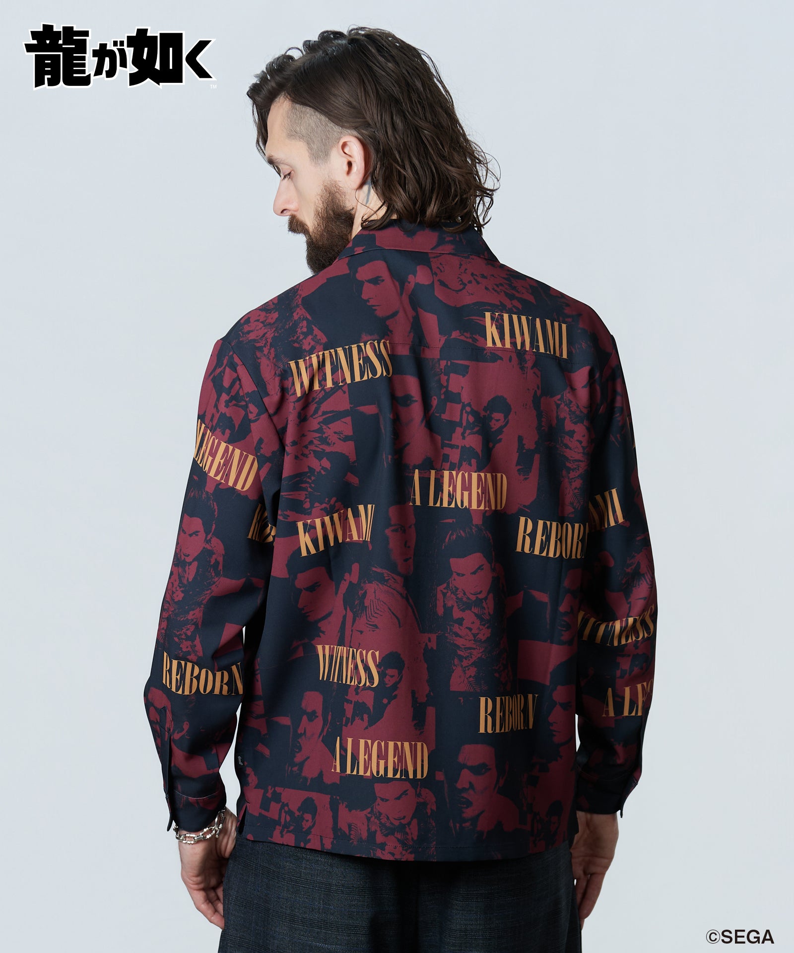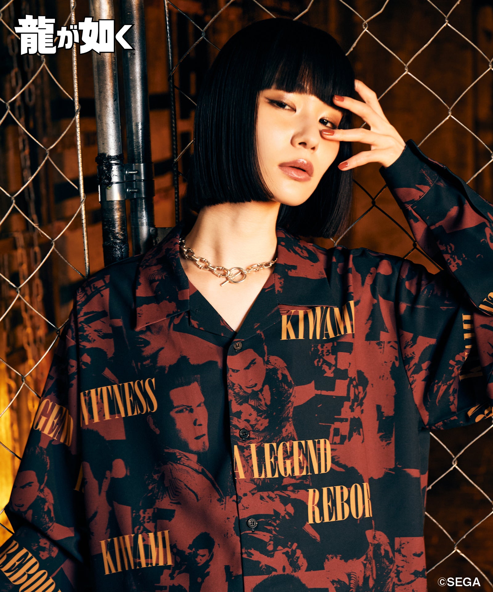 『龍が如く 極3 / 龍が如く3外伝 Dark Ties』とglambがコラボレーション。ルードなオープンカラーシャツに桐生 一馬のポートレートを散りばめ、アウトローなトップススタイルを演出するKazuma Kiryu Shirt。