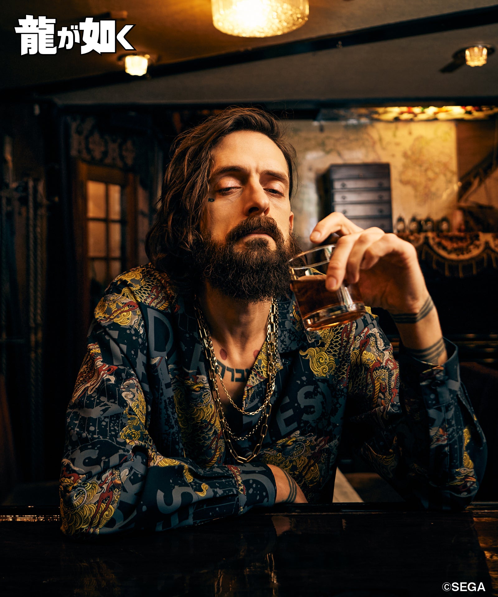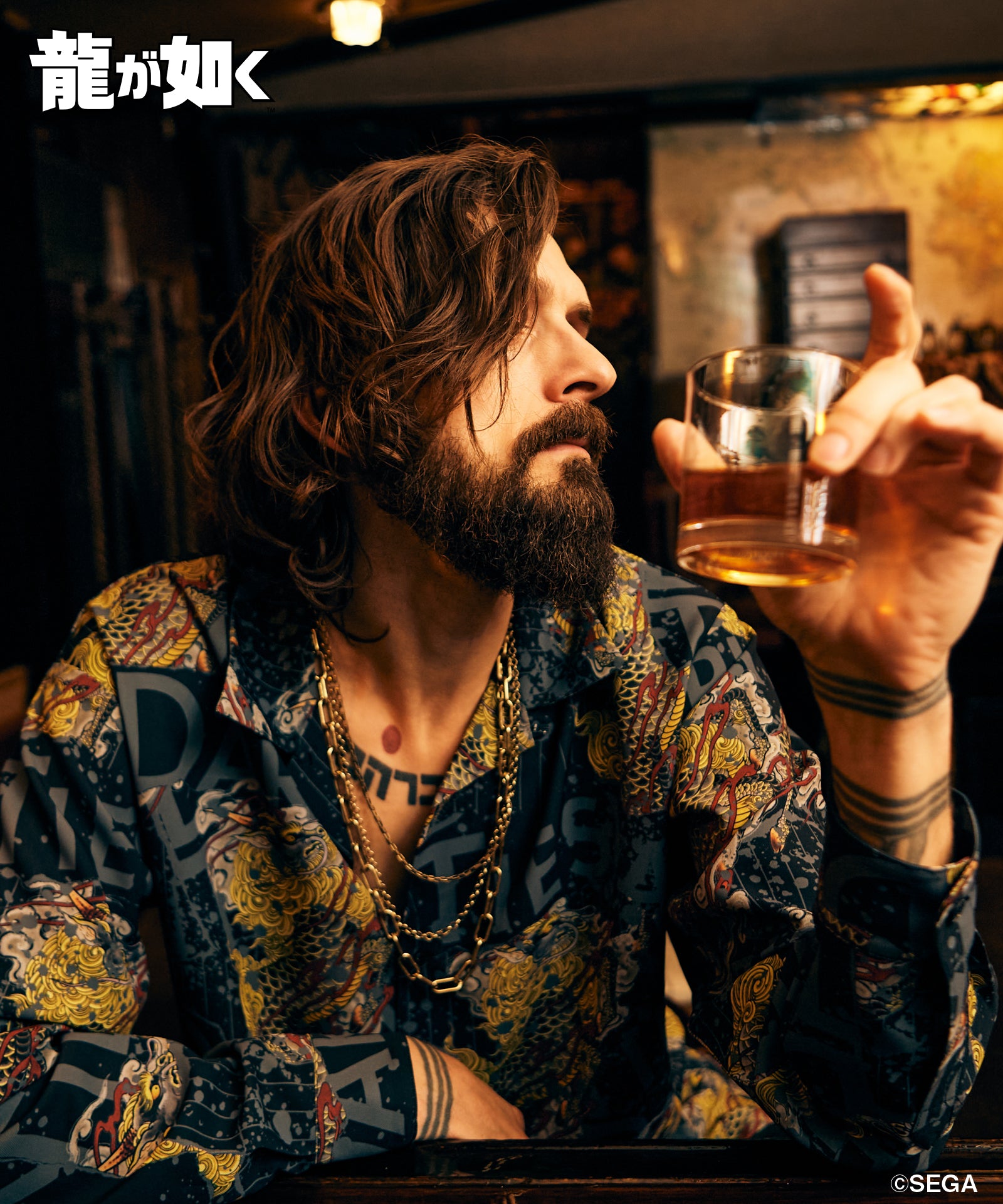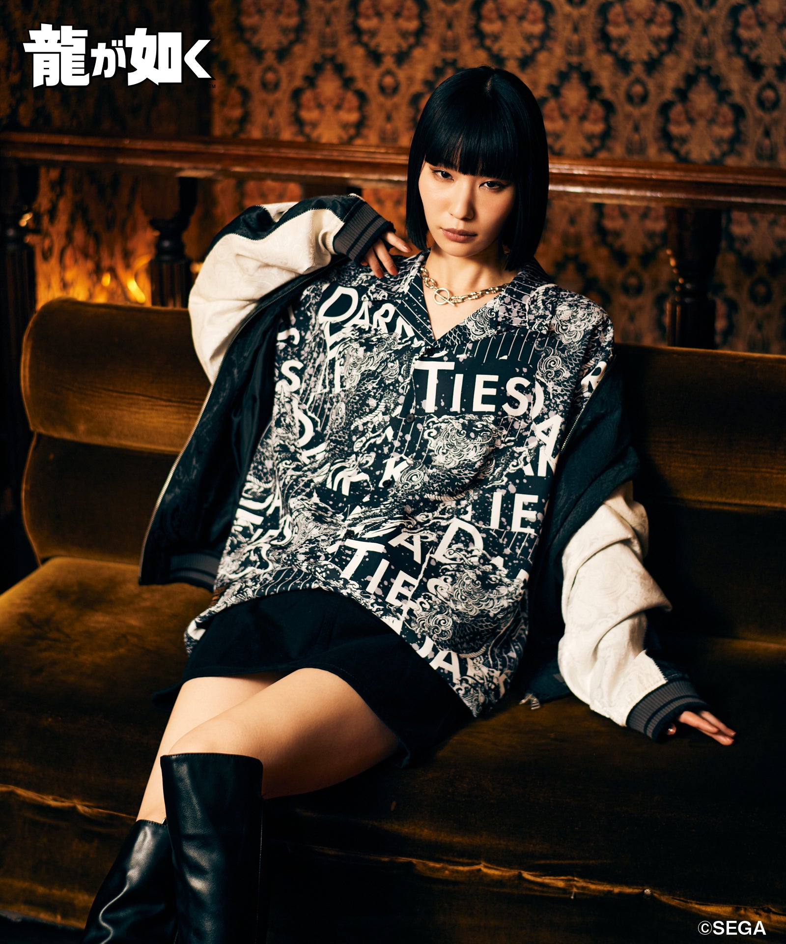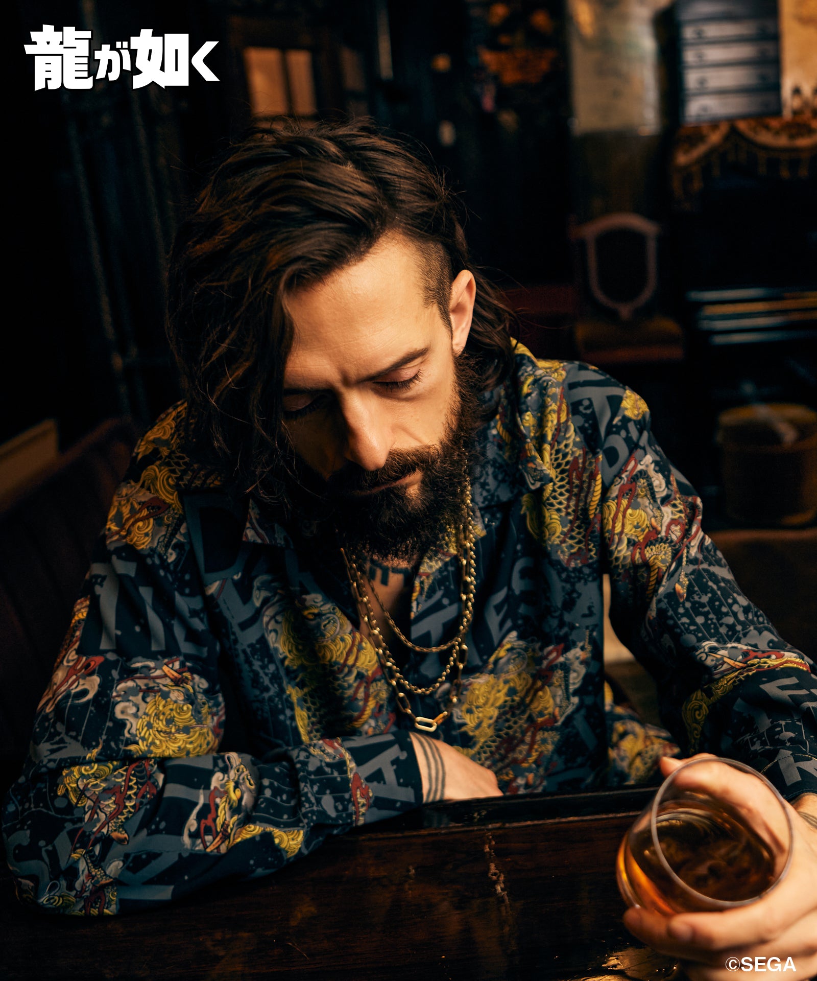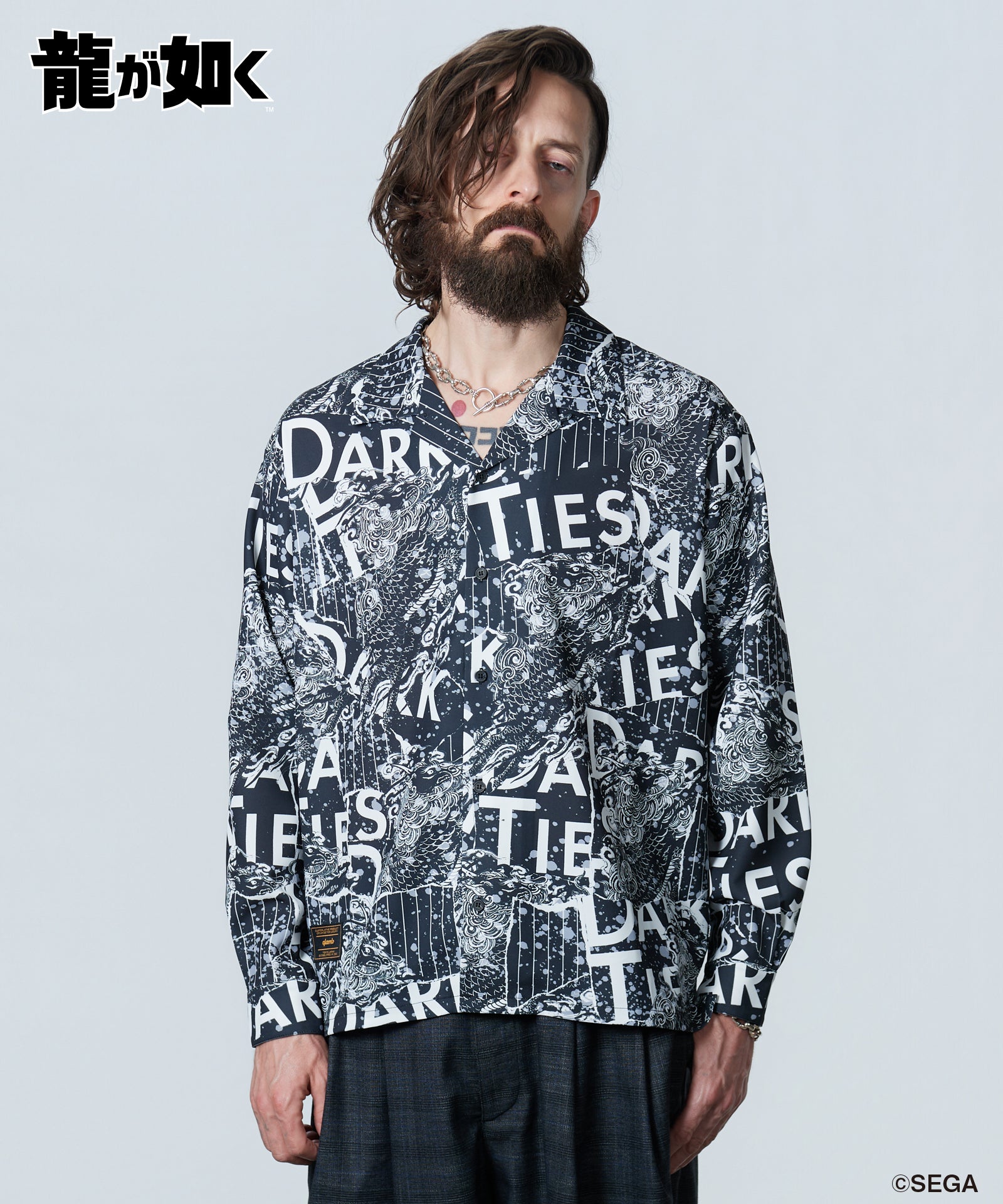 『龍が如く 極3 / 龍が如く3外伝 Dark Ties』とglambがコラボレーション。峯 義孝のモチーフをラフなオープンカラーシャツに落とし込んだYoshitaka Mine Shirt。