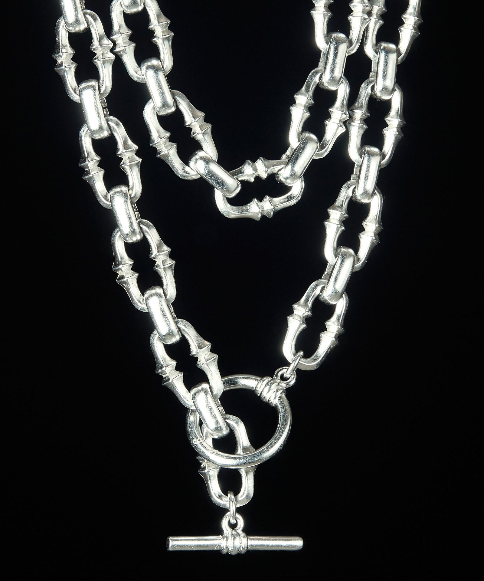 時間と素材を惜しみなく注ぎ込み、“ラグジュアリー”への飽くなき追求を形にしたMARO Necklace。鋭角的でありながら丸みを帯びた、タフさと優しさを兼ね備えたようなチェーンのフォルムはglambデザイナーが0から作り上げたもの。本作のために新たに型を起こし、シルバー925を贅沢に用いてチェーンやマンテルを成形。各パーツの溶接は熟練の職人が1つ1つ手作業で施した、またとないリュクスな一本となっています。シリーズ展開となるMARO Braceletもぜひご覧ください。