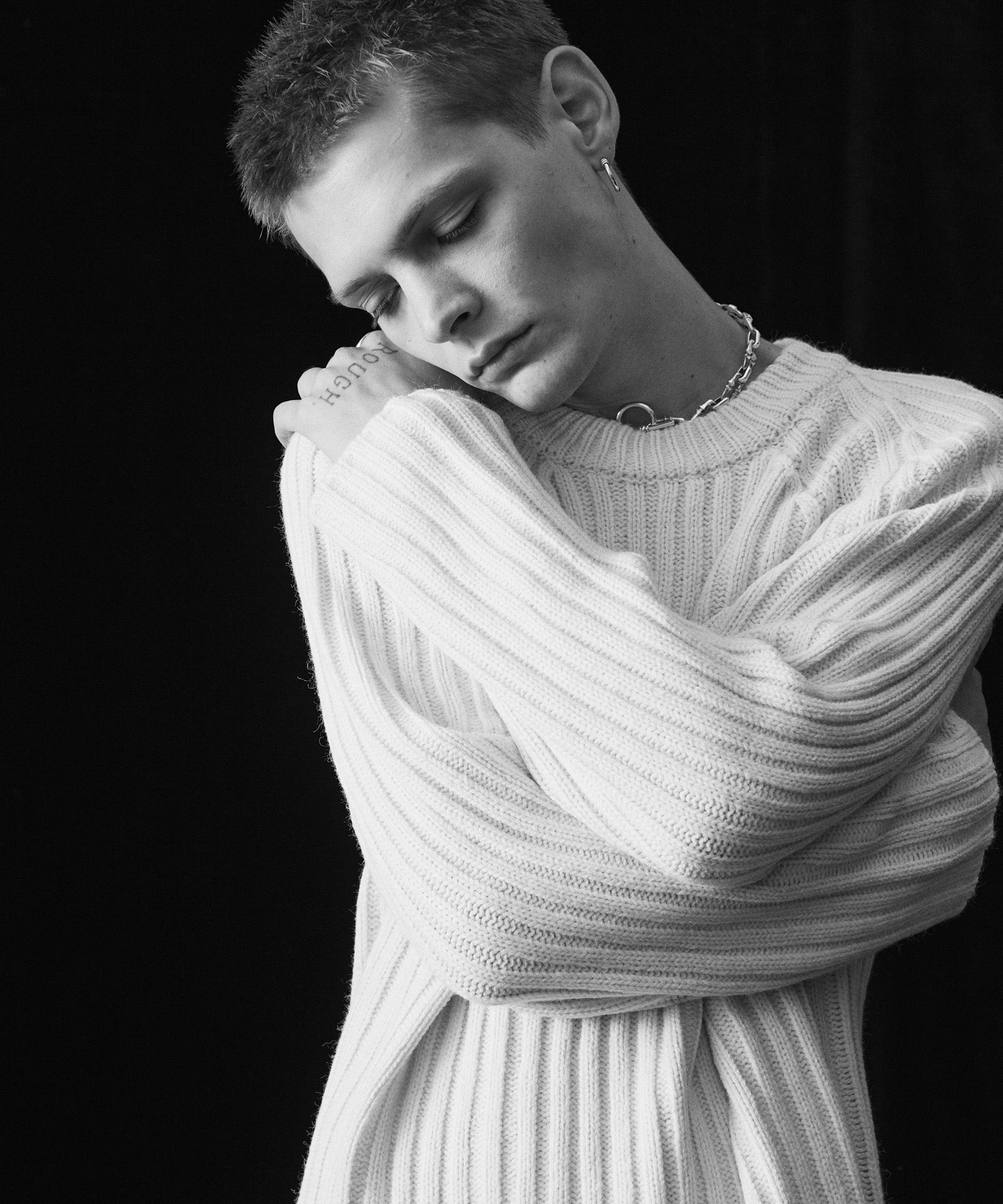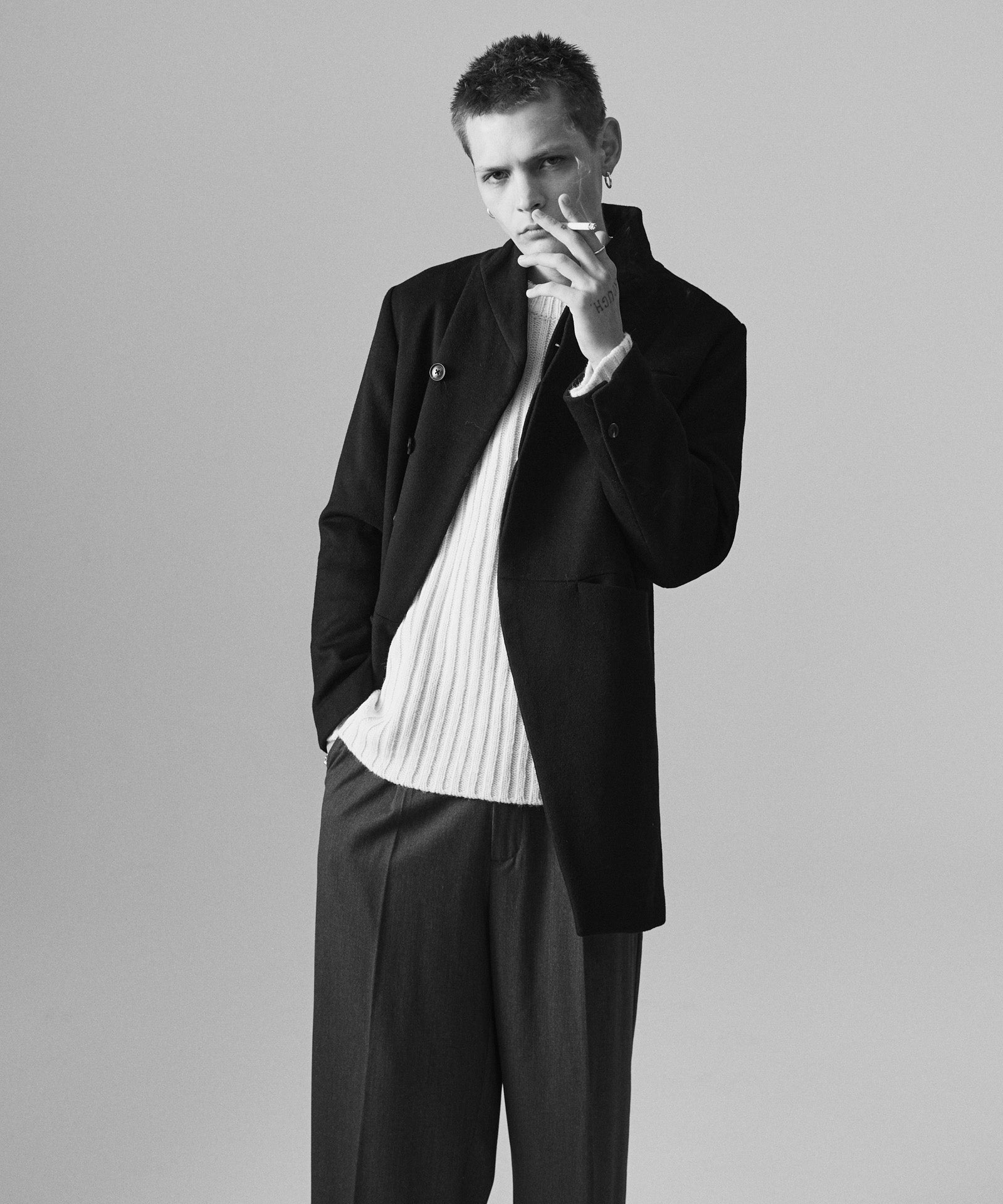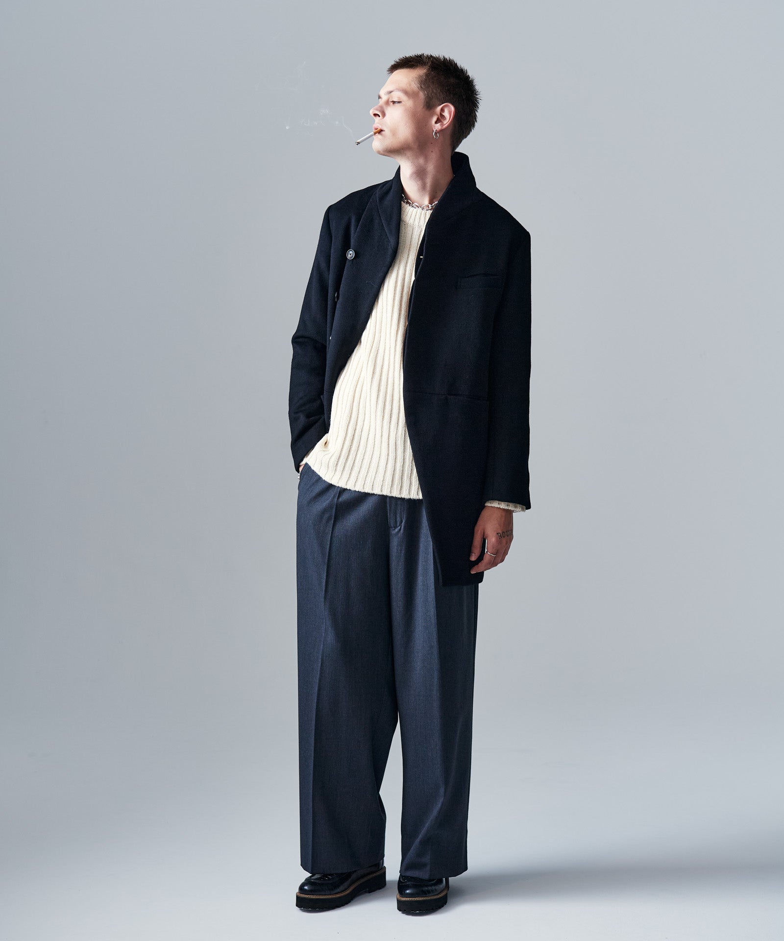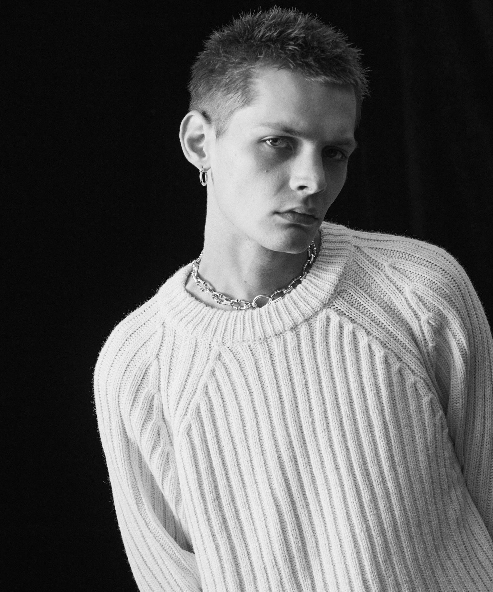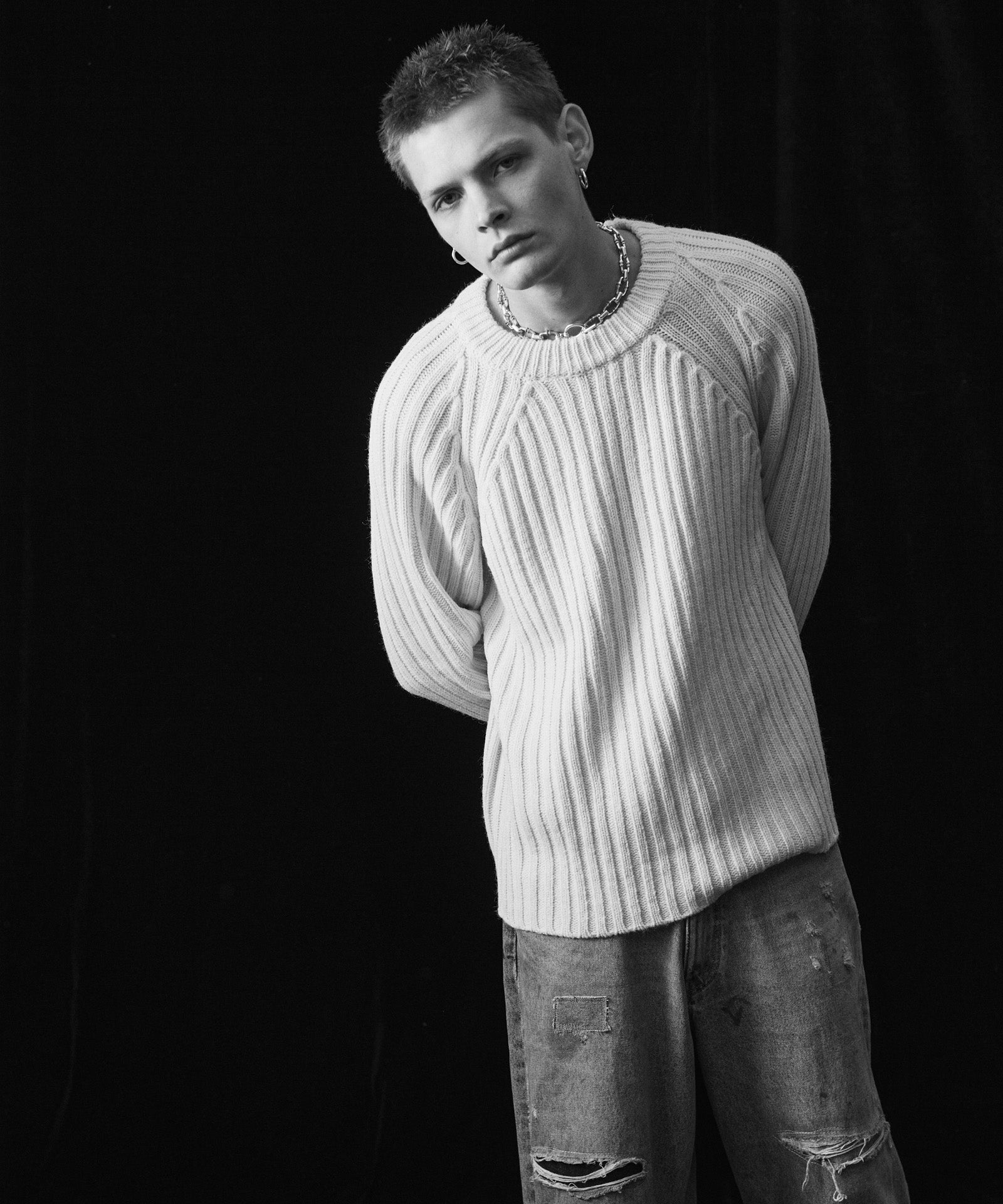 研ぎ澄まされたデザインワークがベーシックアイテムに静謐さとエッジをもたらす“Blue Noise”シリーズから、スタンダードな中にこだわりのテクスチャを乗せたBlue Noise Low Gauge Rib Knitが登場。ラグランスリーブのアームはラグラン線の目を立てることで、ボディとのコントラストあるヴィジュアルに。リブの凹凸はローゲージで編み上げることで存在感を持たせています。シルエットはややゆとりを持たせたボックスシルエットに設定。カラーバリエーションは定番のWhiteとBlackに加え、色違いの糸を引き揃えて杢の色目を持たせたBrownをご用意しております。