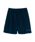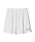 イージーなテキスタイルが西海岸的なリゾートルックを描くPile Jersey Shorts。テキスタイルに使用したのはタオルケットのようなソフトな風合いが特徴となるパイル生地。ウエストの左右に1タック、股上を深めに設けたルーズフィットのボディにはサイドラインを加えてレトロな面持ちに。そのムードに呼応するよう腰元のロゴ刺繍も3色グラデーション刺繍であしらっています。
