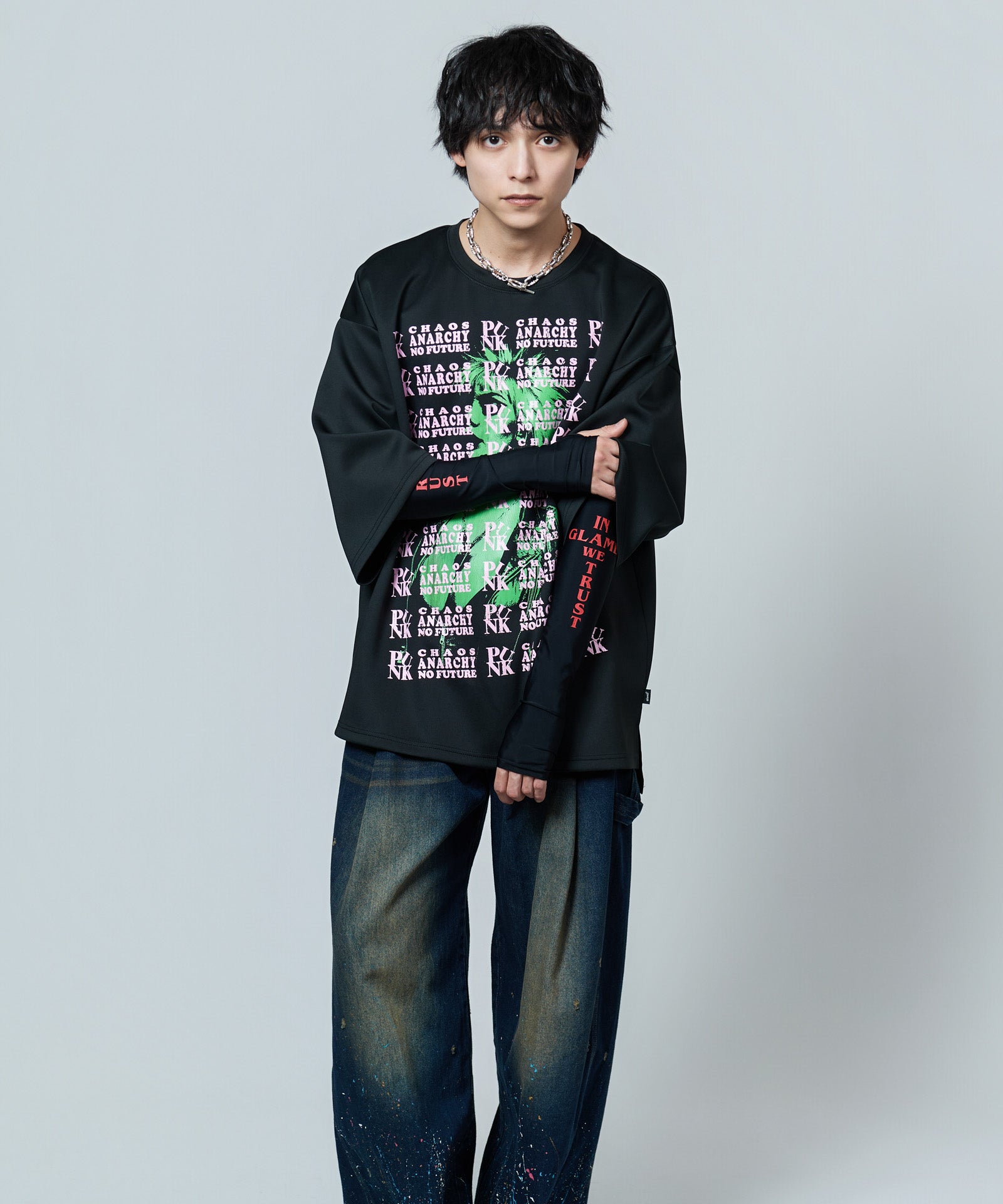 夏のパンクスタイルをグラフィックと素材使いから提案するPunk Smooth Cutsew。フロントを飾るのは、パンクカルチャーを象徴する女性と言葉を重ね合わせたハードコアなグラフィック。テキスタイルには敢えてスムースな肌触りが特徴となるポンチ生地を用いることで、柄とテクスチャにギャップを持たせて仕上げました。吸水速乾姓に優れる素材はサマースタイルに絶好。ビッグシルエットのボディは前後差を付けた裾とサイドスリットを備えており、抜け感ある着こなしを演出します。