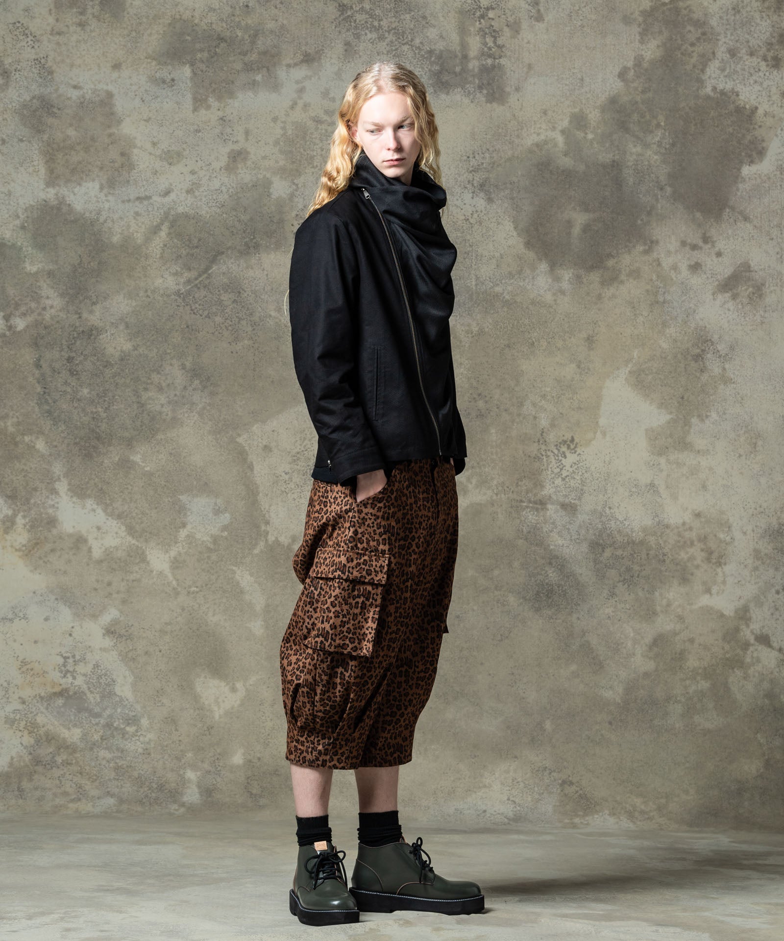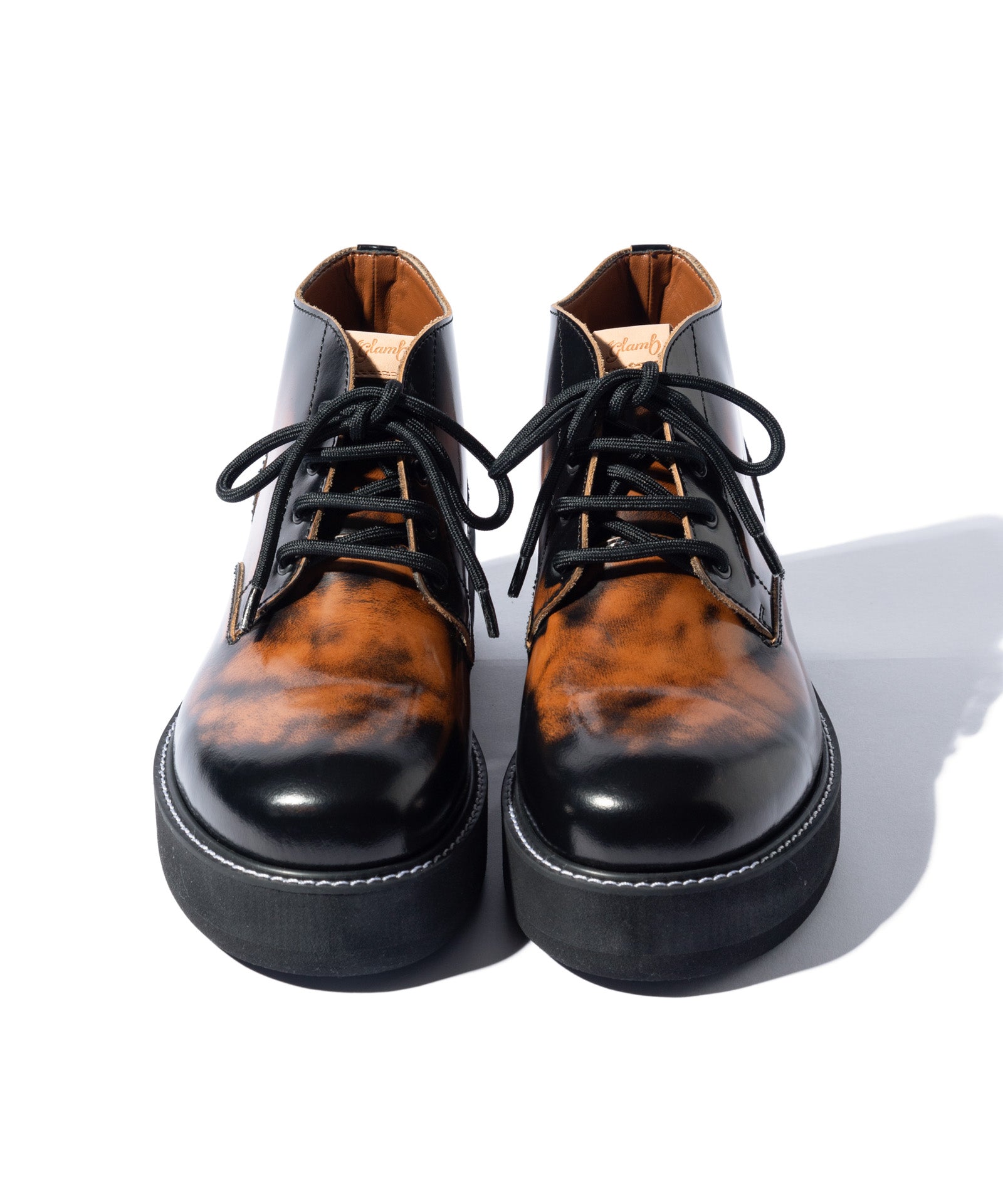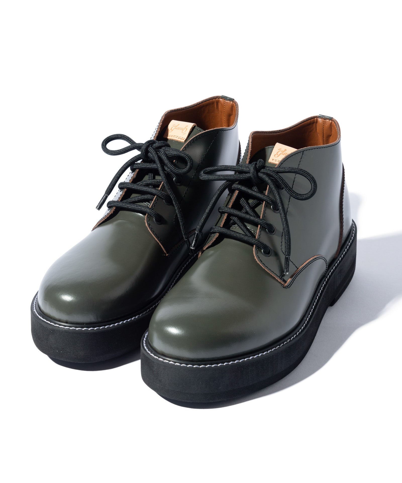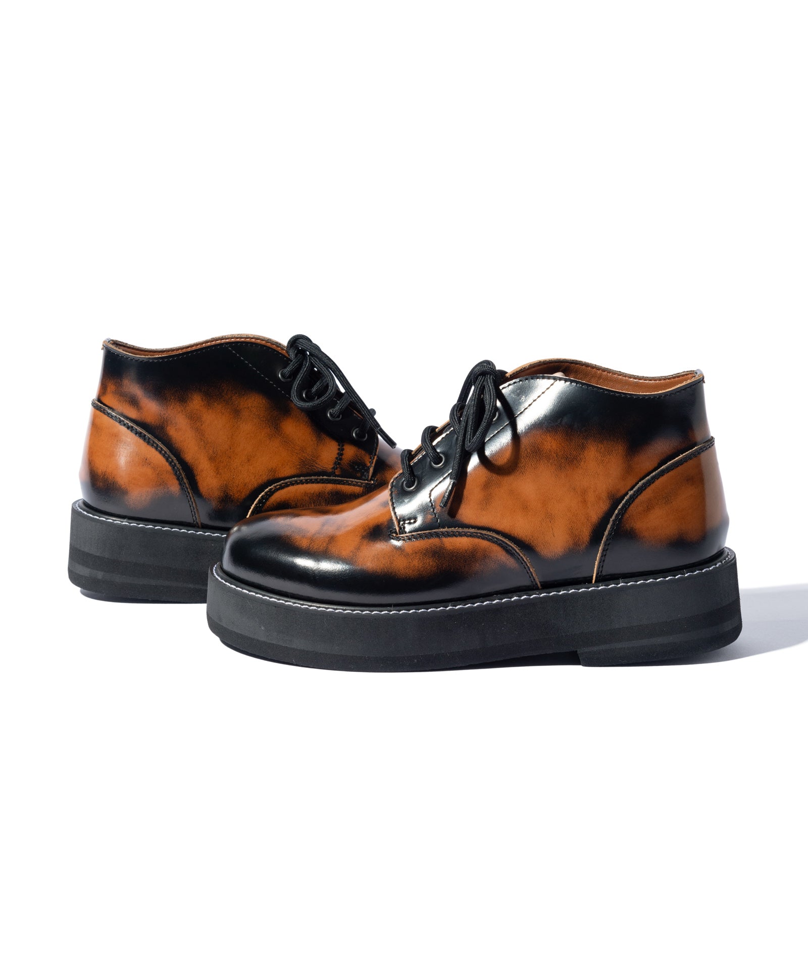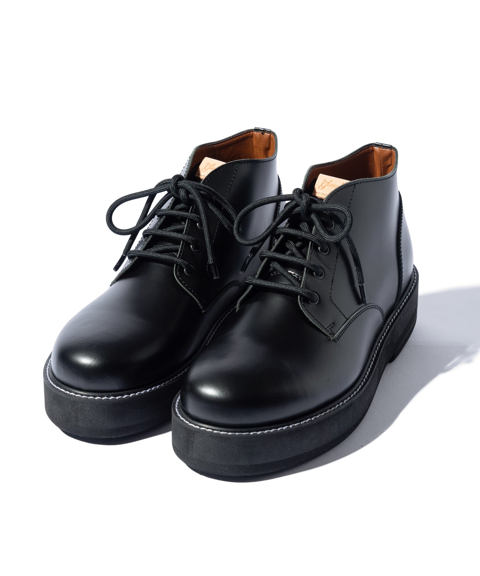 チャッカブーツにレースアップブーツを融合するというアイデアを東京のシューズファクトリーにて丹念に形にしたFour Holes Chukka Boots。2パーツの皮革による構造とラウンドトゥは踏襲しつつ、履き口を流線形にカッティング。4ホールを設けたショートブーツ仕様となっています。ソールは手作業で削りを加えて丸みを出した4.5cmの重厚なダブルソール。ボリュームあるルックスと裏腹にEVA素材により履き心地は軽やかなものとなっています。アッパーにはブランドが選び抜いたカウレザーを贅沢に使用、ワントーンのBlackとKhaki、アドバン加工でアンティークな佇まいを持つBrownの3カラーを揃えました。