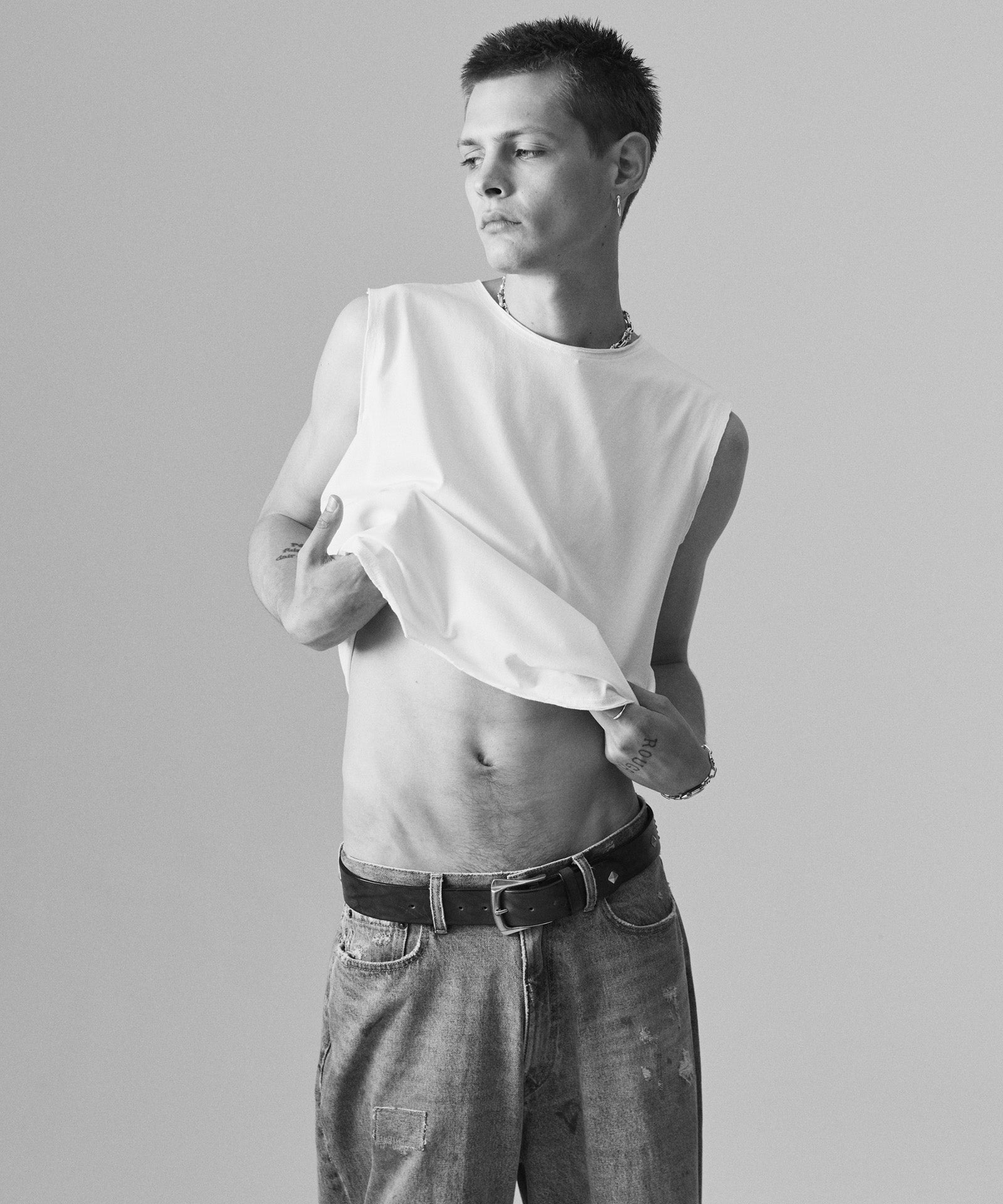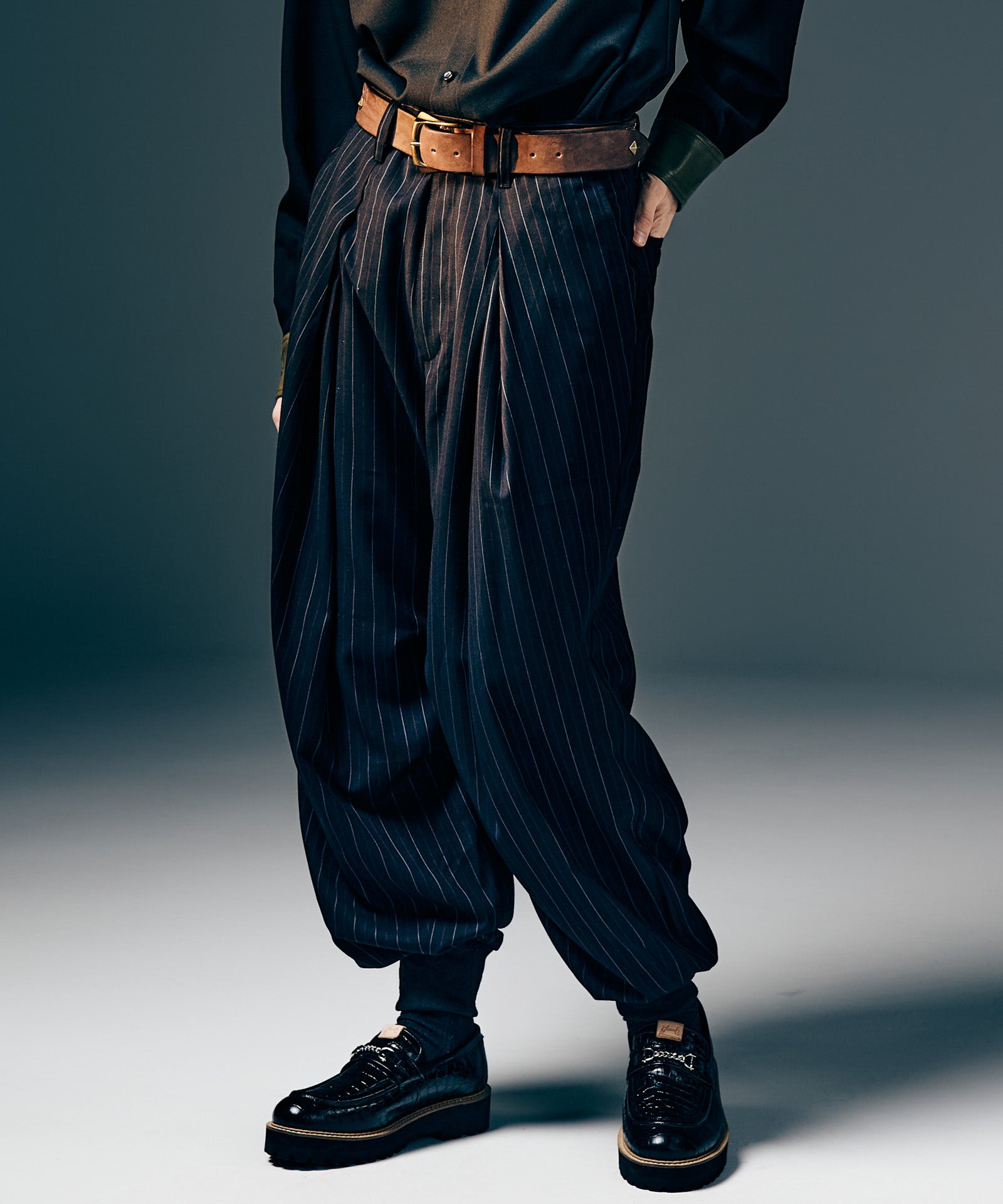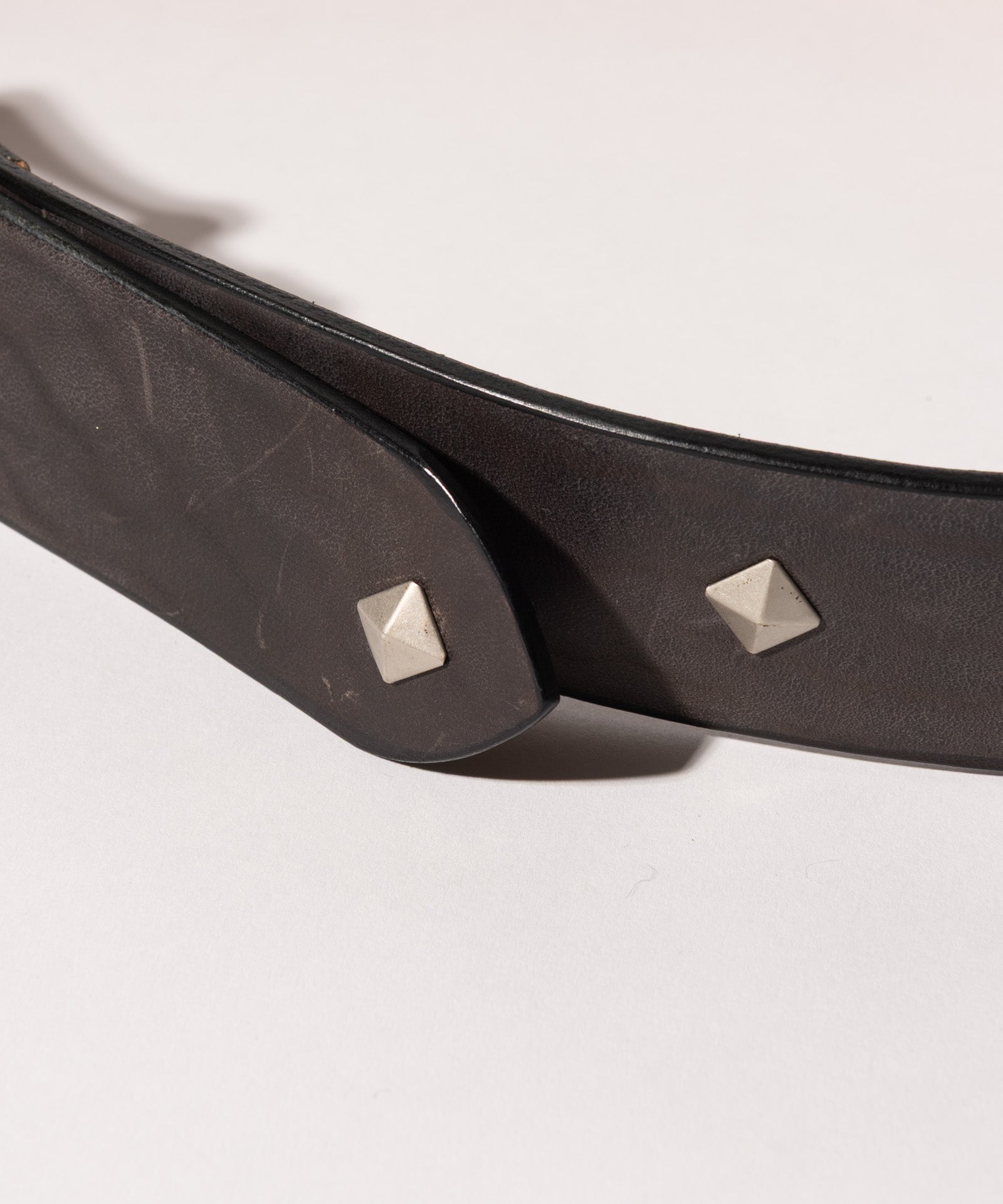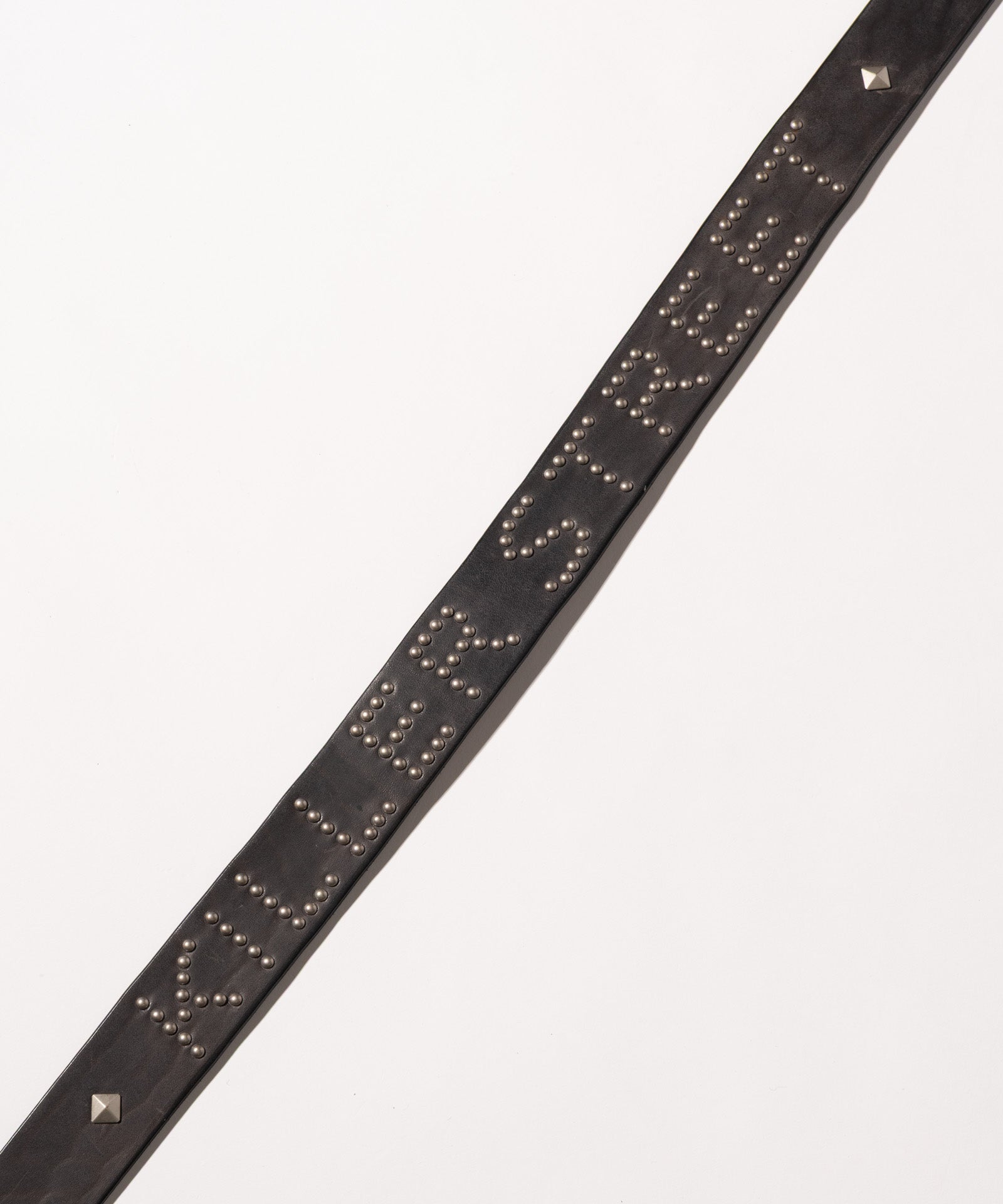 Killer Street Studs Belt is carefully finished in a domestic factory, combining tough textured leather with glamb's rock-minded design. The main body, which has a sharp buckle, is engraved with the name "KILLER STREET" on the street where the brand's direct store is located, using round studs. The tip of the sword is also accented with a single pyramid-shaped stud. The material is thick hose leather. The material has a high potential over time, and the more you use it, the more you enjoy growing it.